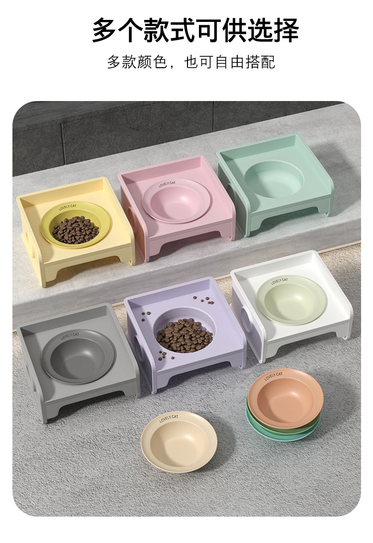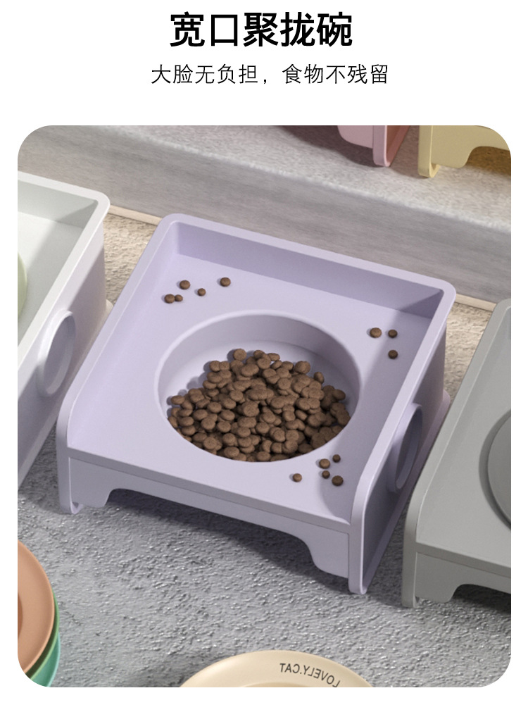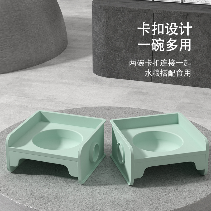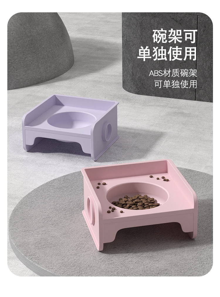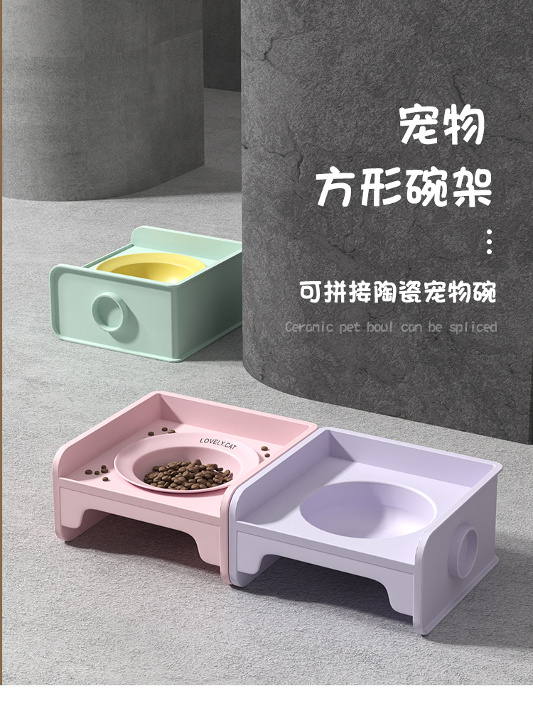 方块猫碗陶瓷护颈碗架宠物猫咪双碗猫粮水碗饭碗猫食盆防打翻狗碗