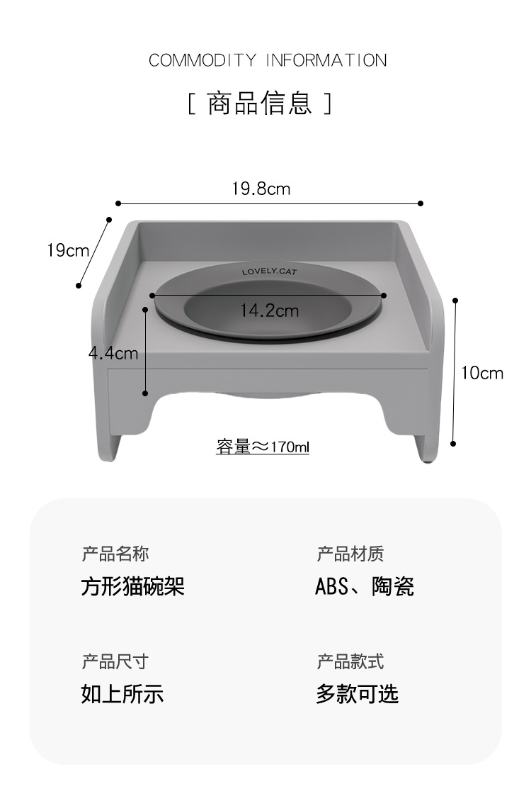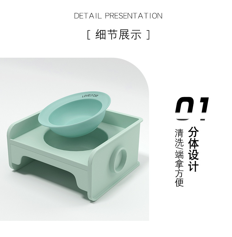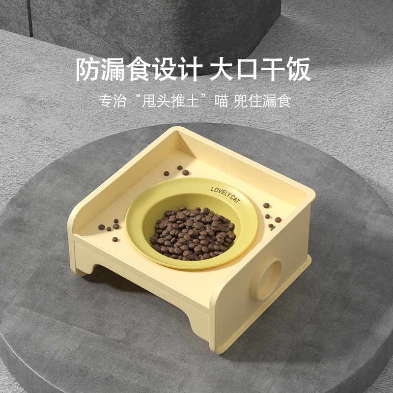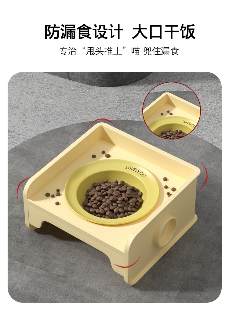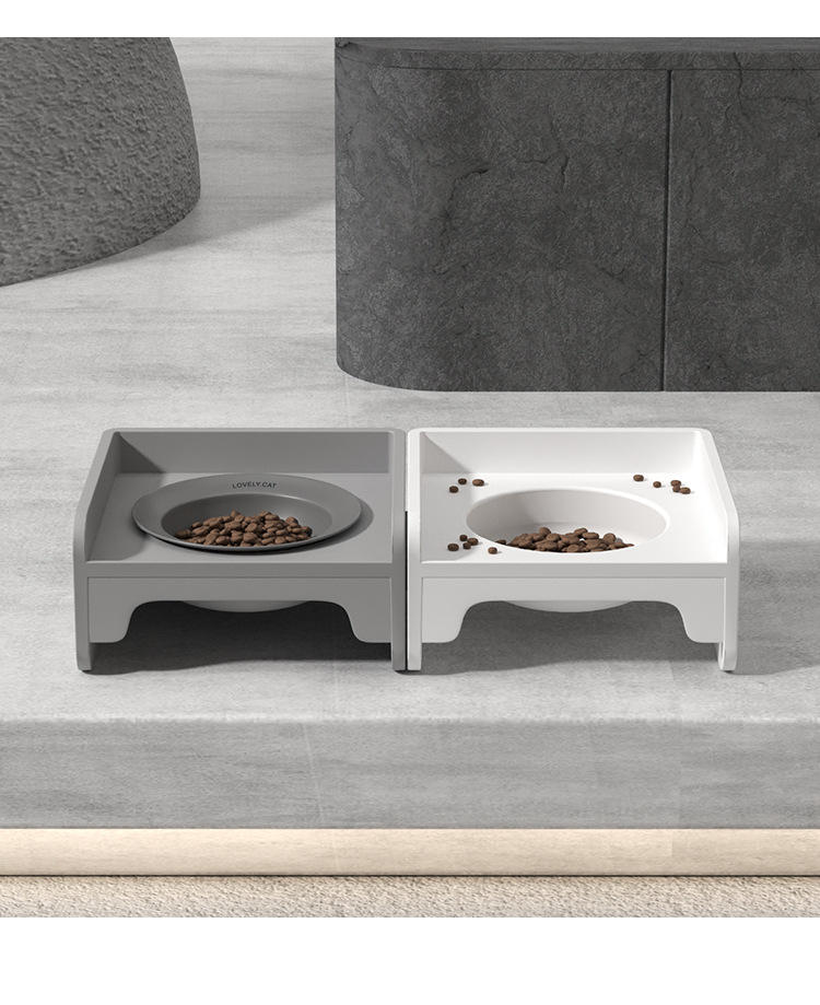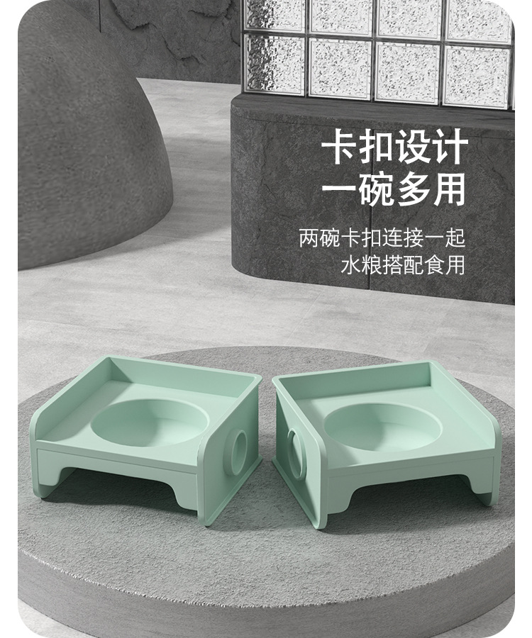 方块猫碗陶瓷护颈碗架宠物猫咪双碗猫粮水碗饭碗猫食盆防打翻狗碗