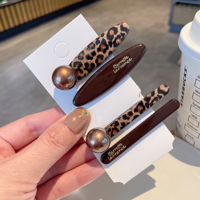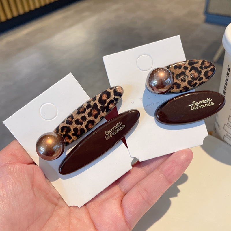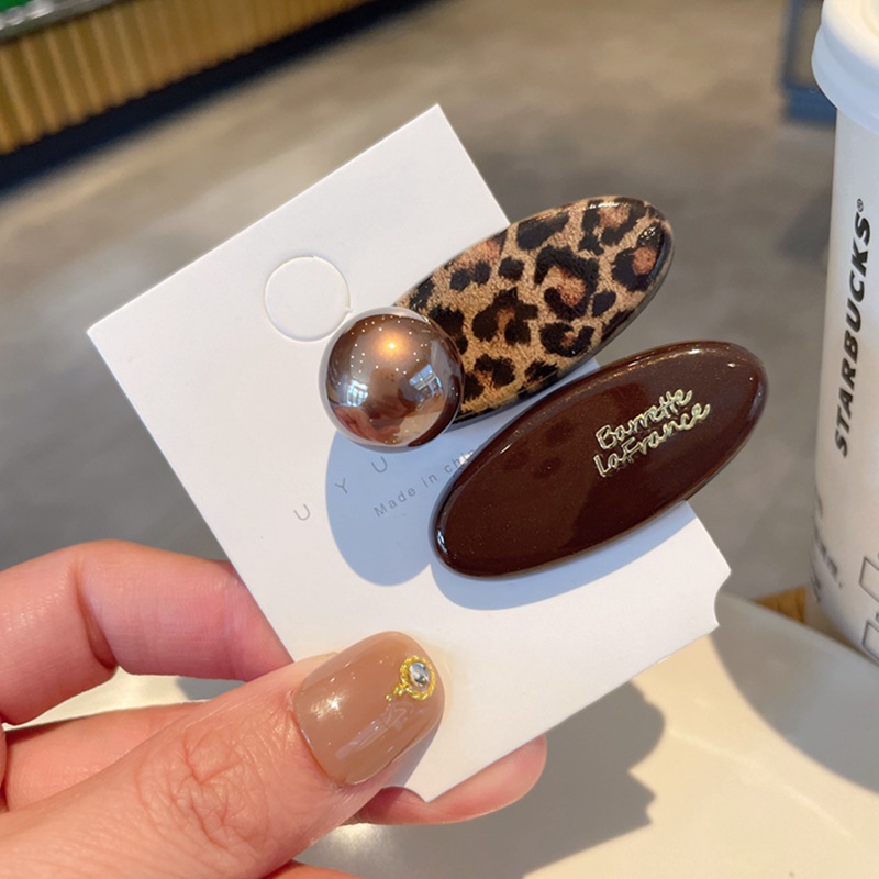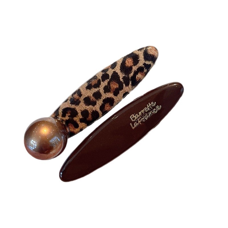 小金标字母豹纹鸭嘴夹一字夹发夹简约复古风侧边夹刘海夹发卡发饰