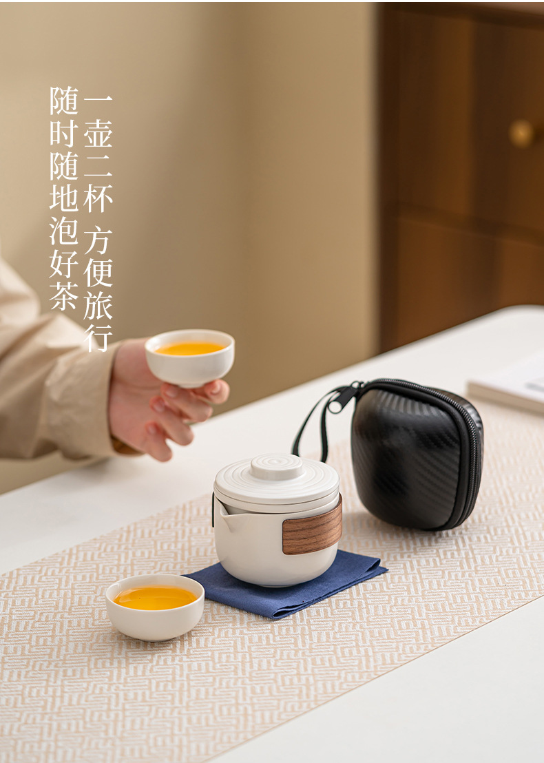 陶瓷礼品旅行茶具小礼品便携式快客杯一壶二杯商务活动伴手礼logo