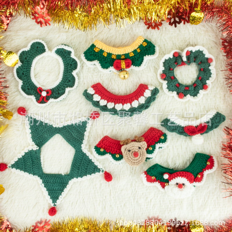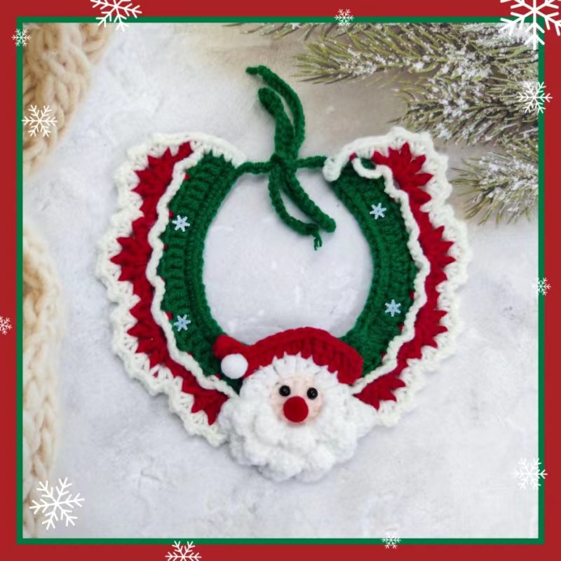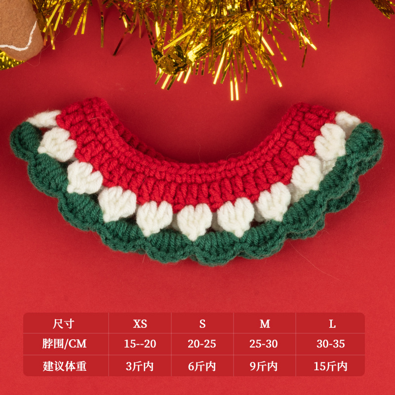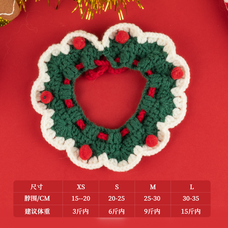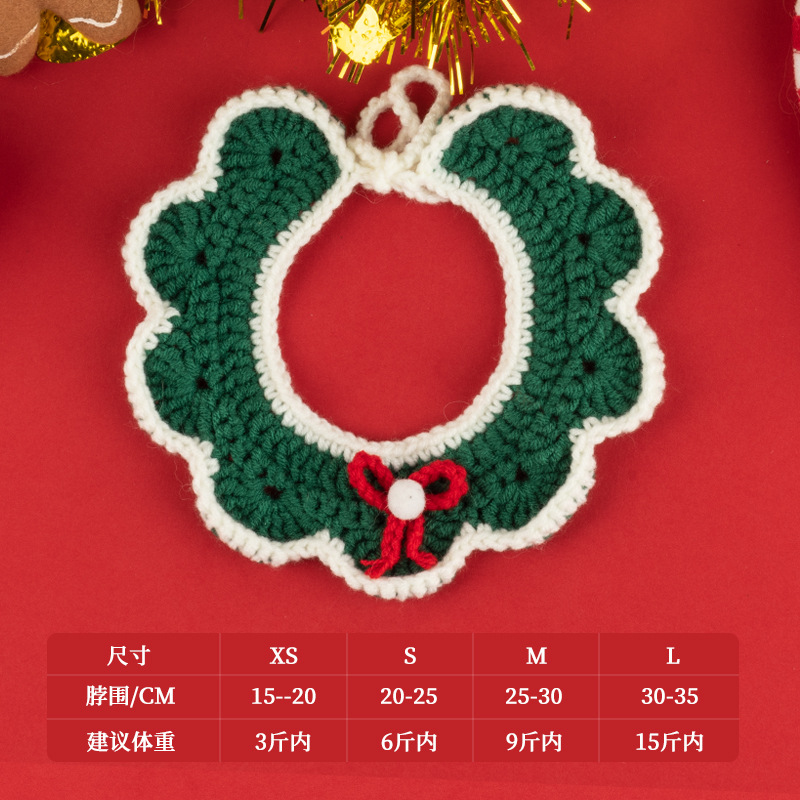 圣诞节猫咪围脖狗狗围脖口水巾小型犬宠物毛线项圈手工编织配饰