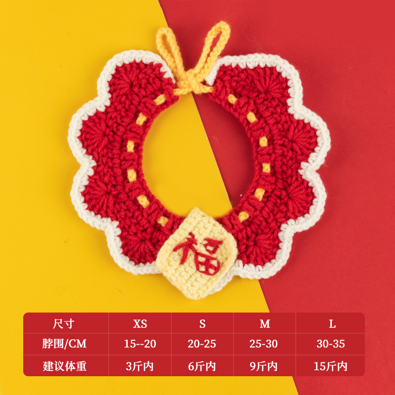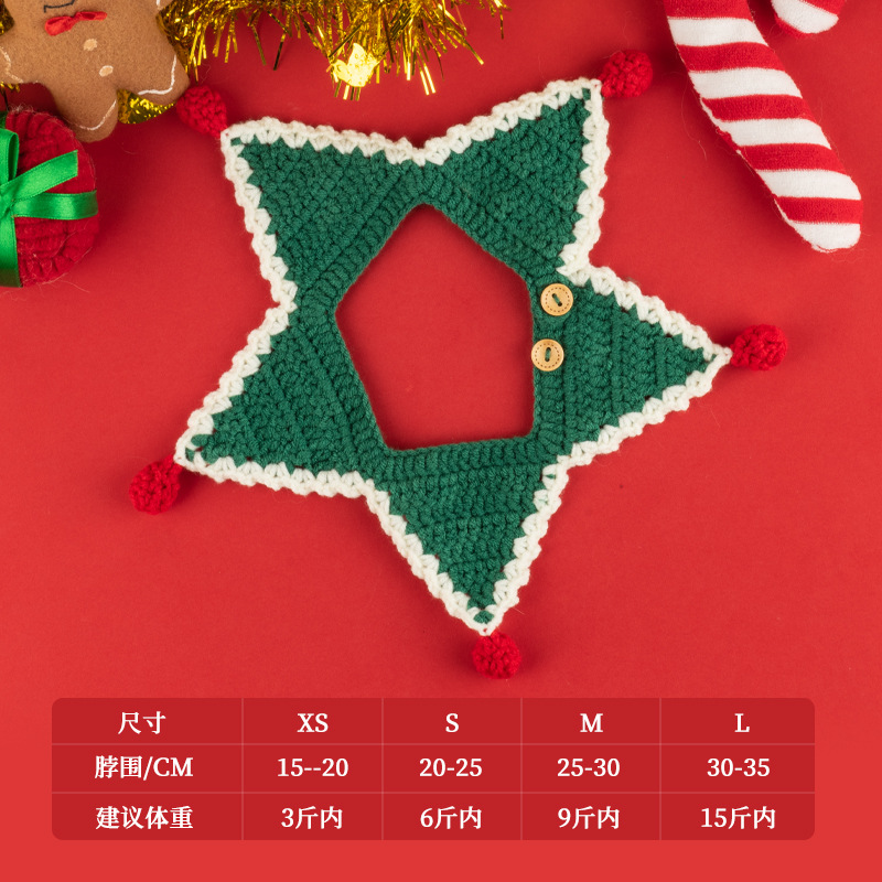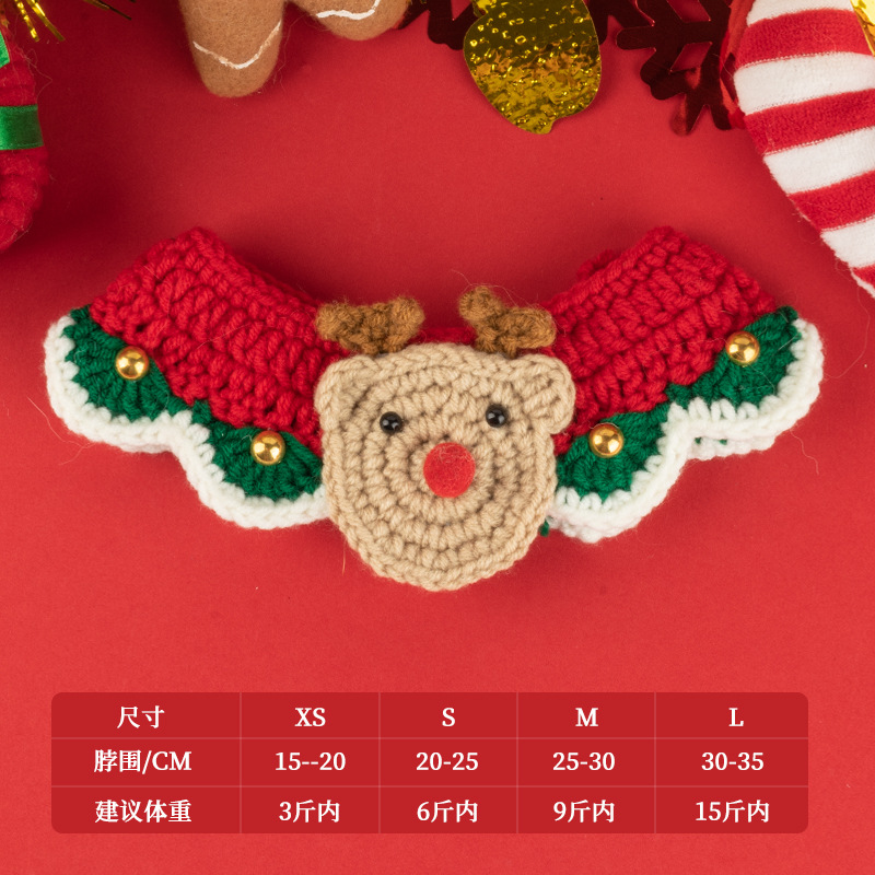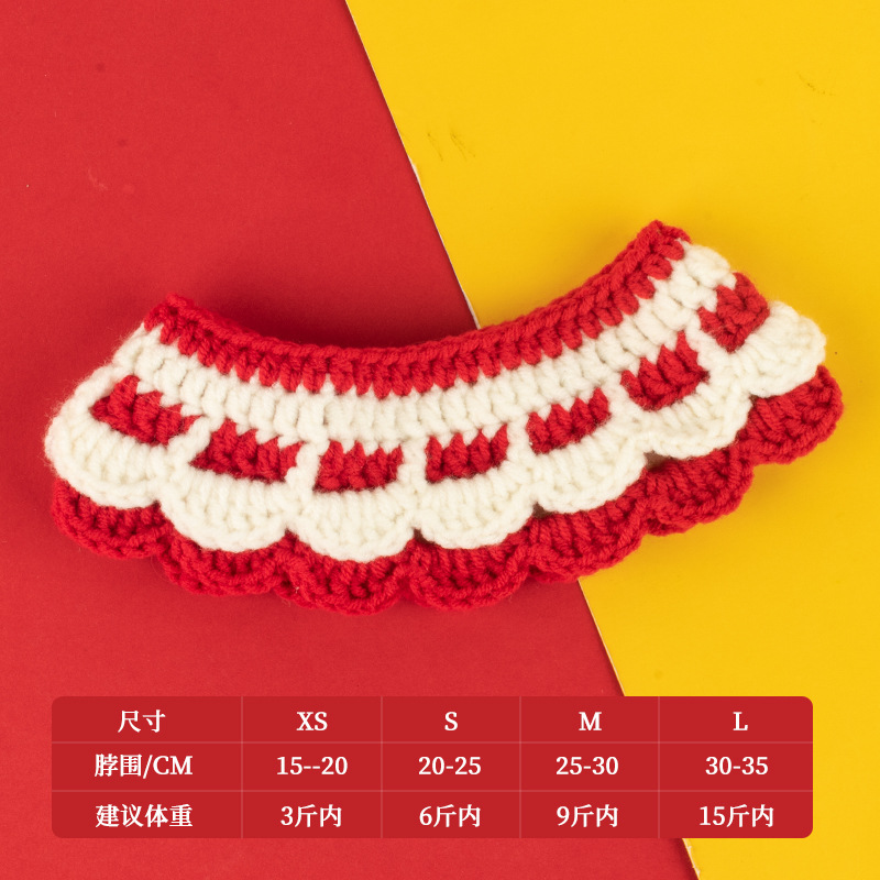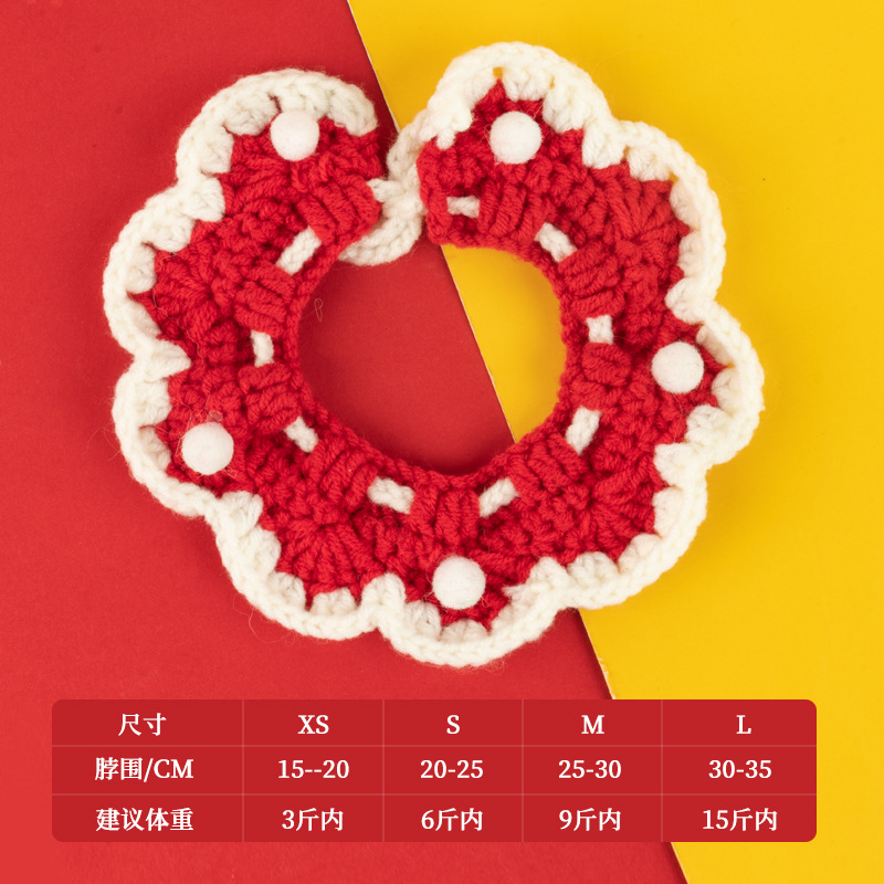 圣诞节猫咪围脖狗狗围脖口水巾小型犬宠物毛线项圈手工编织配饰