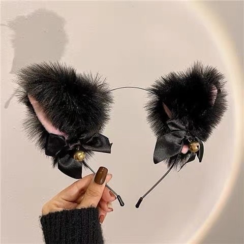 (发箍+项圈)猫耳朵铃铛发夹女小野猫咪兔子发卡头箍过新年头饰品