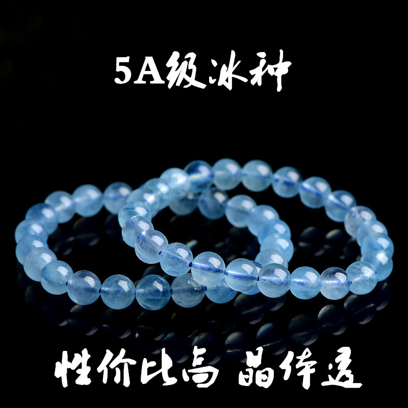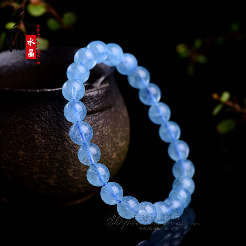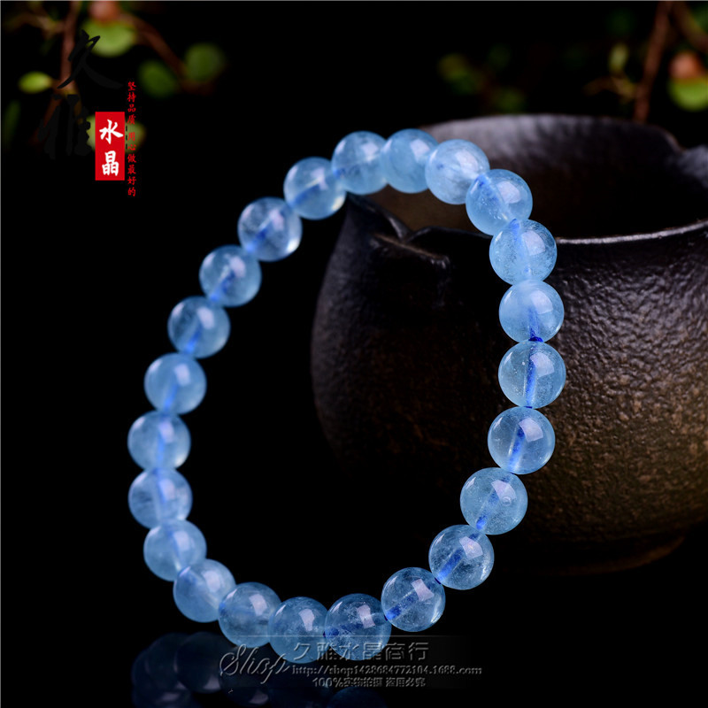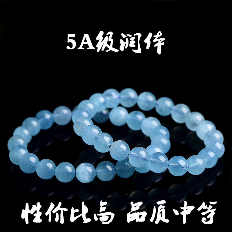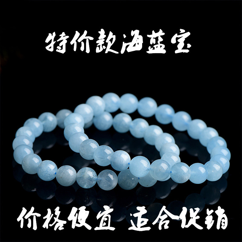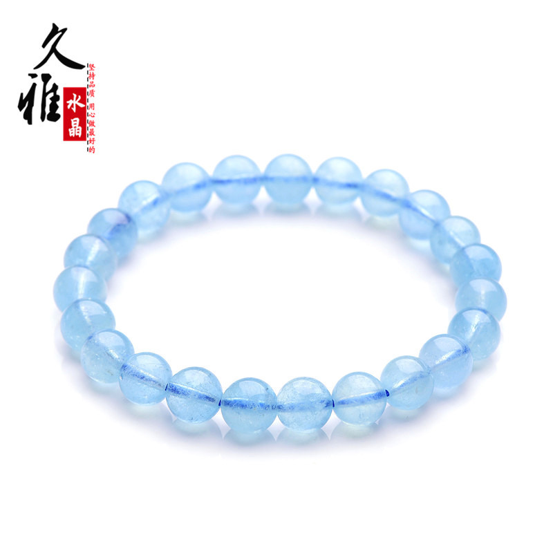久雅水晶 天然海蓝宝散珠 圆珠 DIY手工饰品串珠 半成品 批发