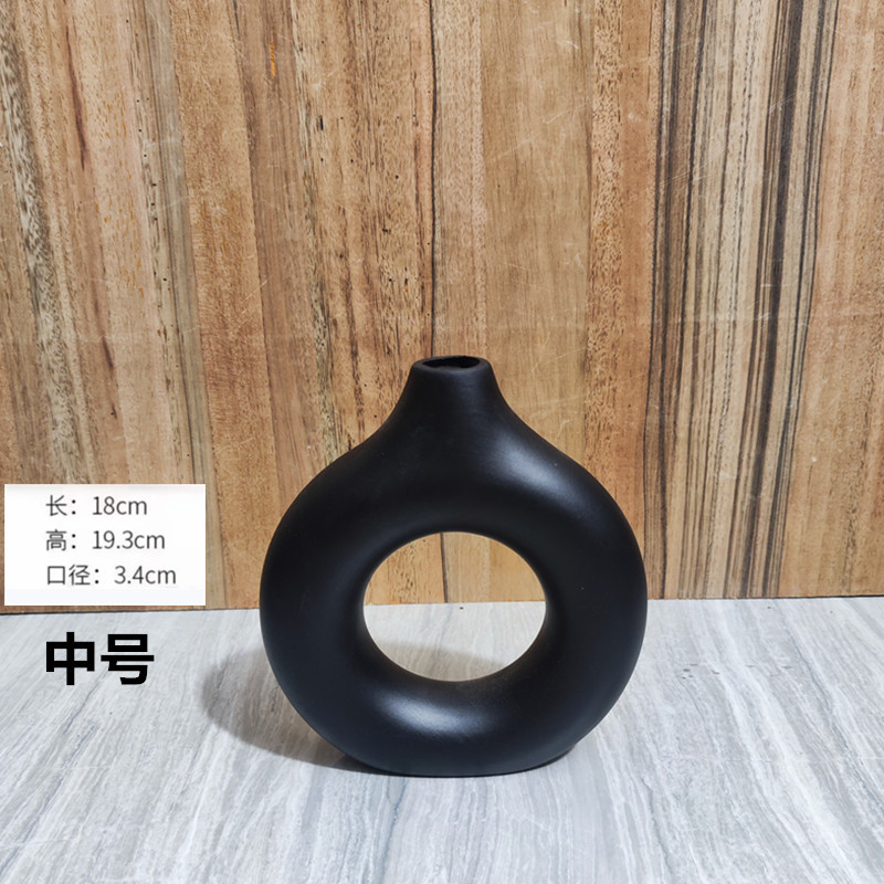 ins北欧风圆圈陶瓷花瓶摆件 家居客厅装饰工艺品简约民宿客栈装修