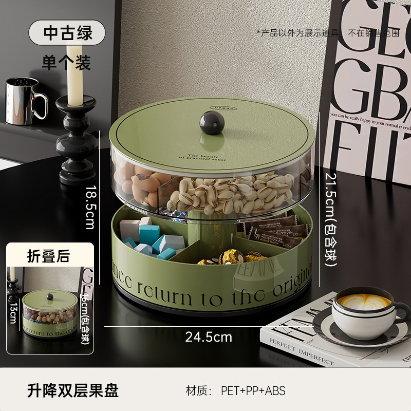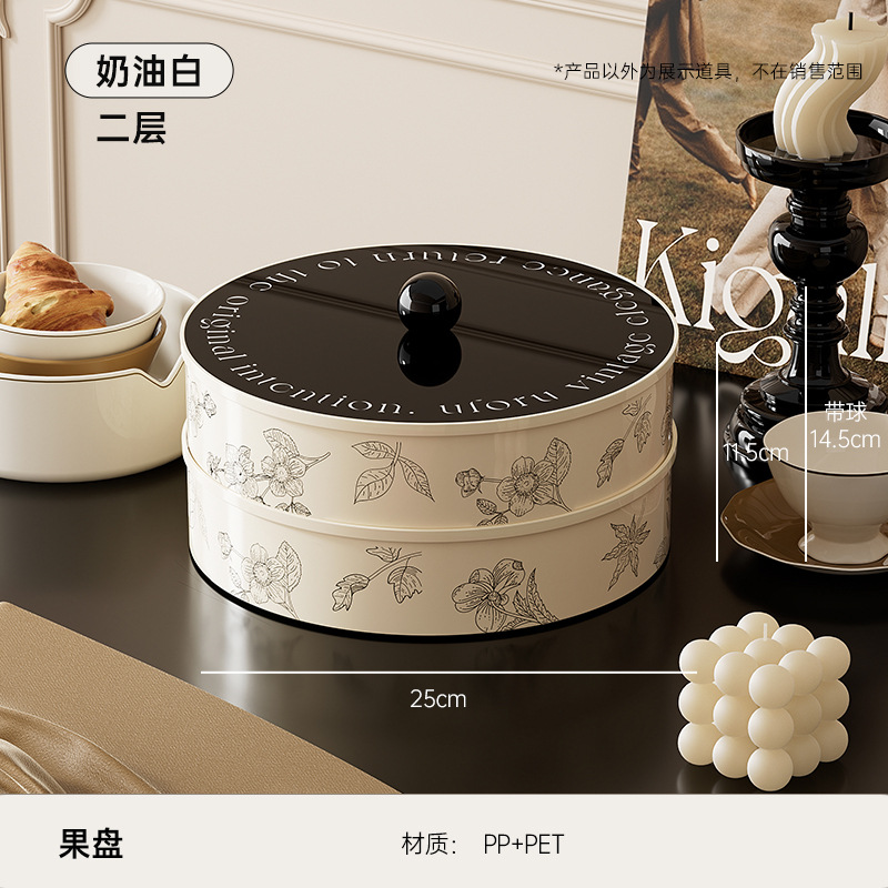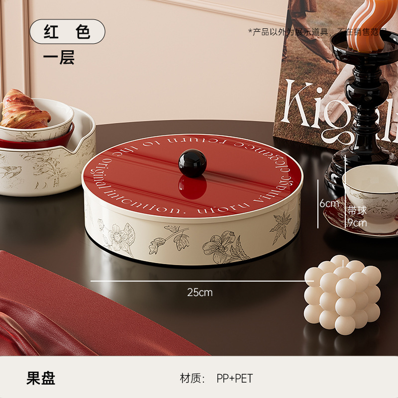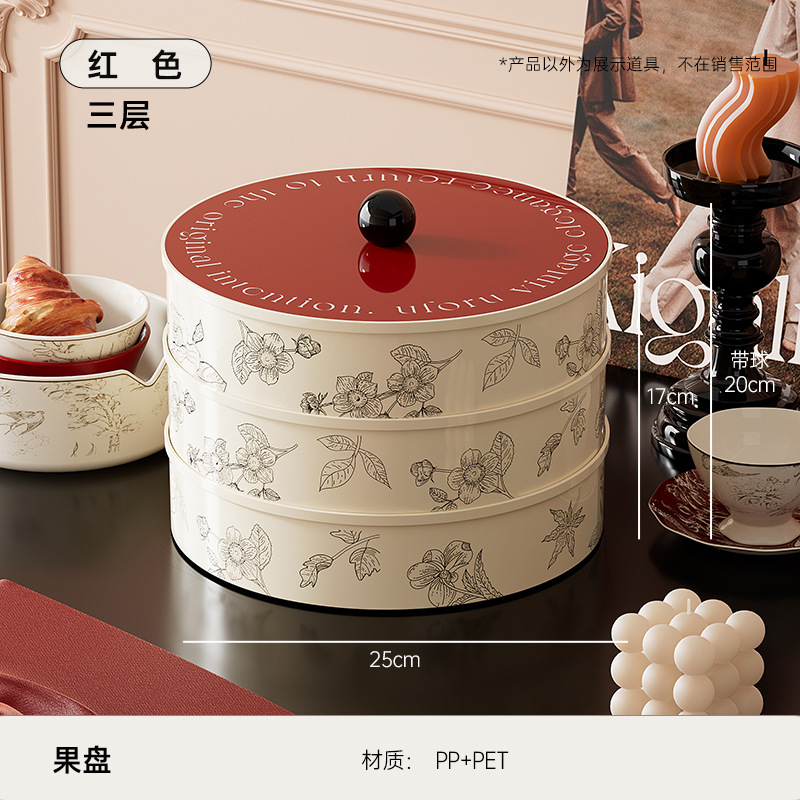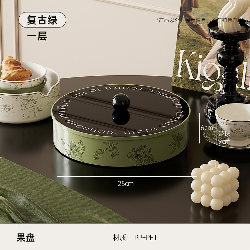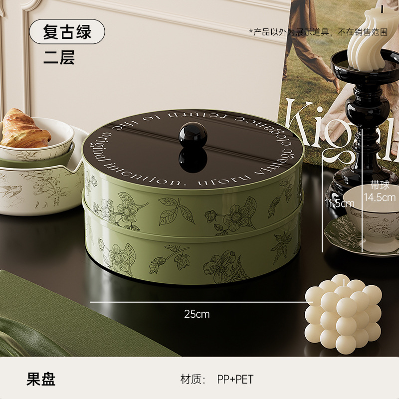 家用复古风果盘客厅茶几食品级瓜子花生零食干果盒多层分格糖果盘