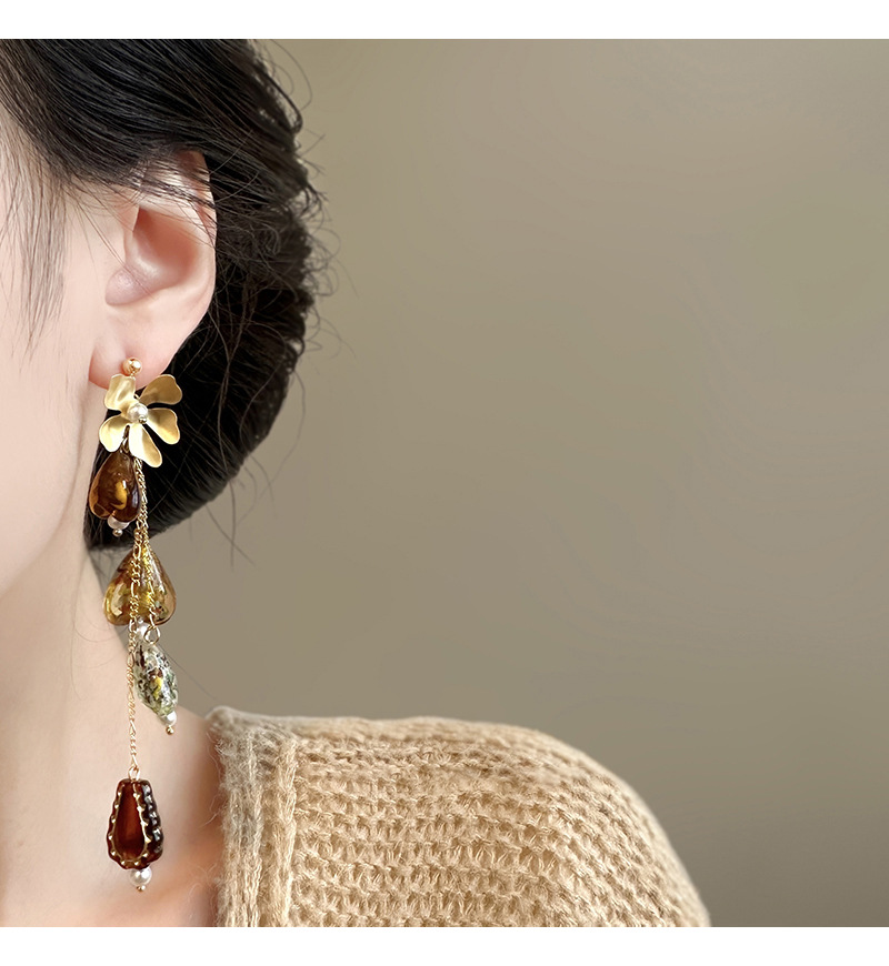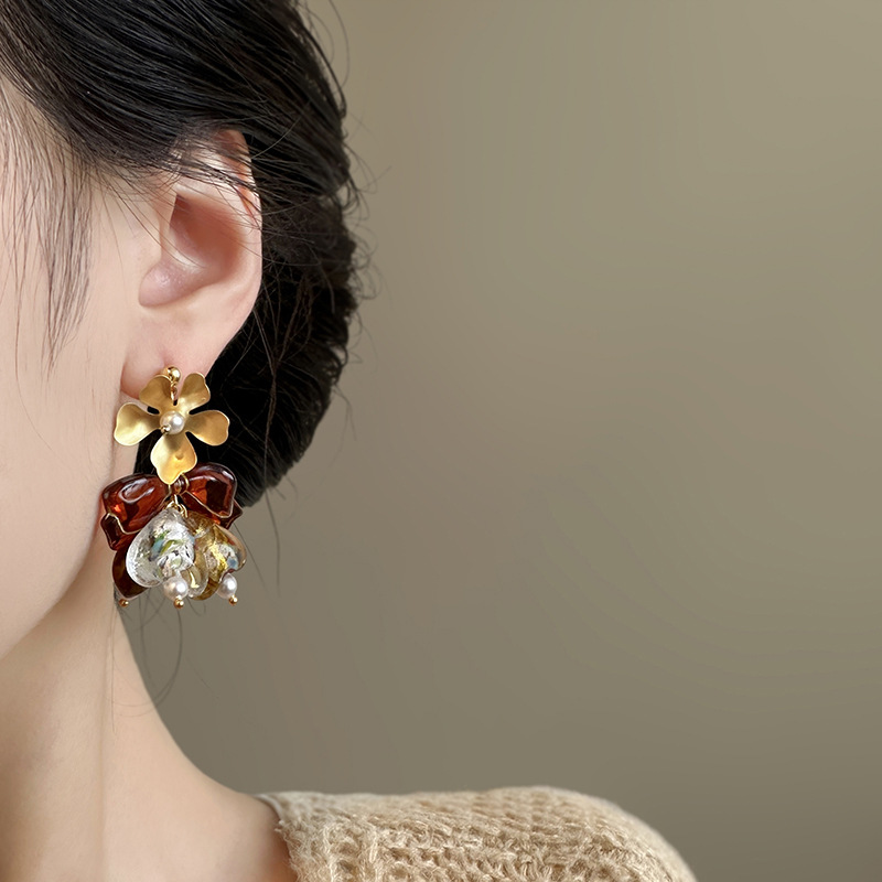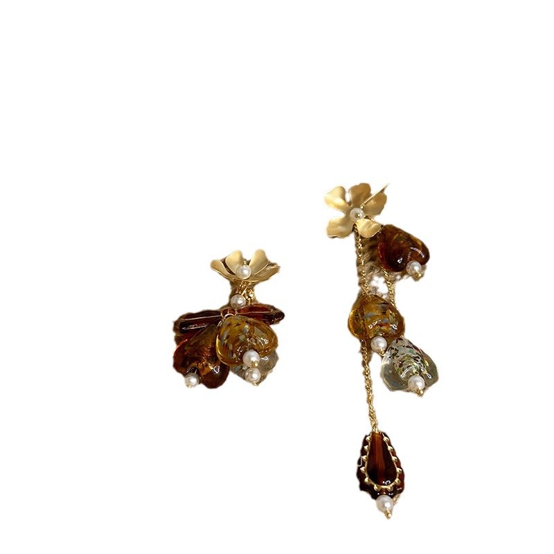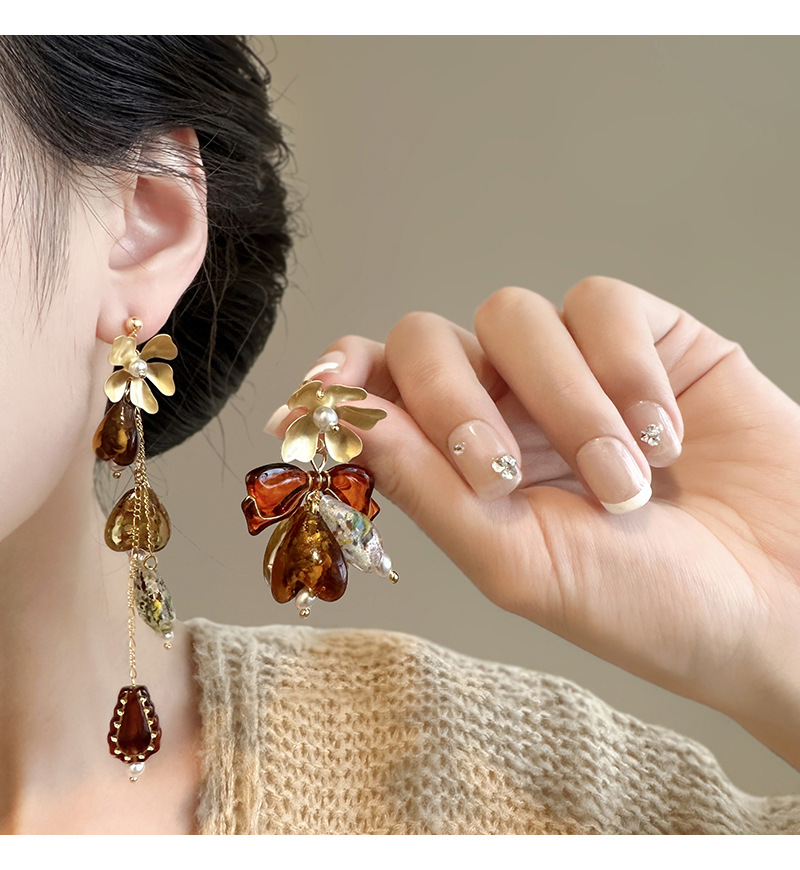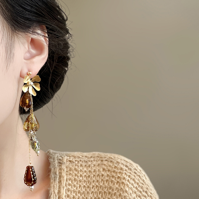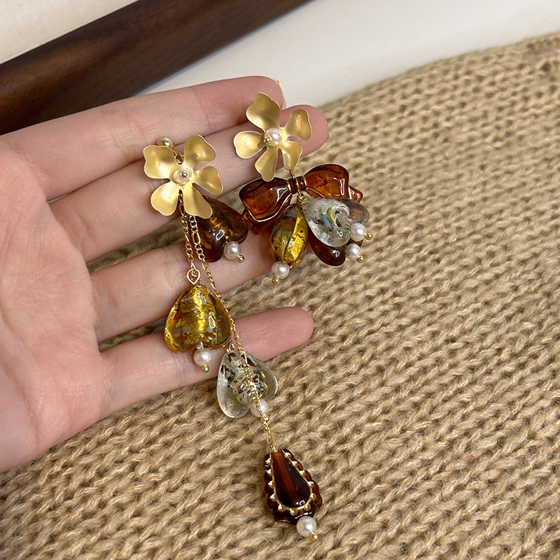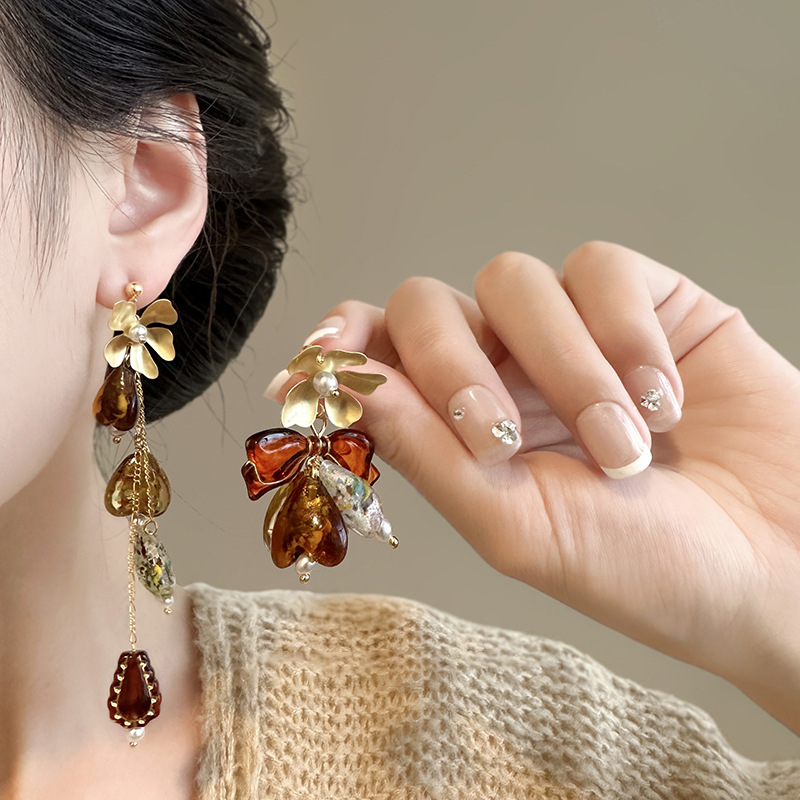 银针欧美复古花朵蝴蝶结不对称流苏耳钉夸张高级感耳环美拉德耳饰