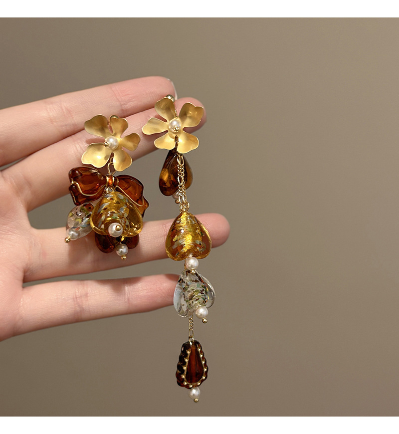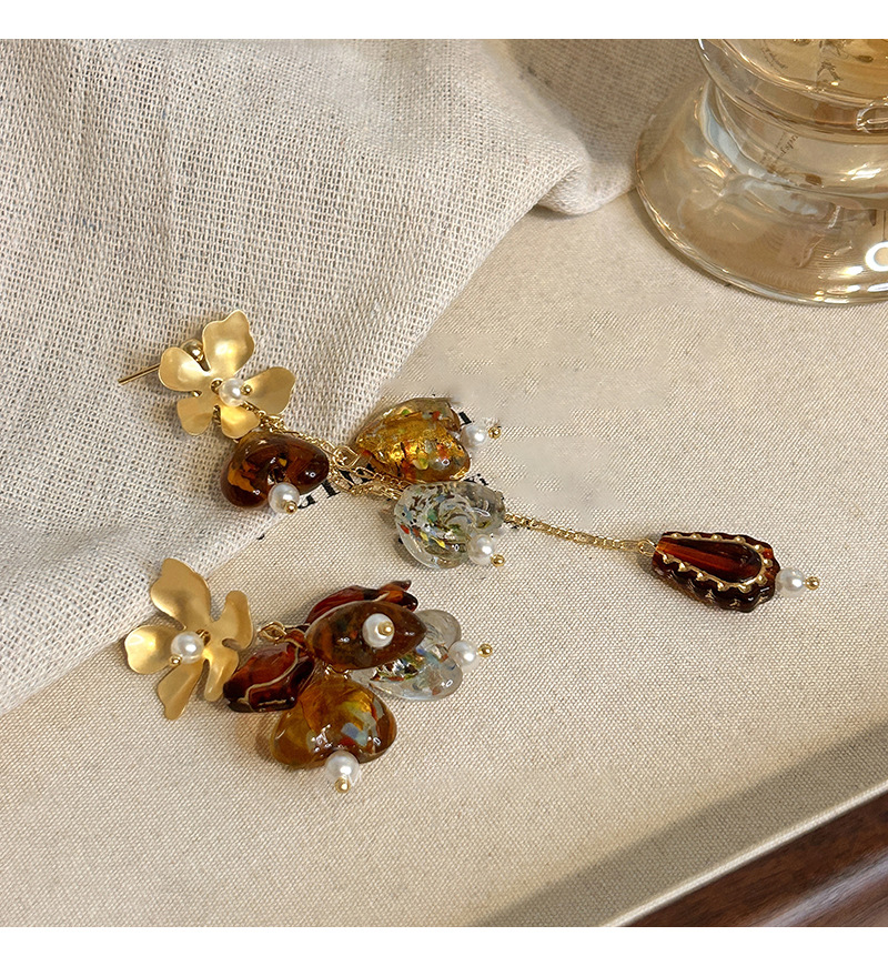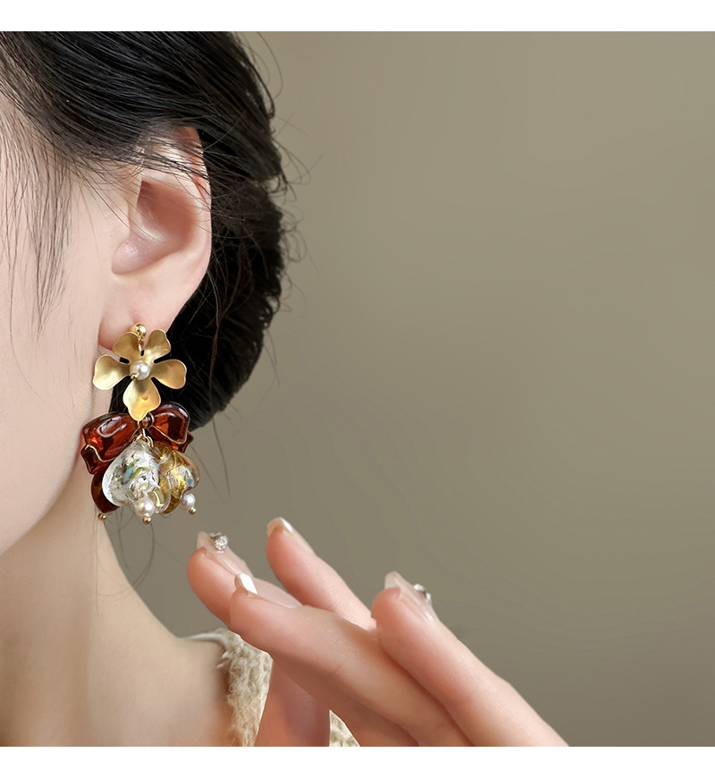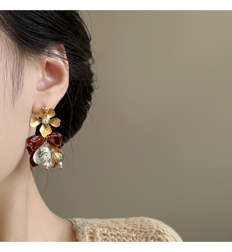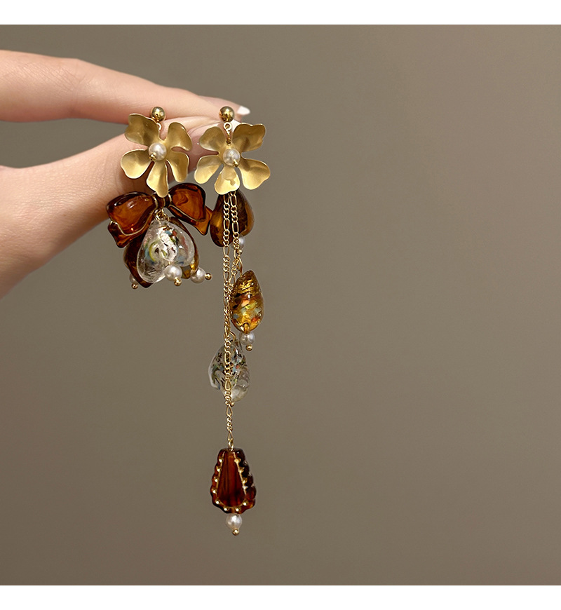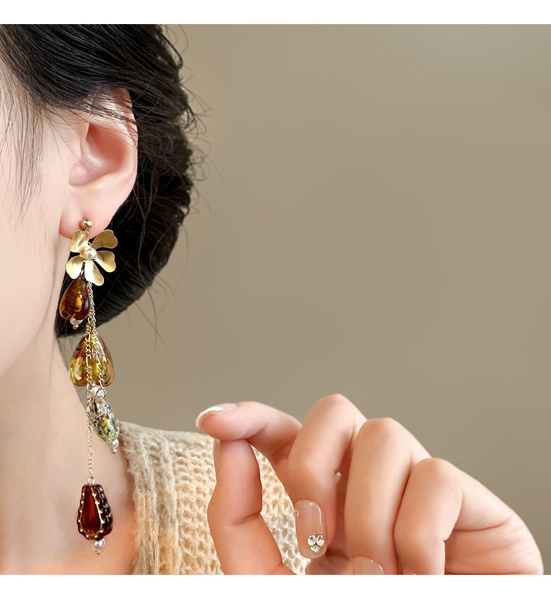 银针欧美复古花朵蝴蝶结不对称流苏耳钉夸张高级感耳环美拉德耳饰