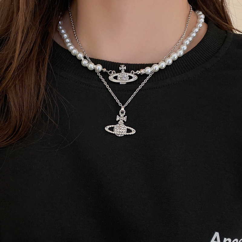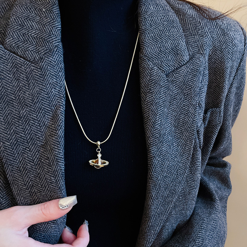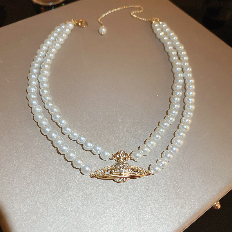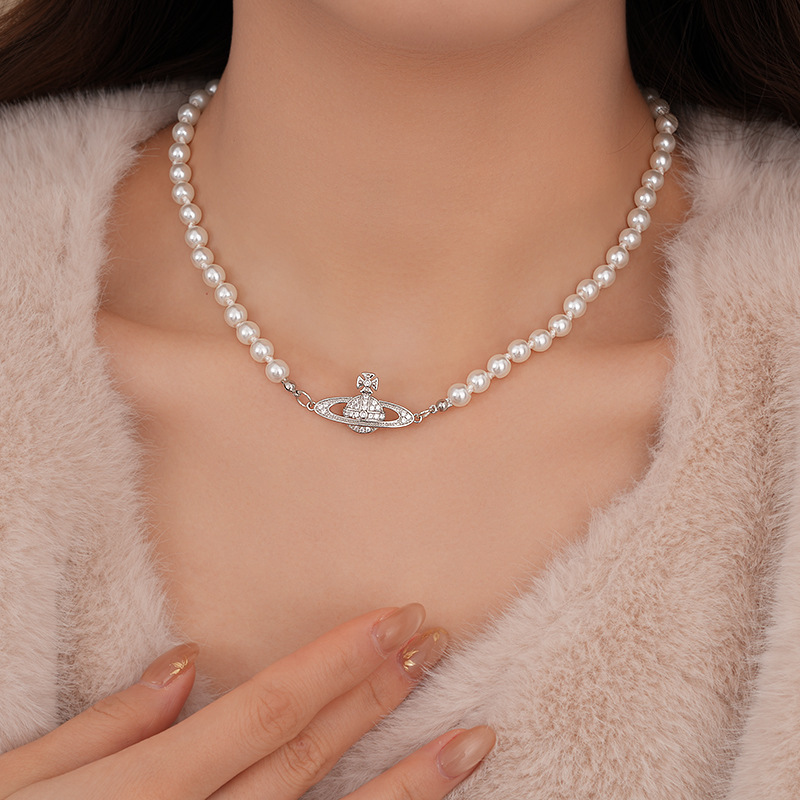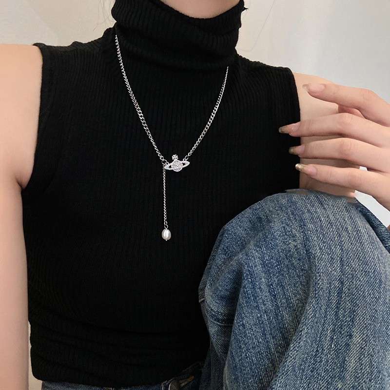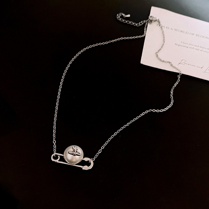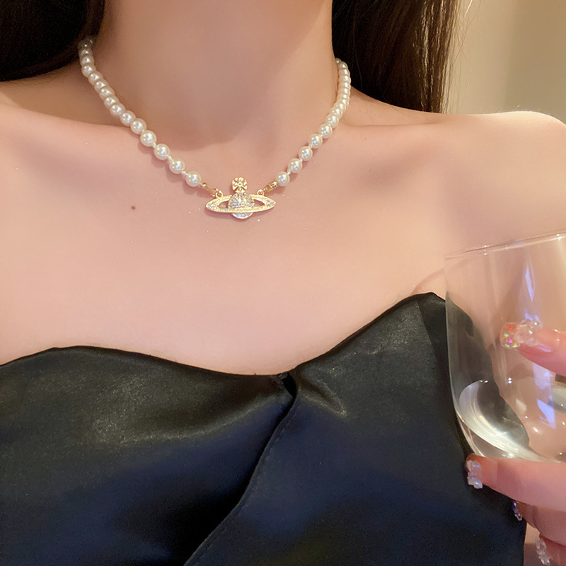 东大门时尚土星几何珍珠款项链个性冷淡风锁骨链法式复古项饰批发