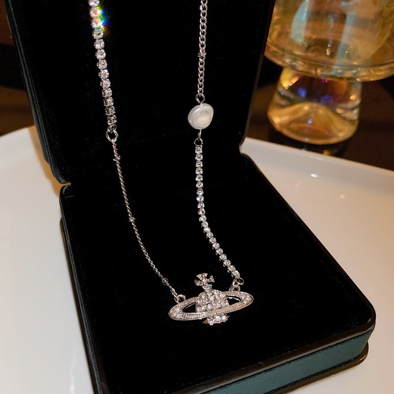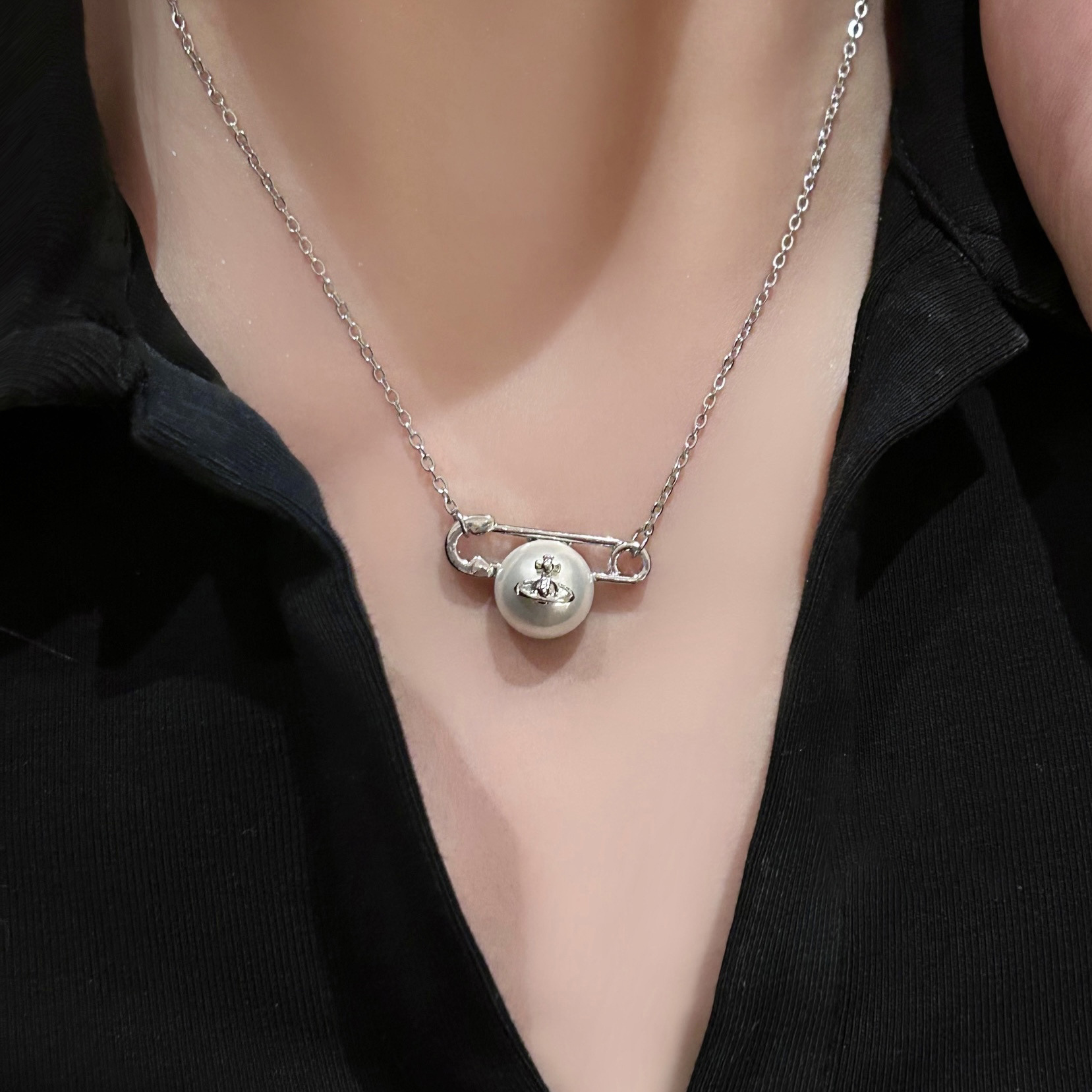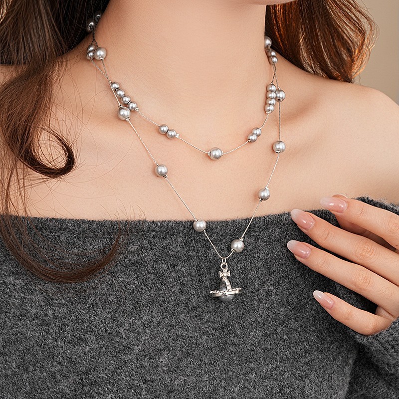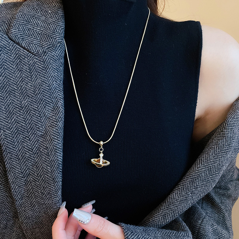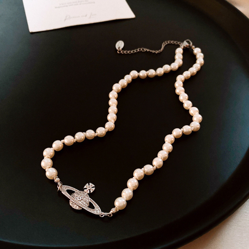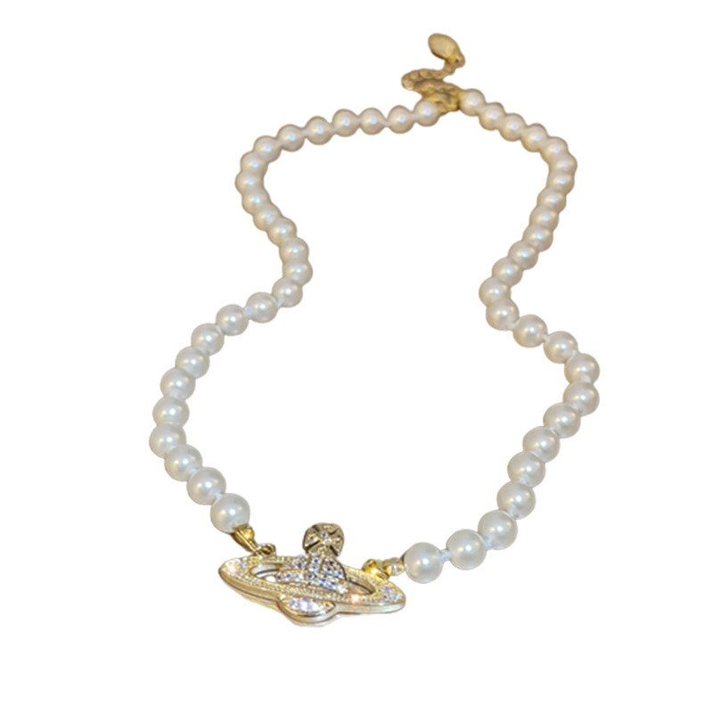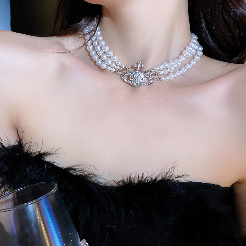 东大门时尚土星几何珍珠款项链个性冷淡风锁骨链法式复古项饰批发