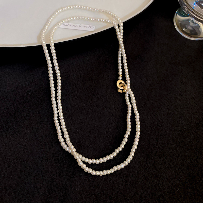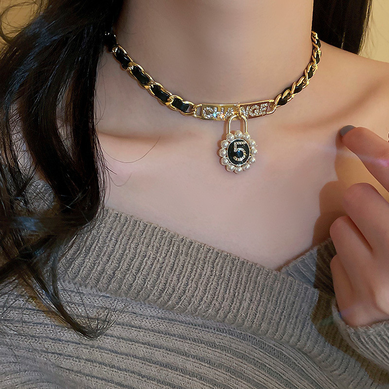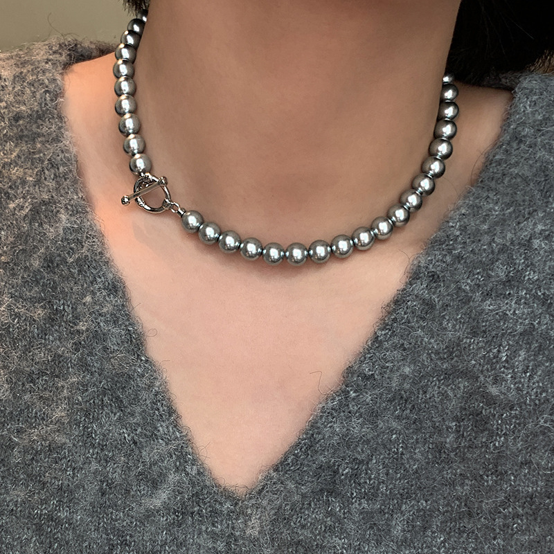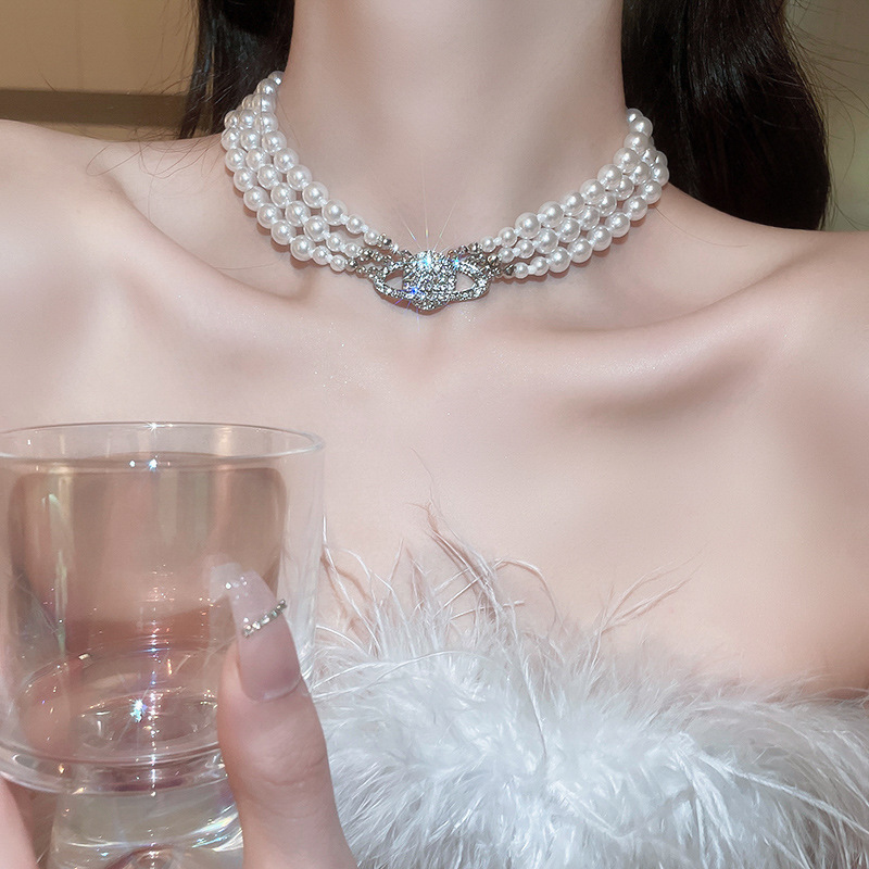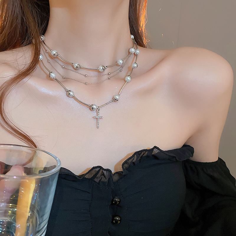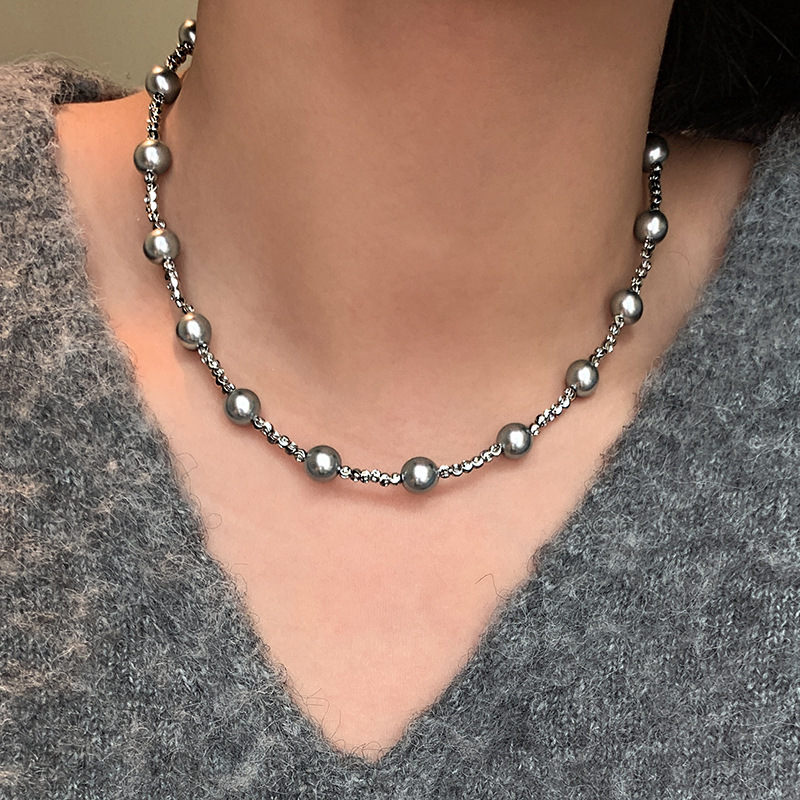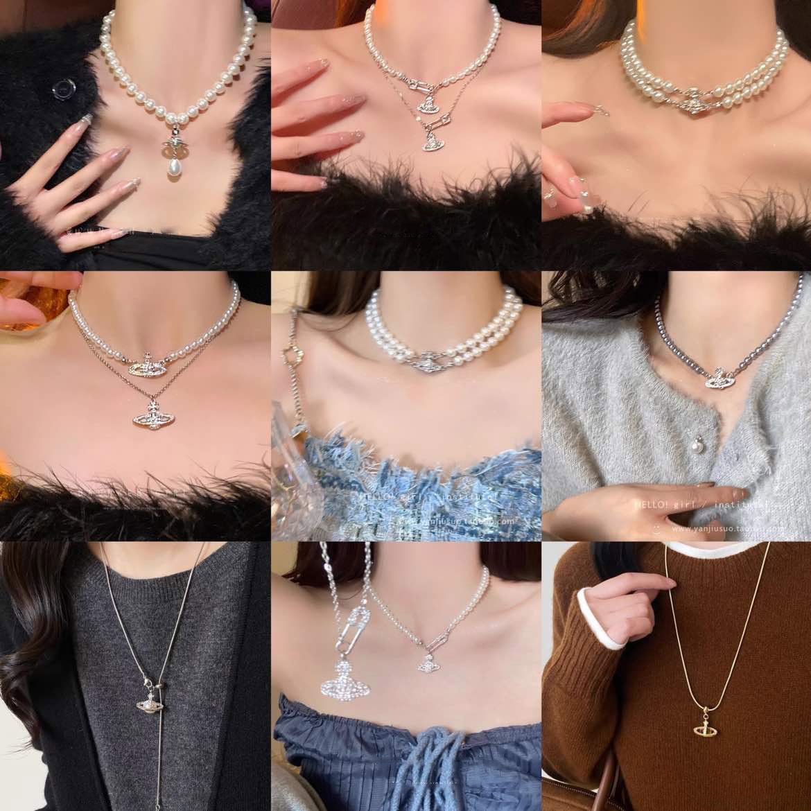 东大门时尚土星几何珍珠款项链个性冷淡风锁骨链法式复古项饰批发
