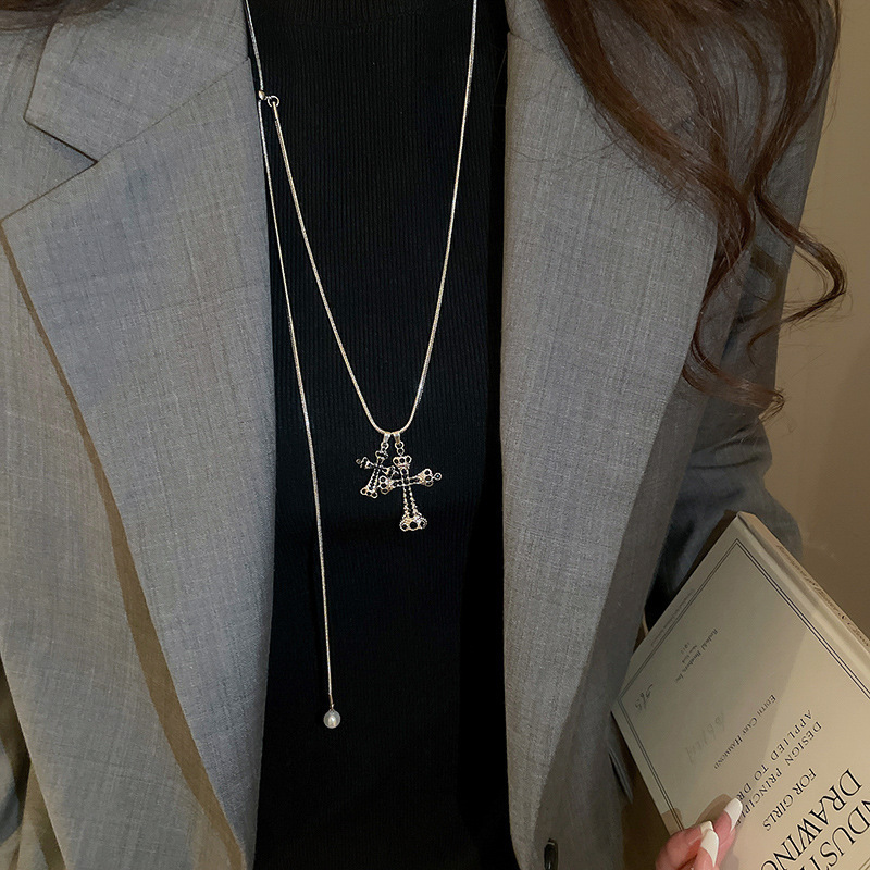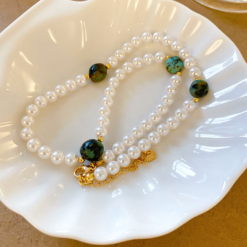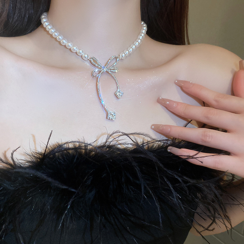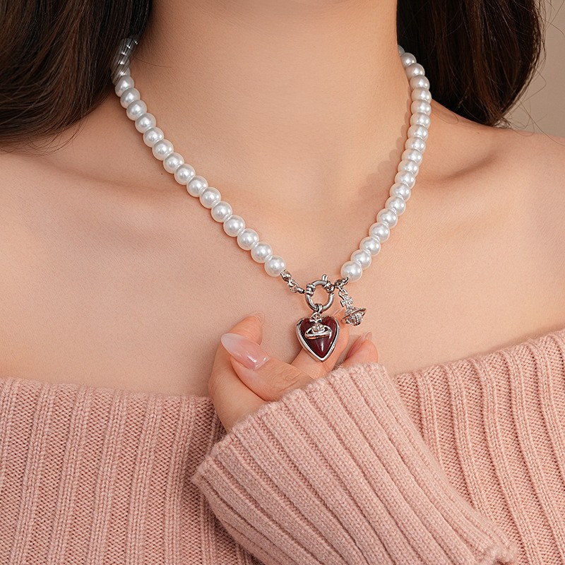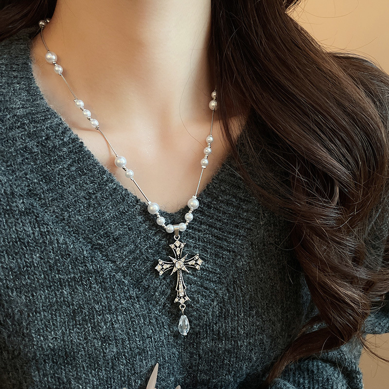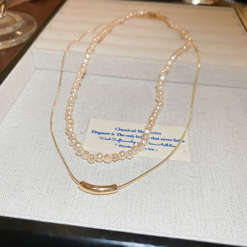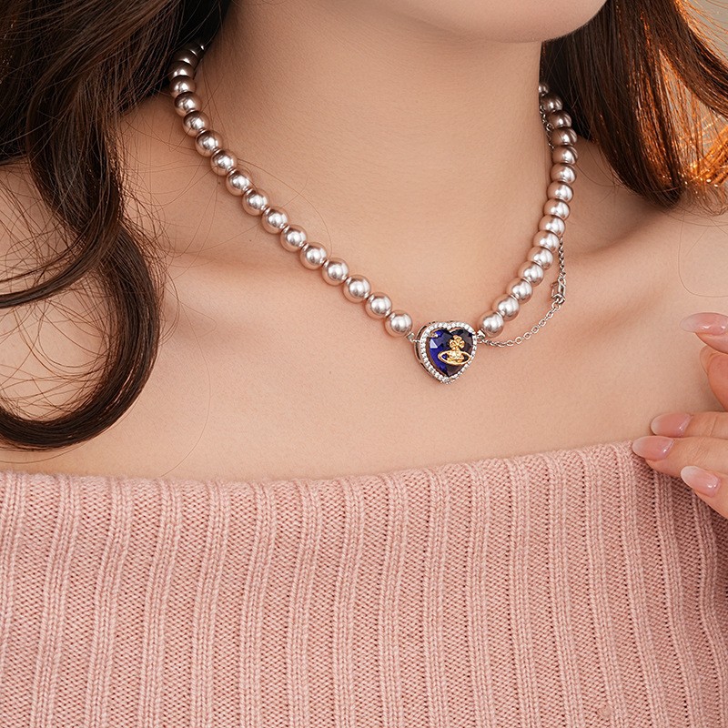 东大门时尚土星几何珍珠款项链个性冷淡风锁骨链法式复古项饰批发