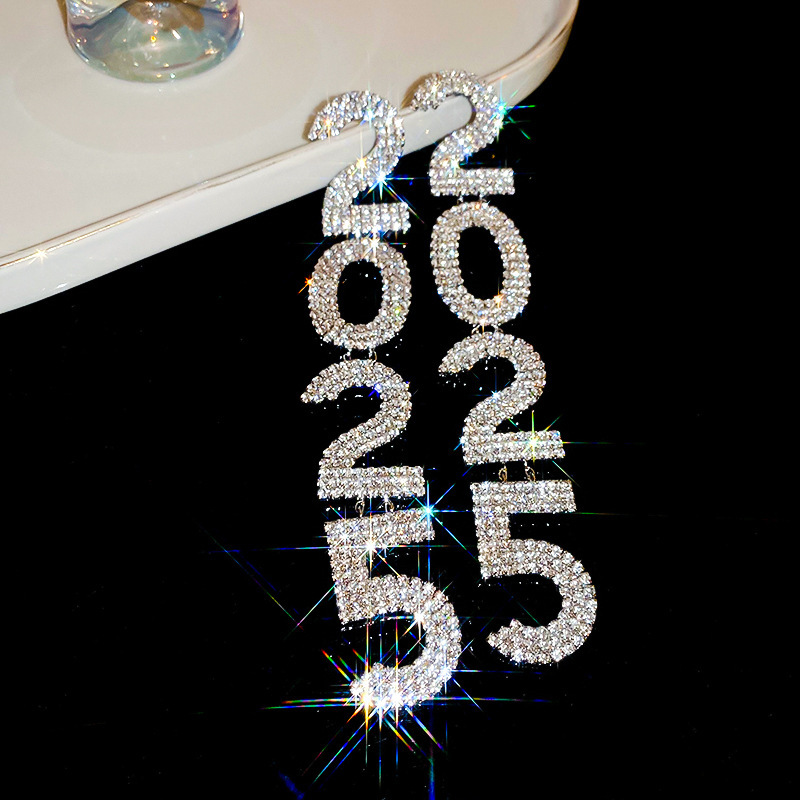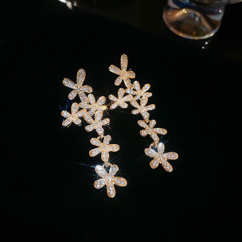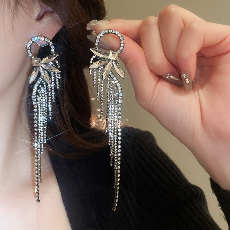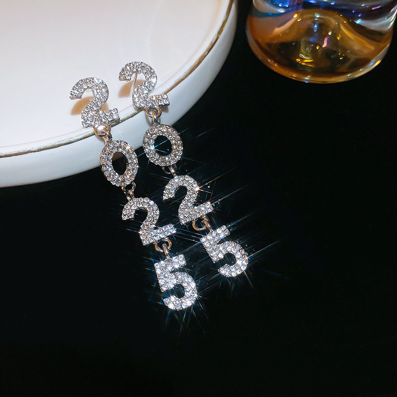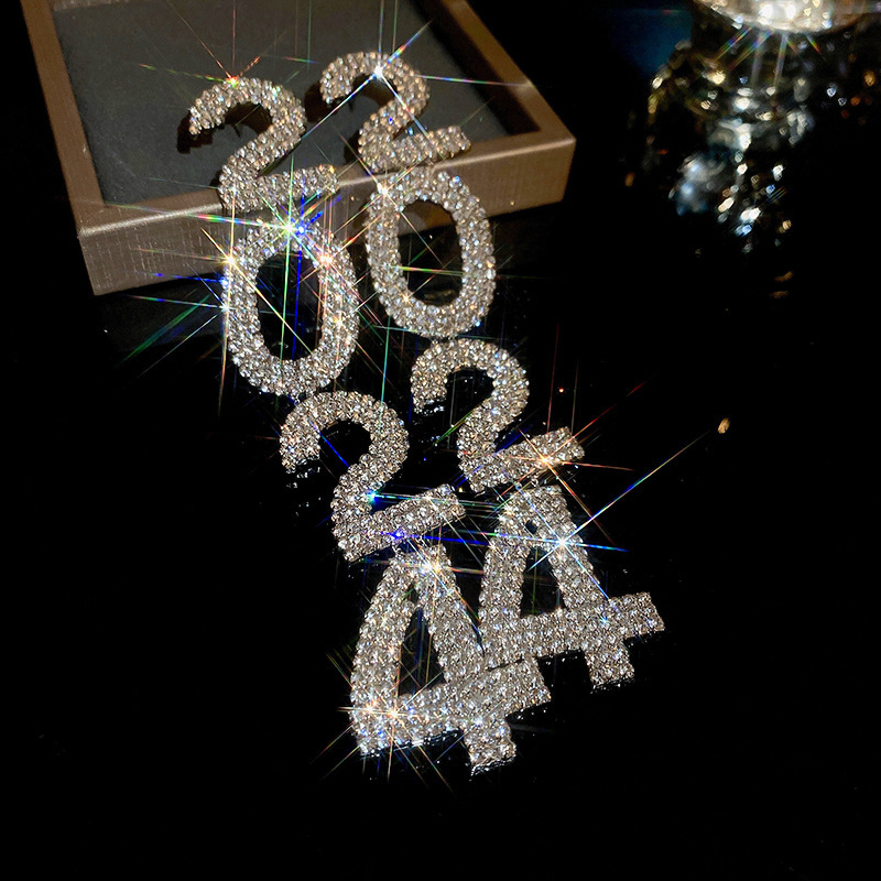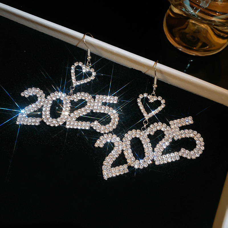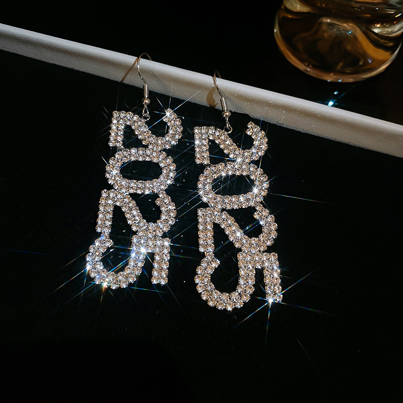 欧美跨境超闪镶钻花朵数字流苏耳钉轻奢冷淡风耳环夸张高级感耳饰