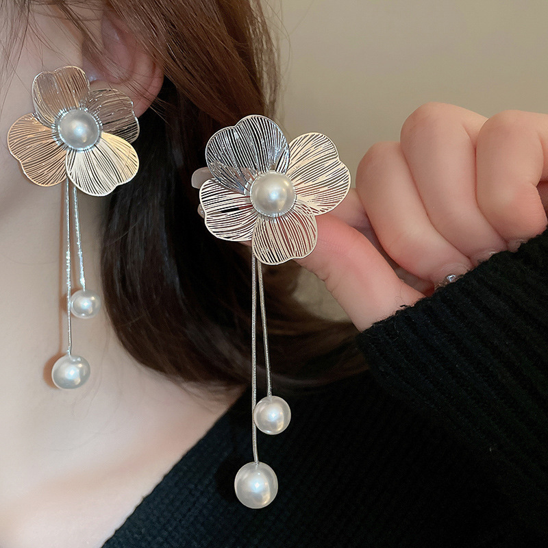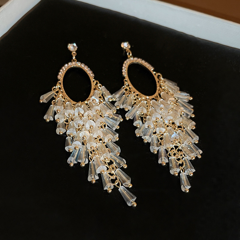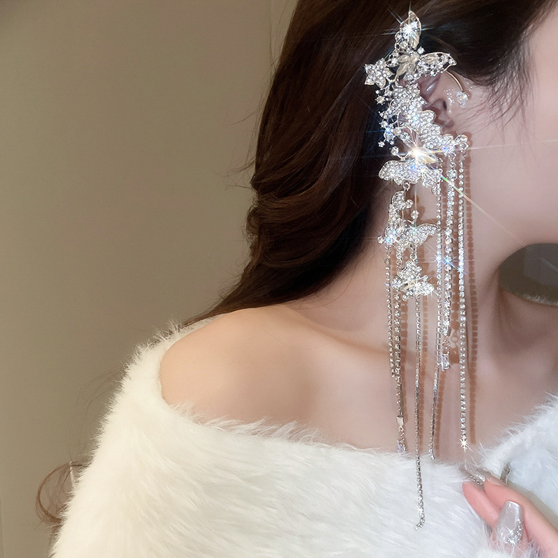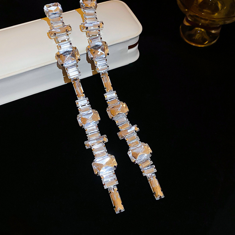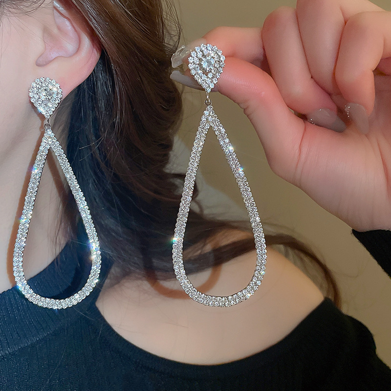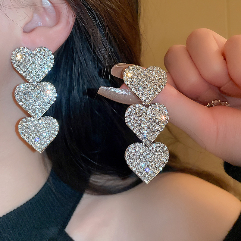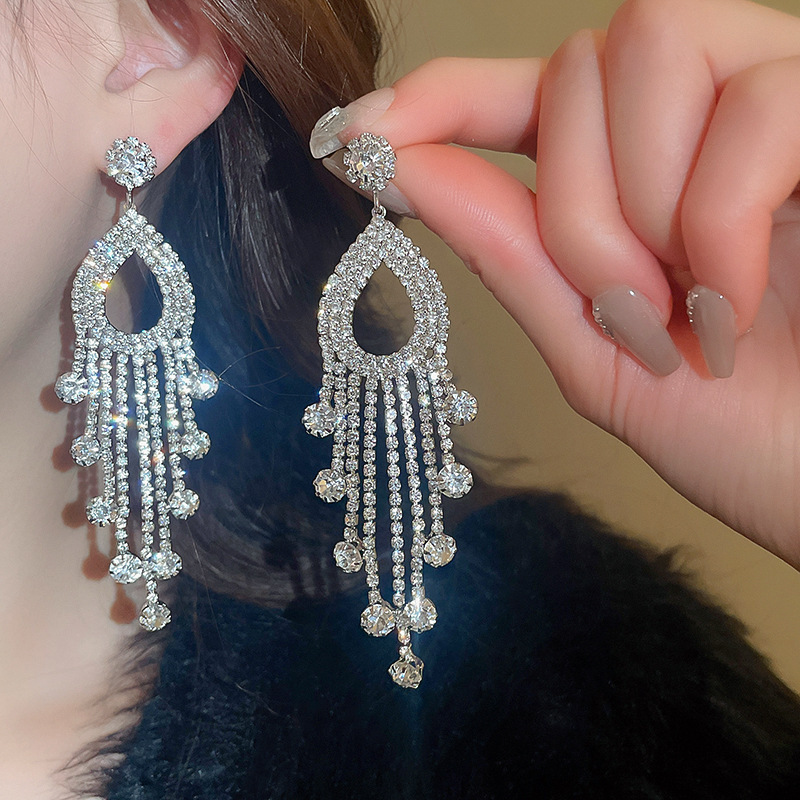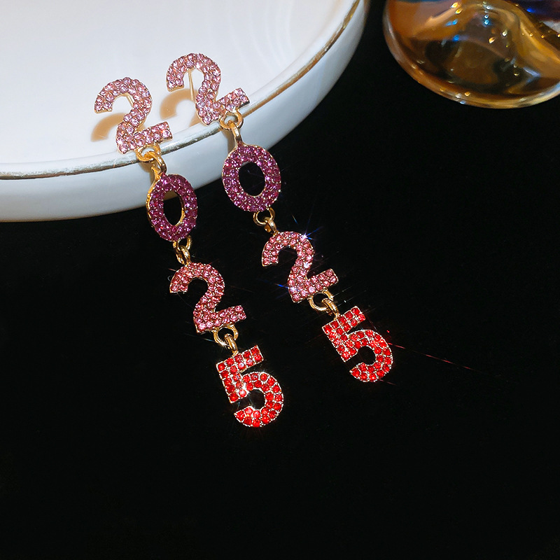 欧美跨境超闪镶钻花朵数字流苏耳钉轻奢冷淡风耳环夸张高级感耳饰