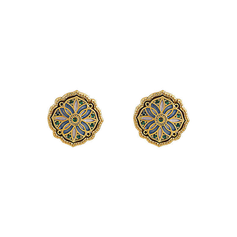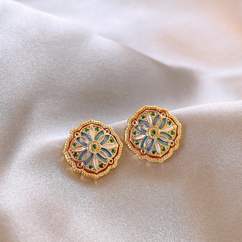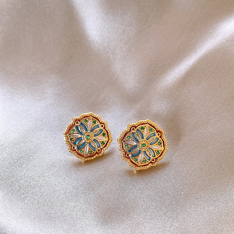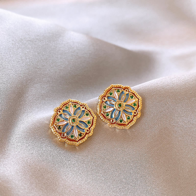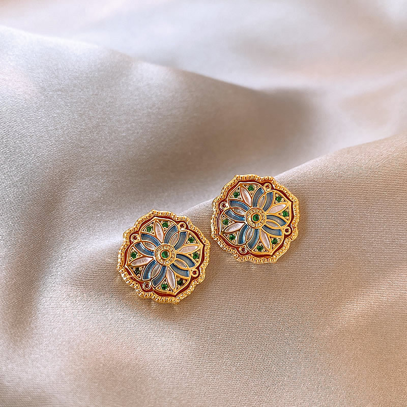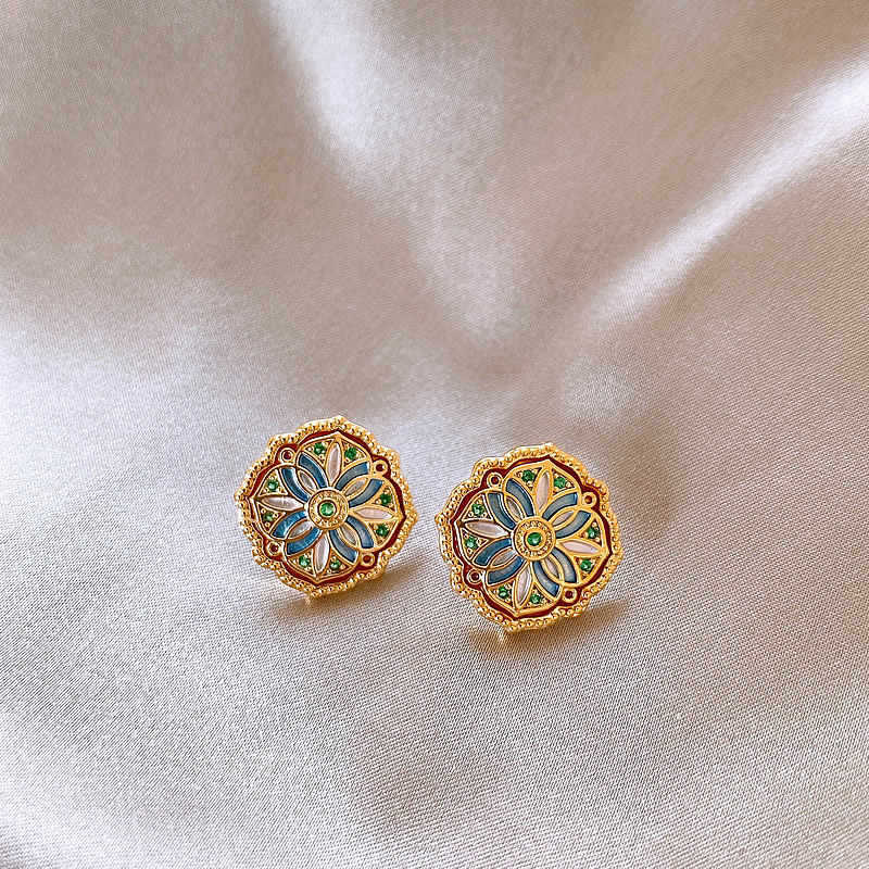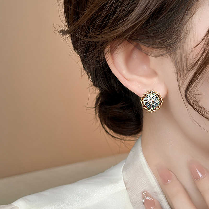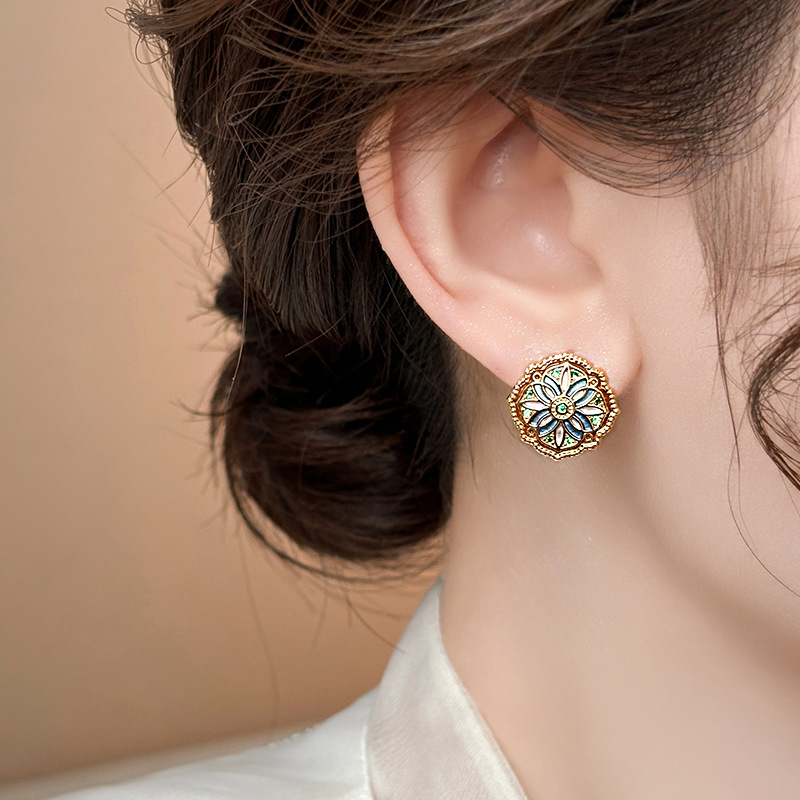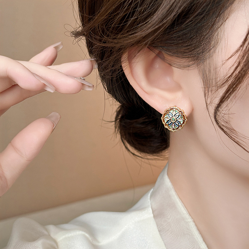 真金电镀银针锆石菱形花朵耳钉复古新中式耳环轻奢高级感耳饰批发