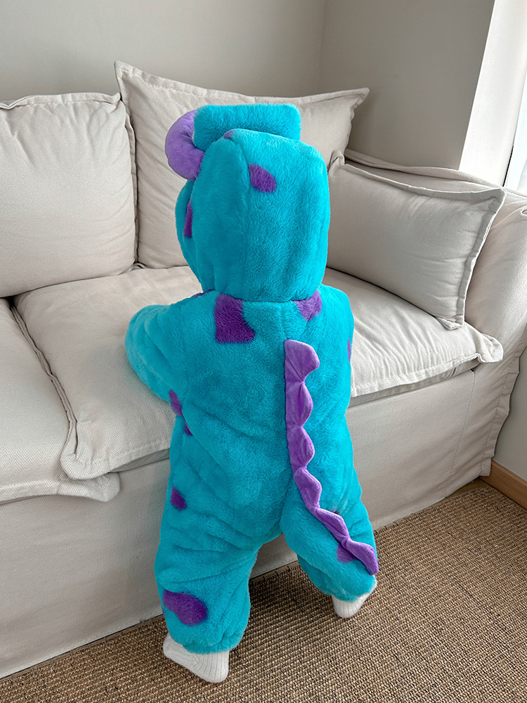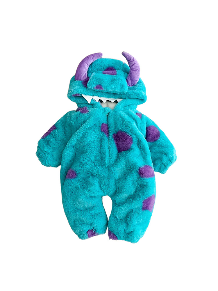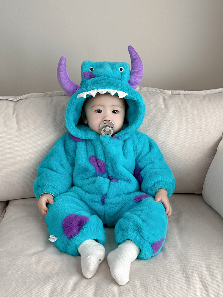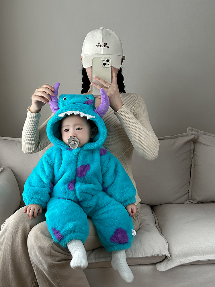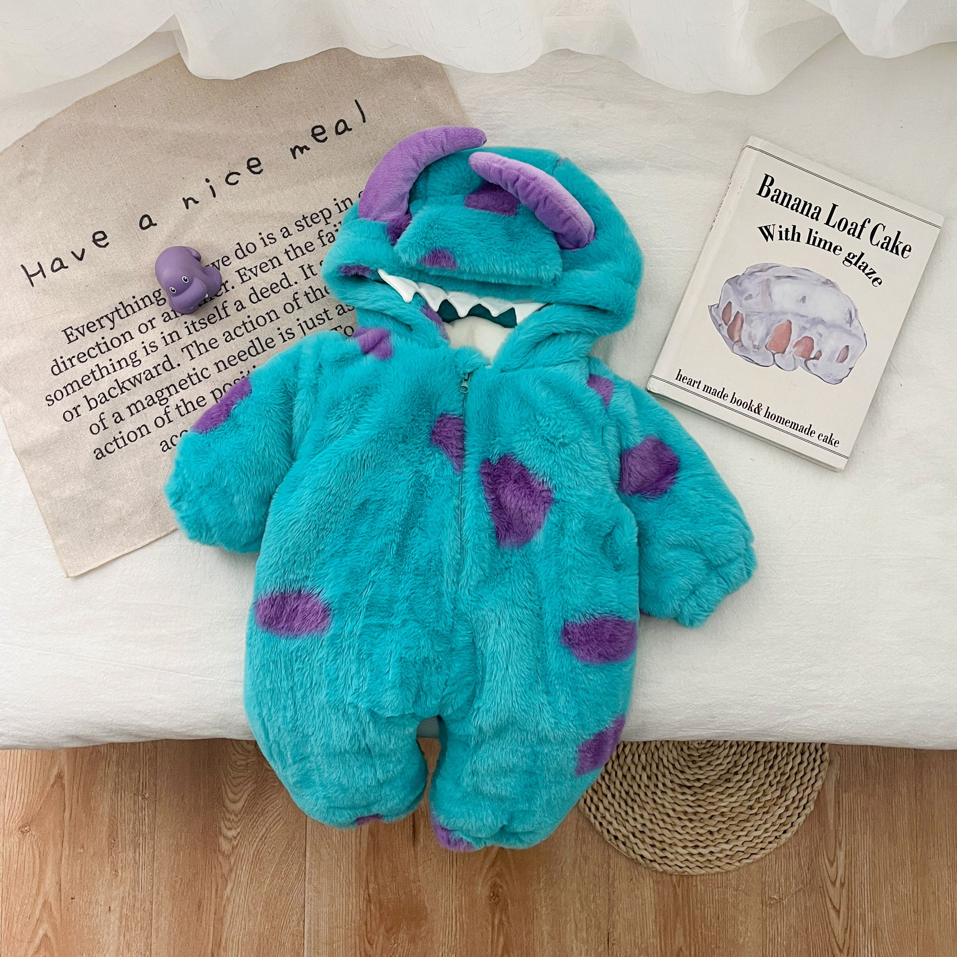 婴儿连体衣冬季加厚毛怪加绒棉服宝宝衣服小怪兽冬装可爱超萌外出
