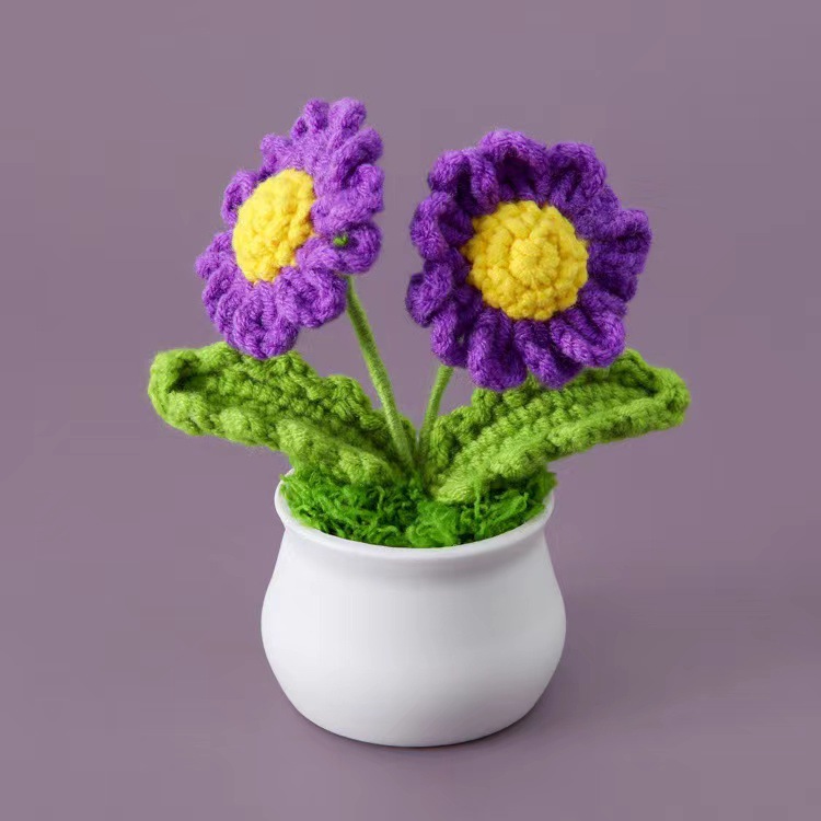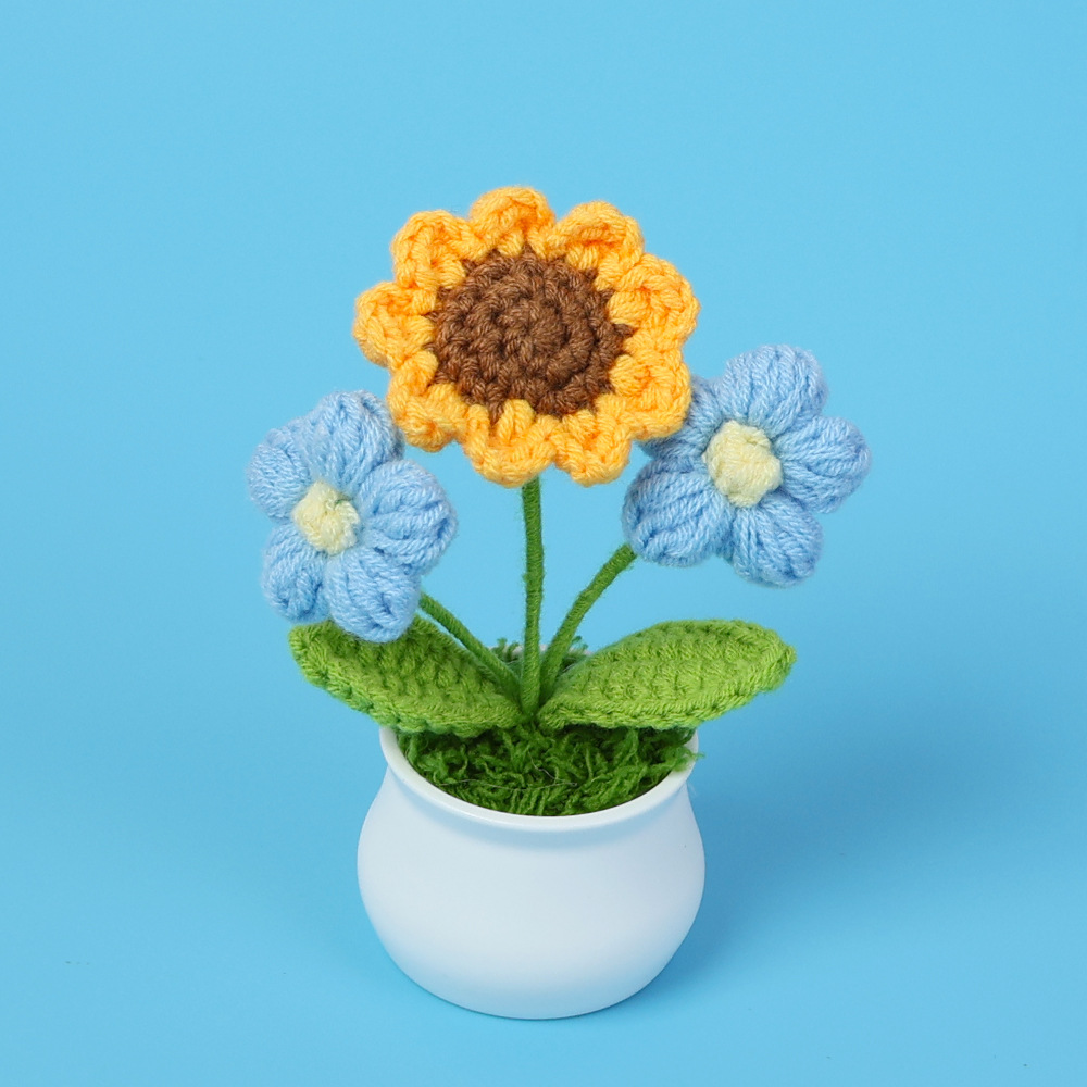 成品跨境针织毛线向日葵盆栽仿真花书房桌面摆件春节圣诞节小礼物