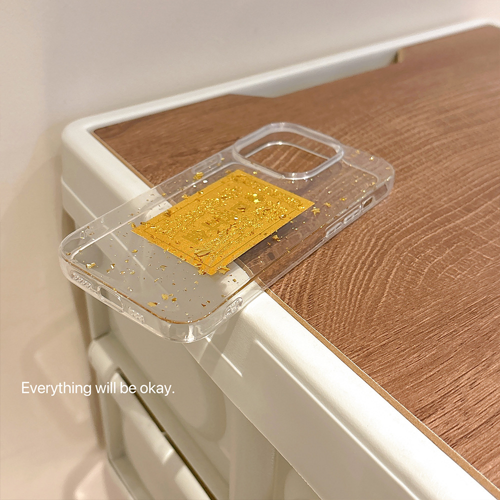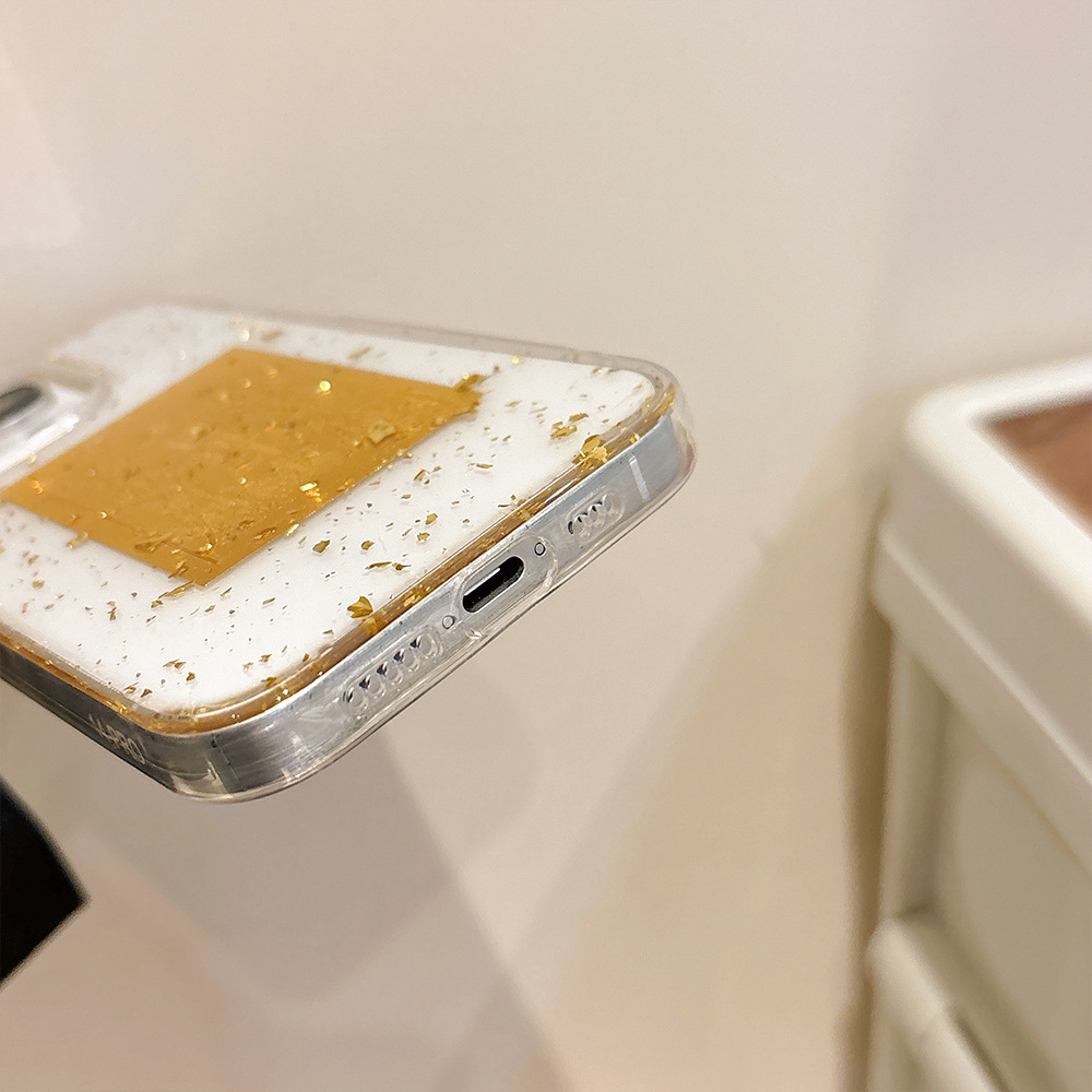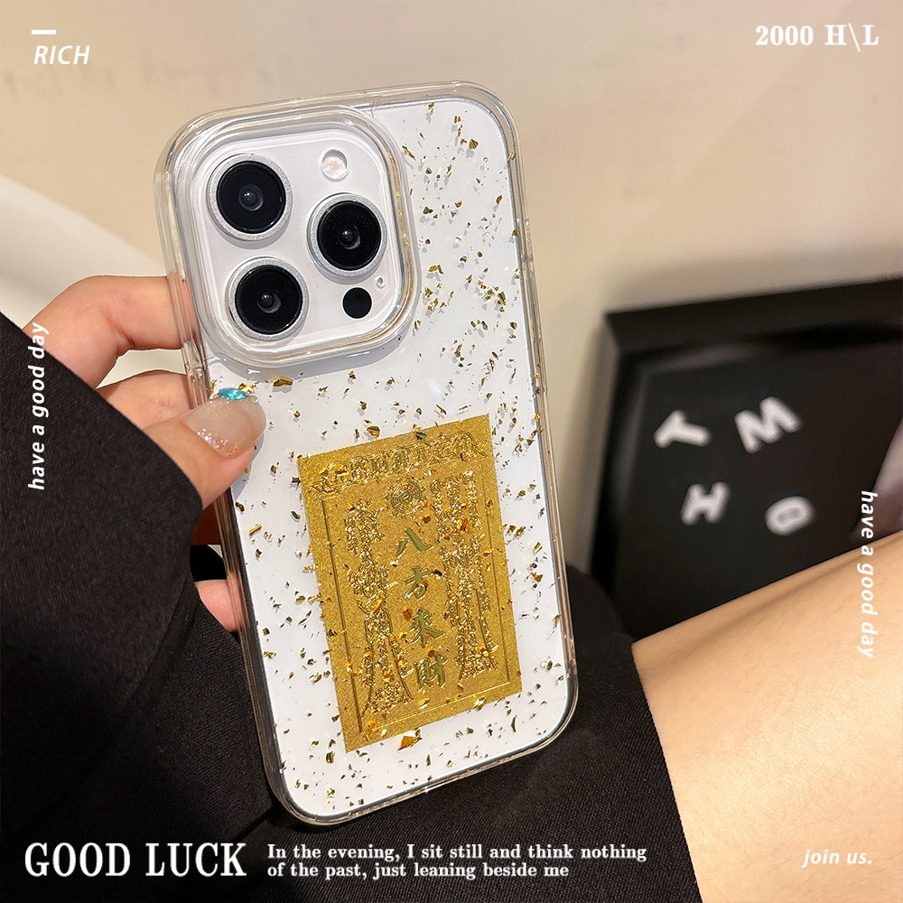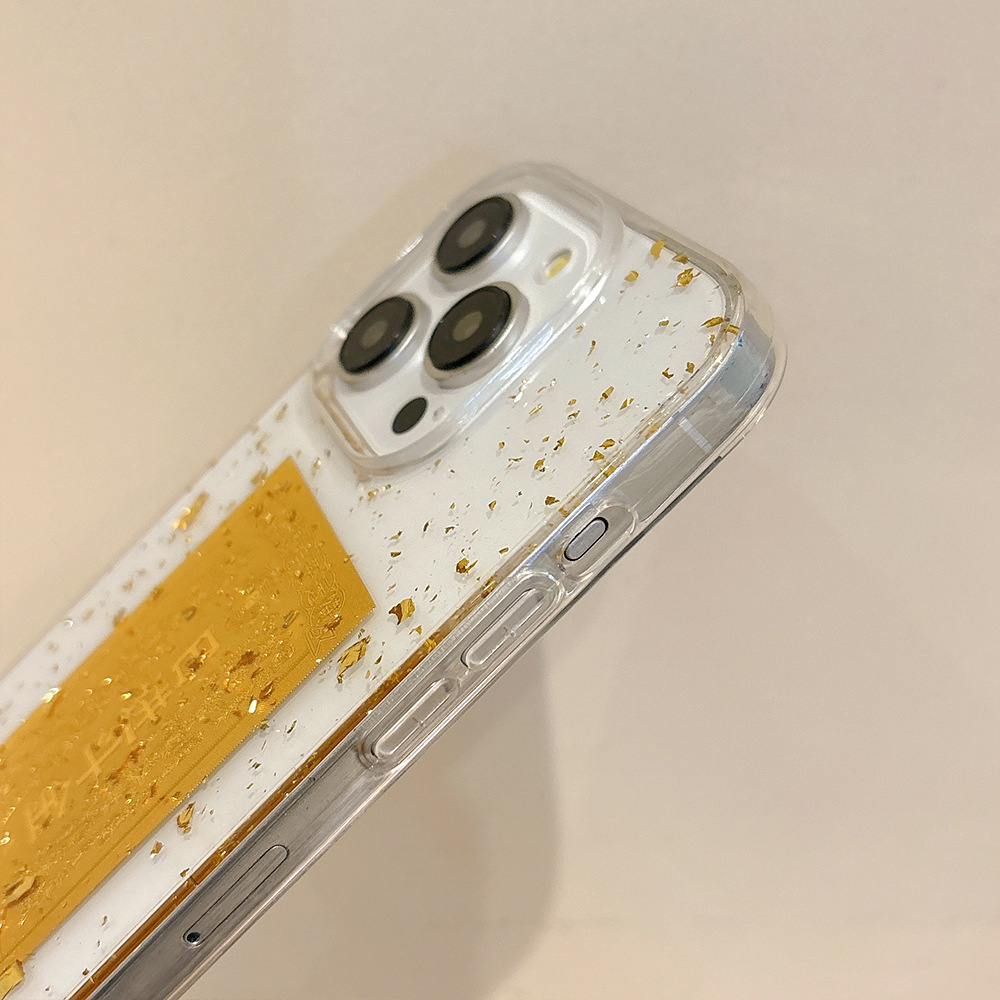 适用iPhone16promax日进斗金金箔滴胶手机壳苹果15透明防摔保护套