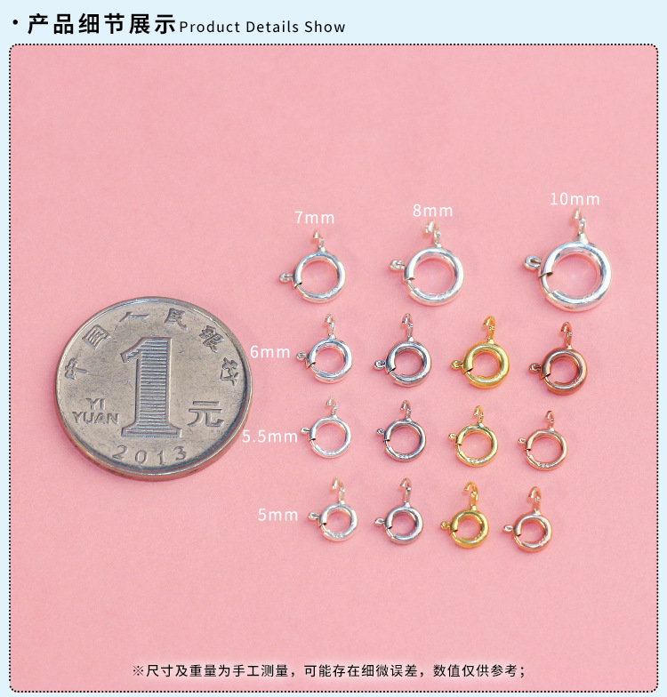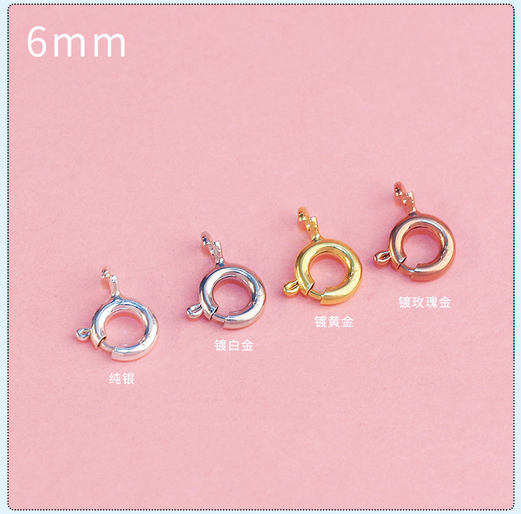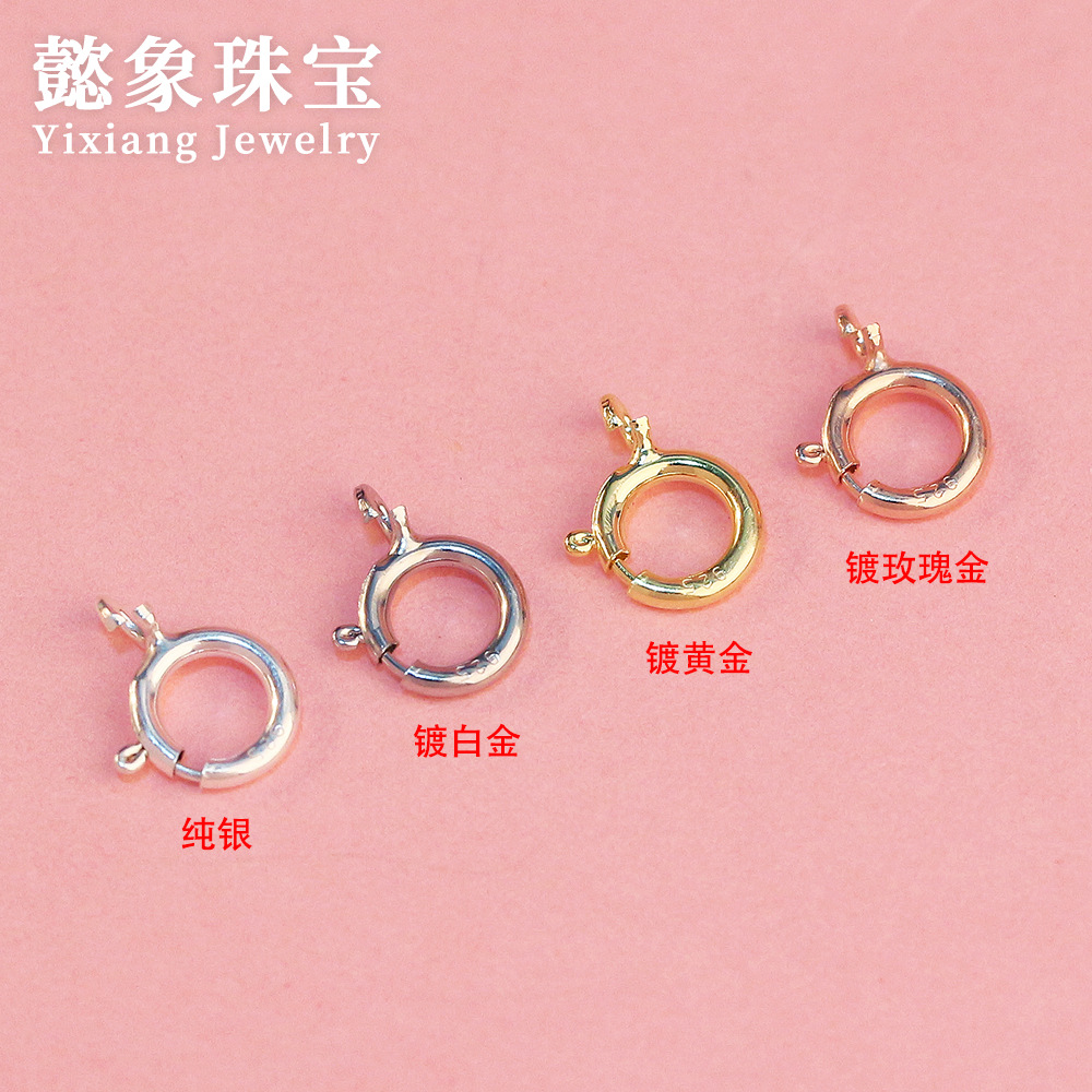 S925银弹簧扣珍珠项链扣连接扣纯银手链扣配件接头扣子彩金扣头