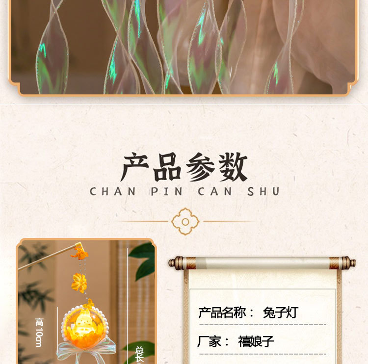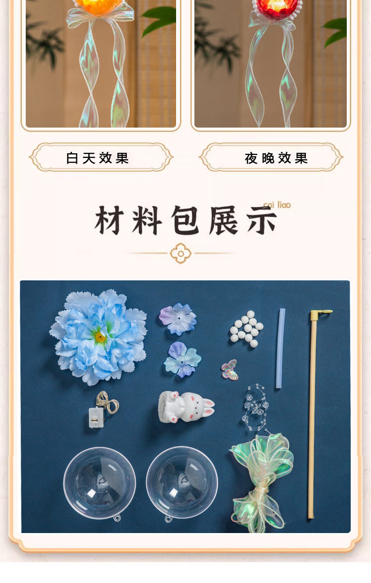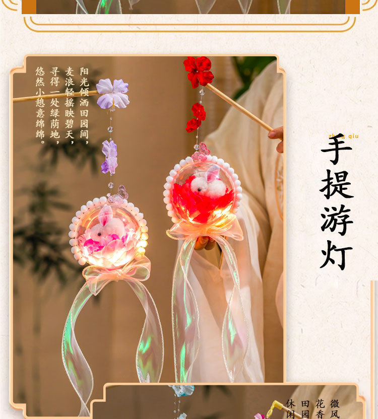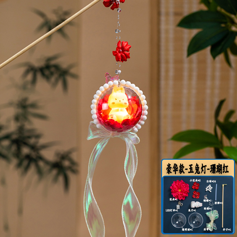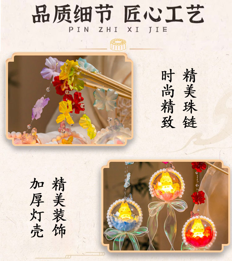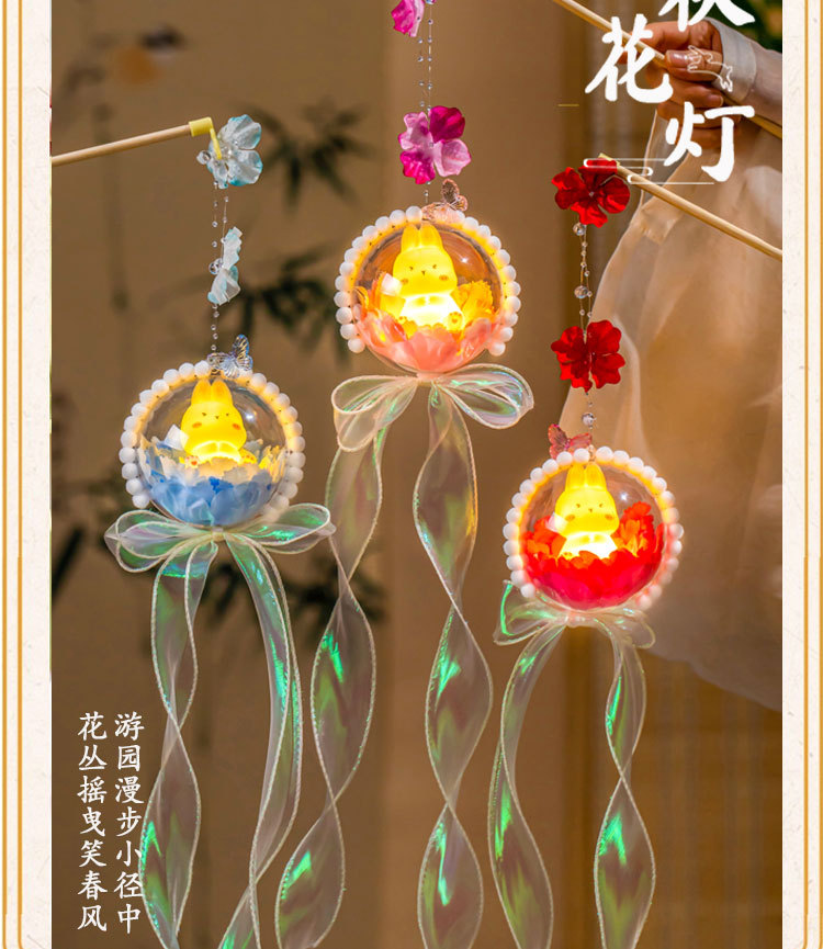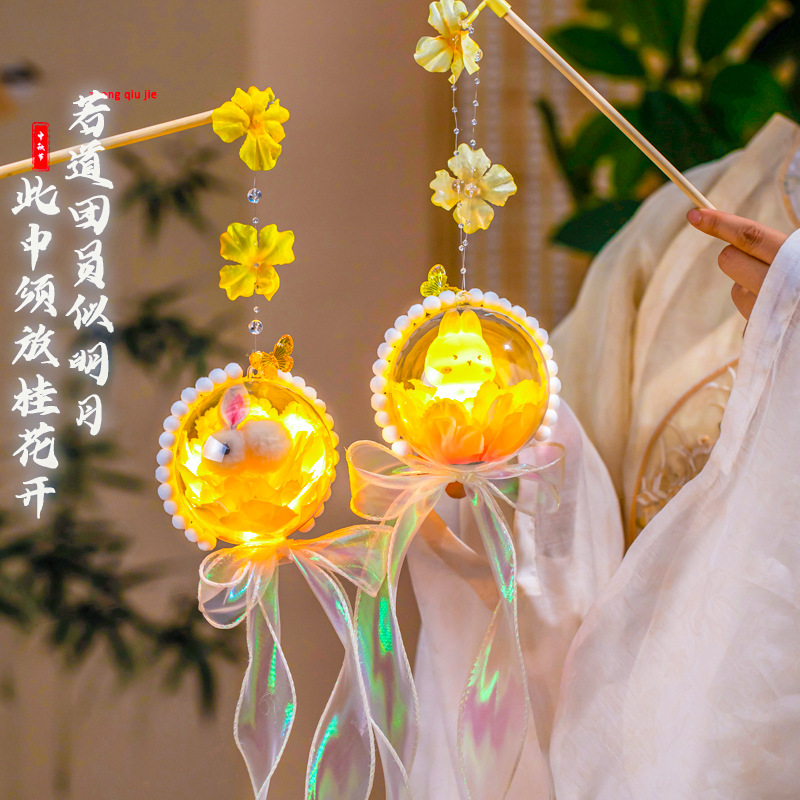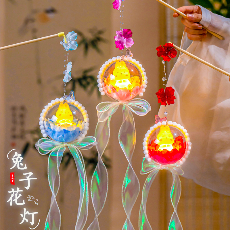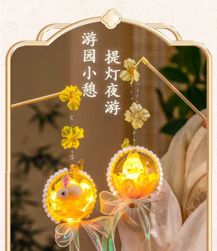 中秋节灯笼diy材料包2025新款儿童发光手提兔子花灯挂饰古风宫灯