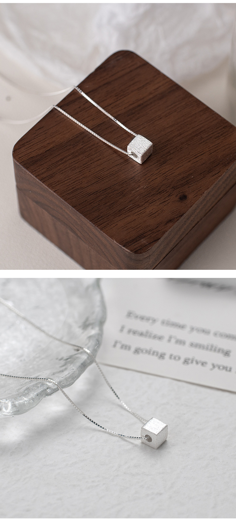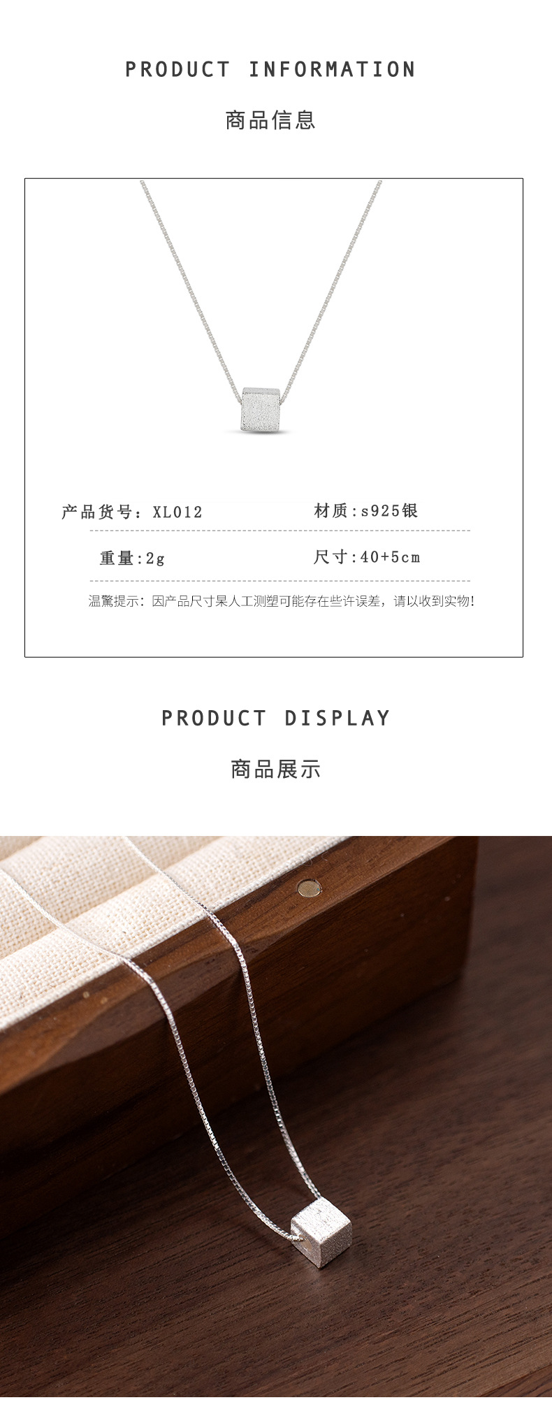 S925纯银拉丝小方块项链女简约百搭小众设计感新款锁骨链方糖吊坠