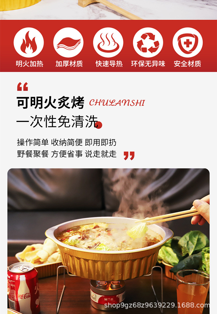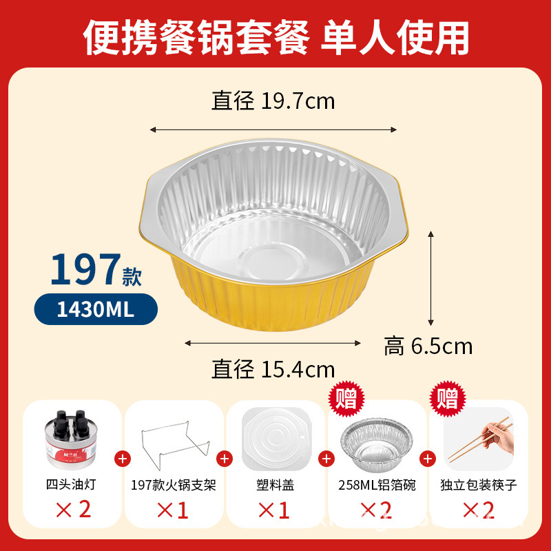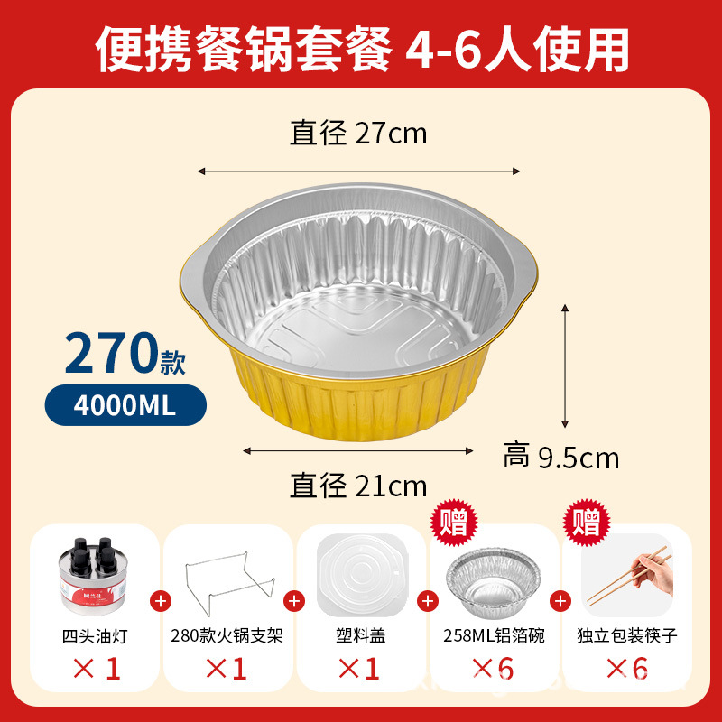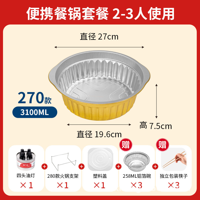 户外小火锅一次性锡纸锅套装可加热外卖打包盒学生宿舍露营铝箔盒