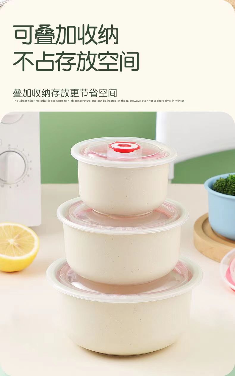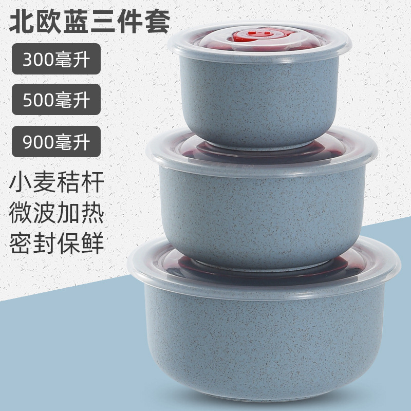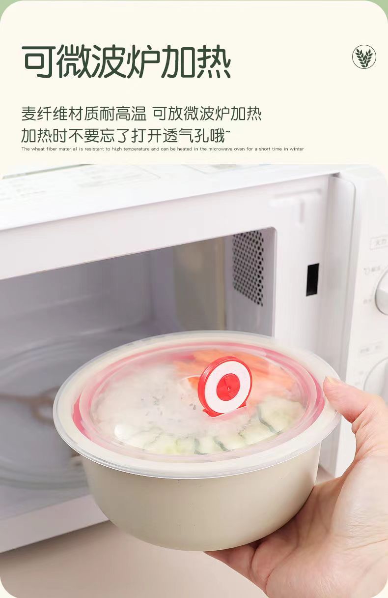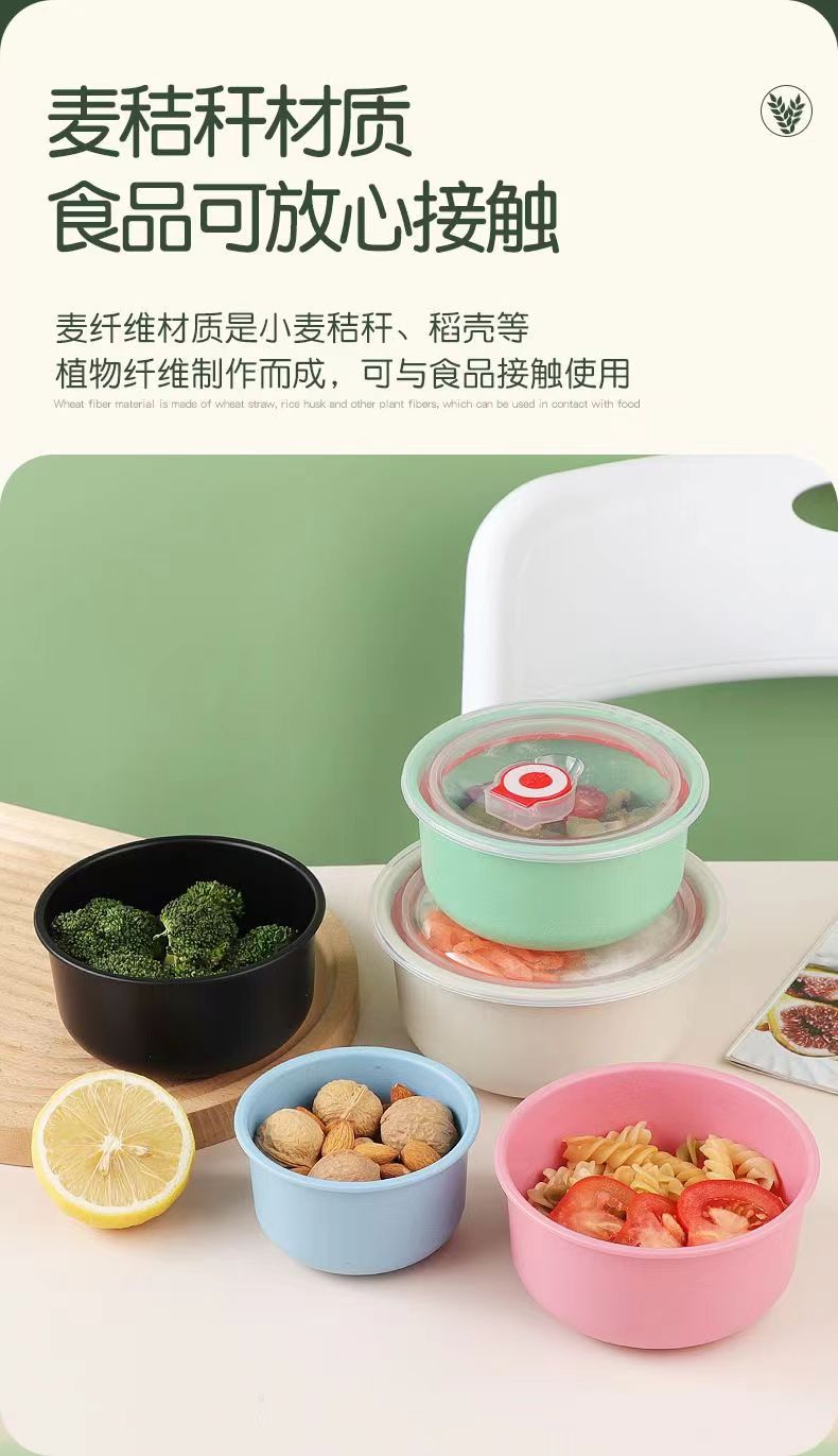 小麦秸秆保鲜碗套装家用冰箱微波炉加热便当盒水果便当收纳保鲜盒