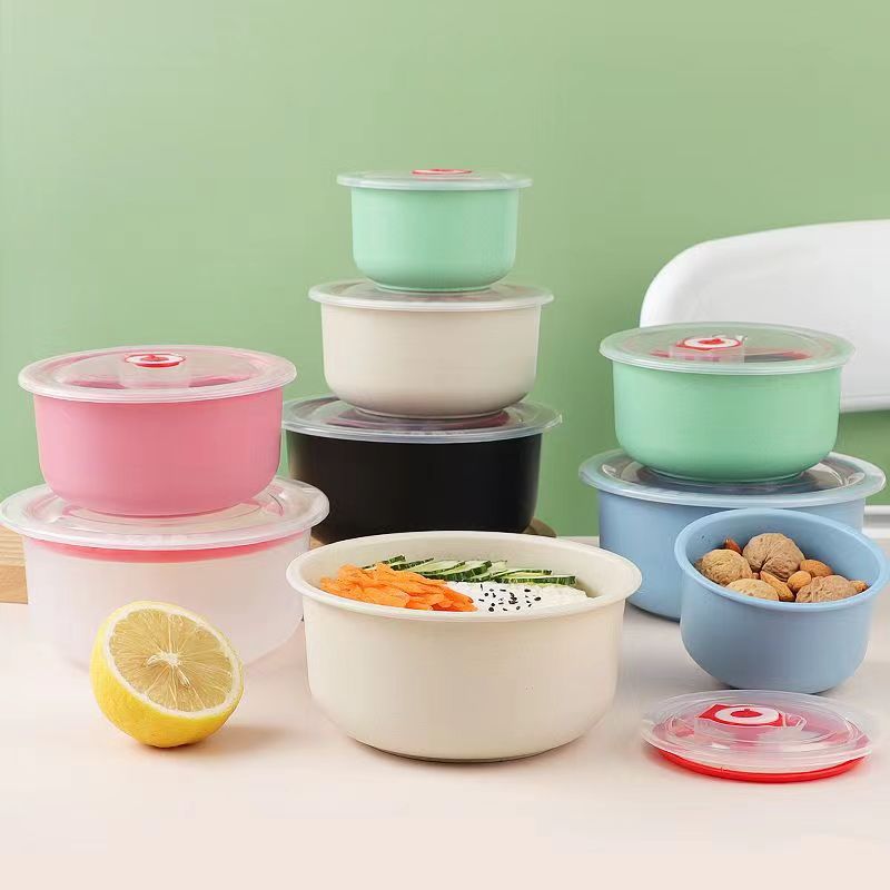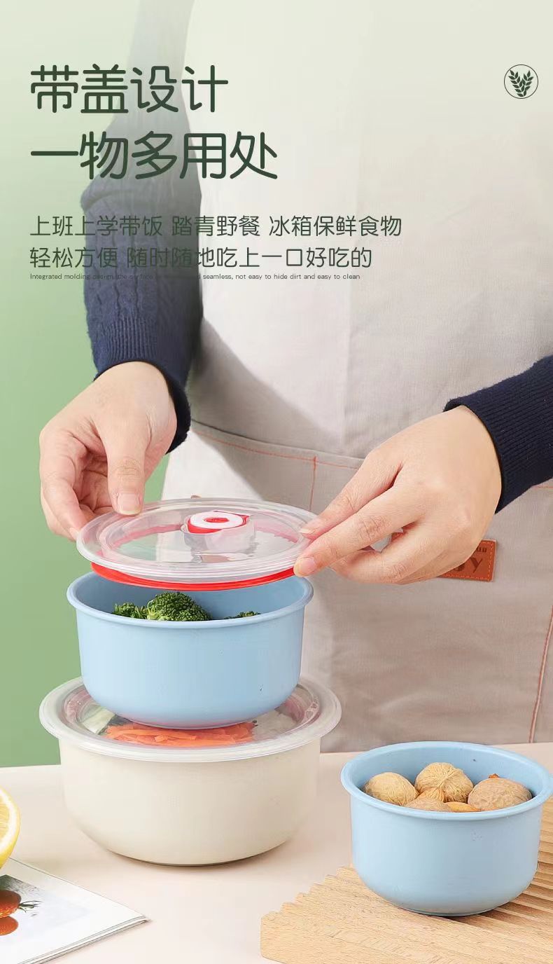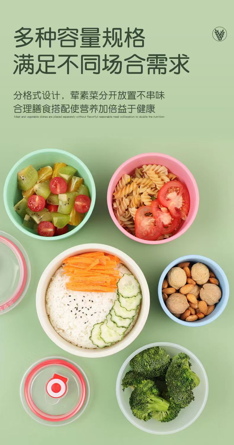 小麦秸秆保鲜碗套装家用冰箱微波炉加热便当盒水果便当收纳保鲜盒