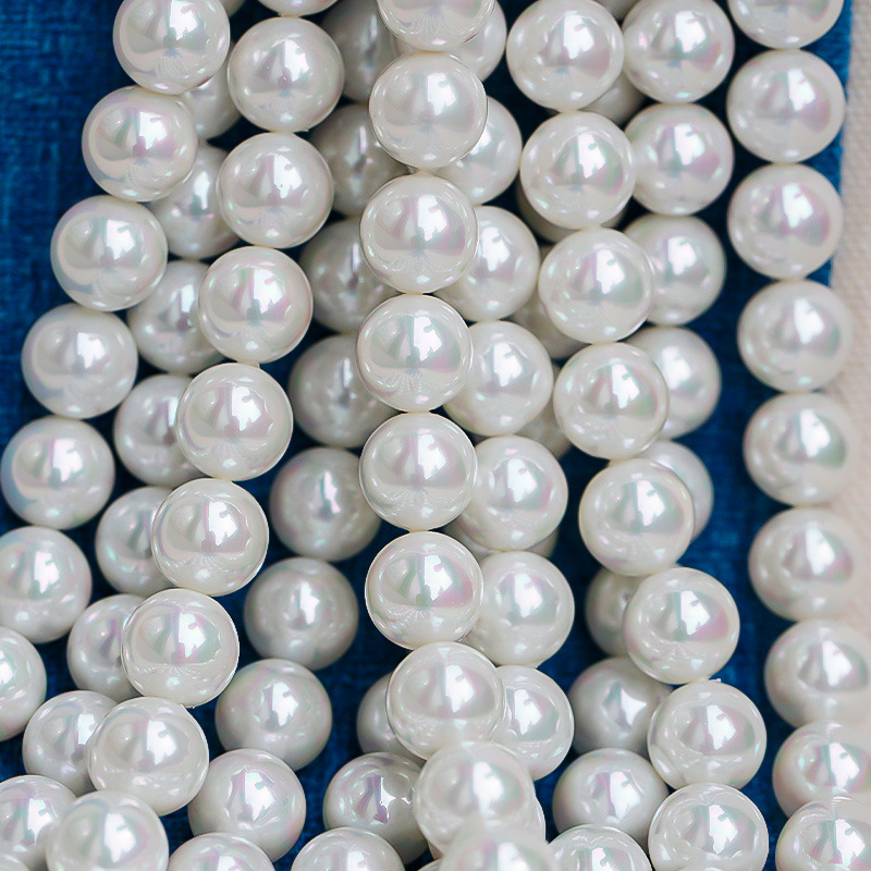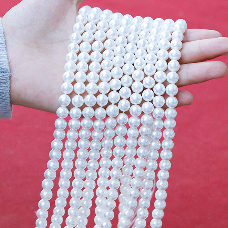批发贝珠2-12mm直孔高亮贝壳玻璃珍珠穿孔diy饰品配件散珠串珠材