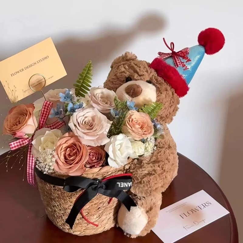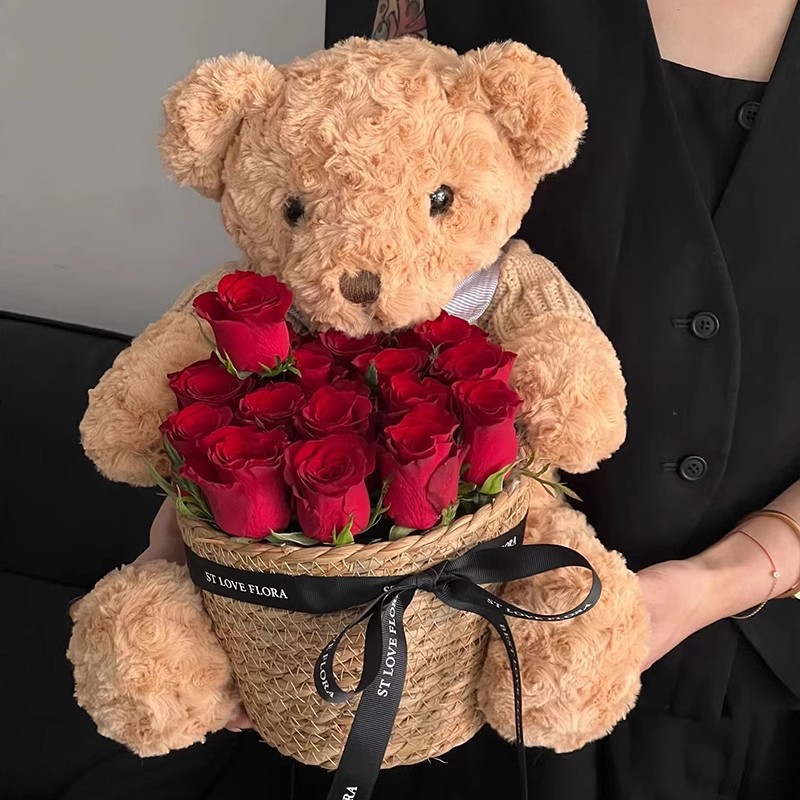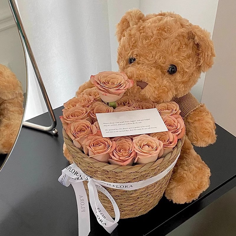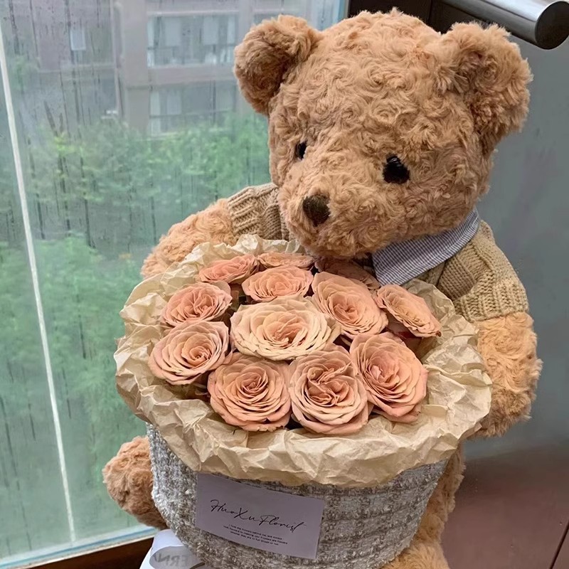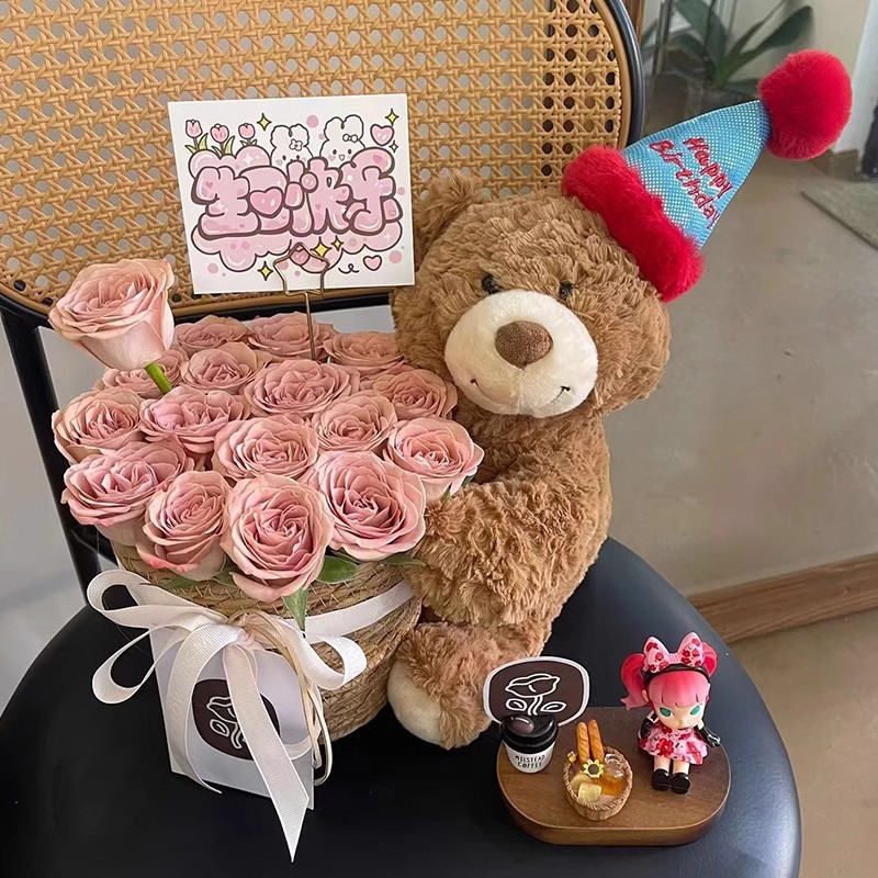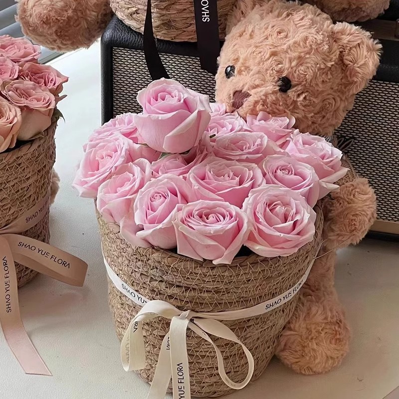小熊玩偶花束永生花抱抱桶女生生日礼物送女友闺蜜七夕情人节礼物