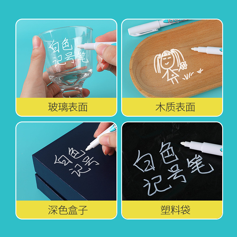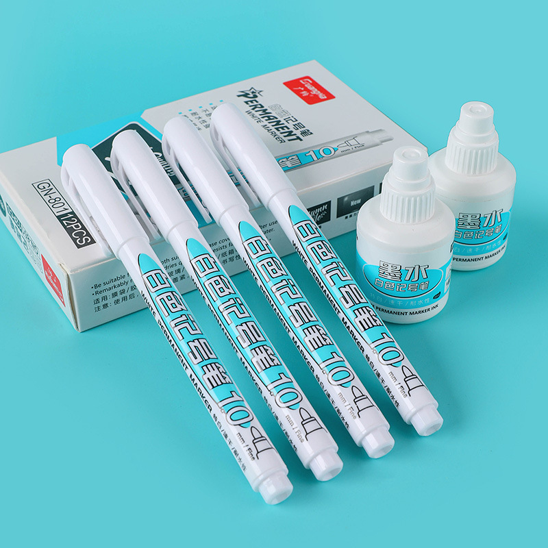 白色记号笔小头水性油漆笔防水工业标记笔速干轮胎绘画补漆笔盒装