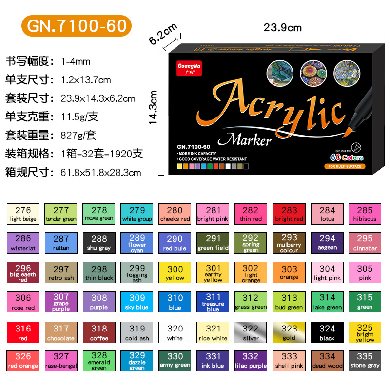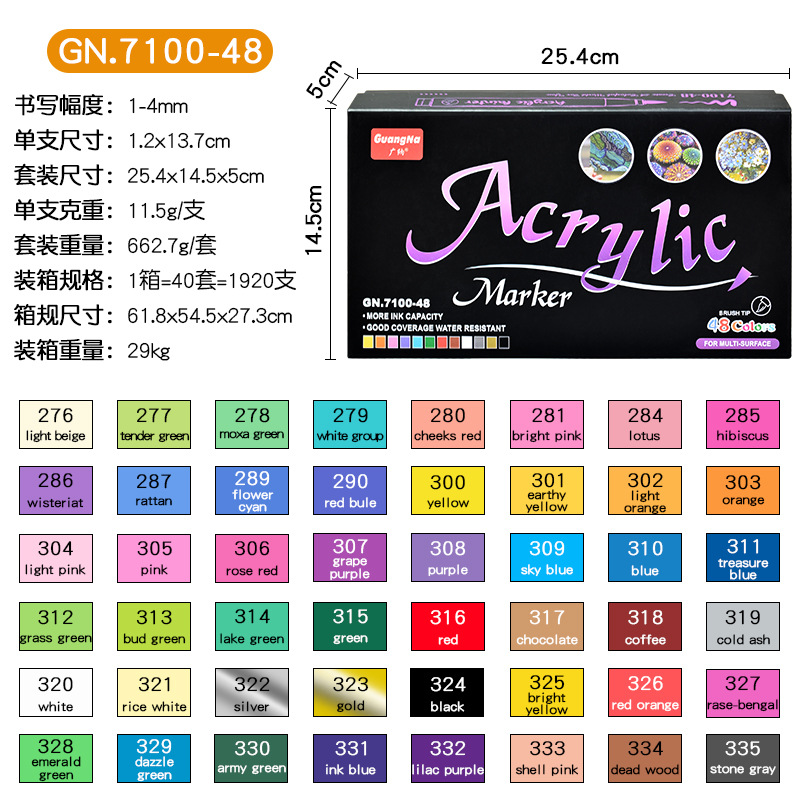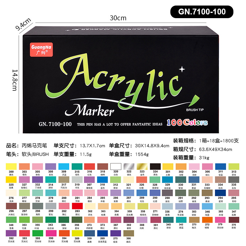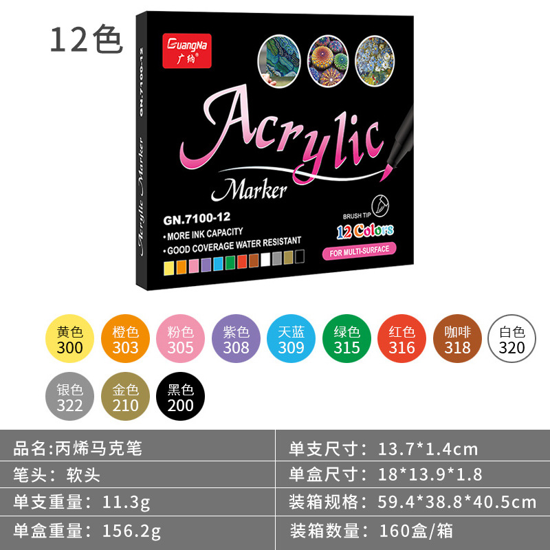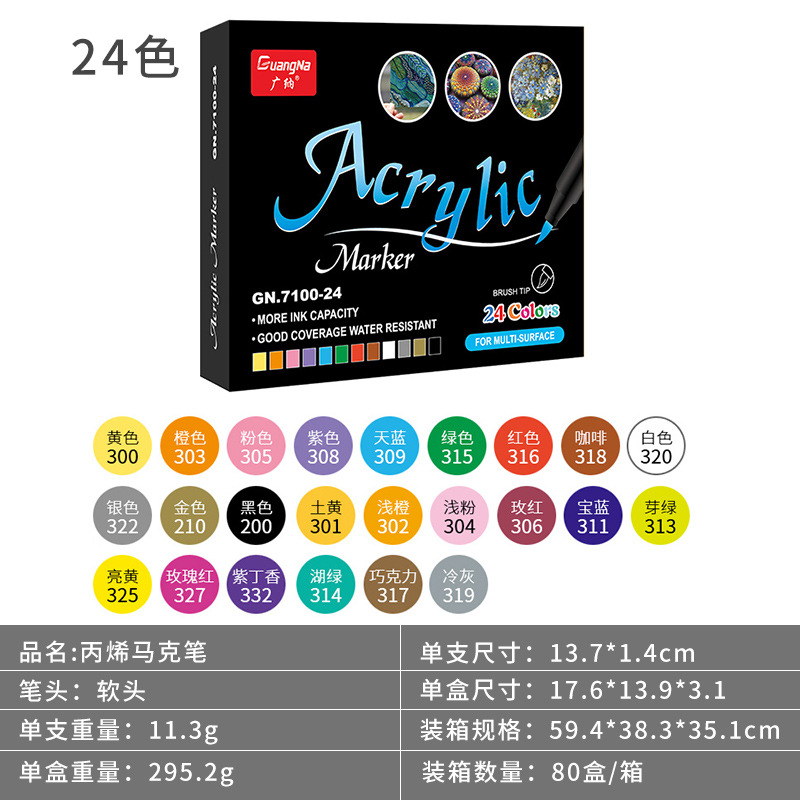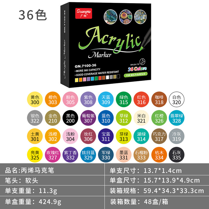 广纳7100软头丙烯水性马克笔彩色手绘石头绘画涂鸦笔儿童36色套装