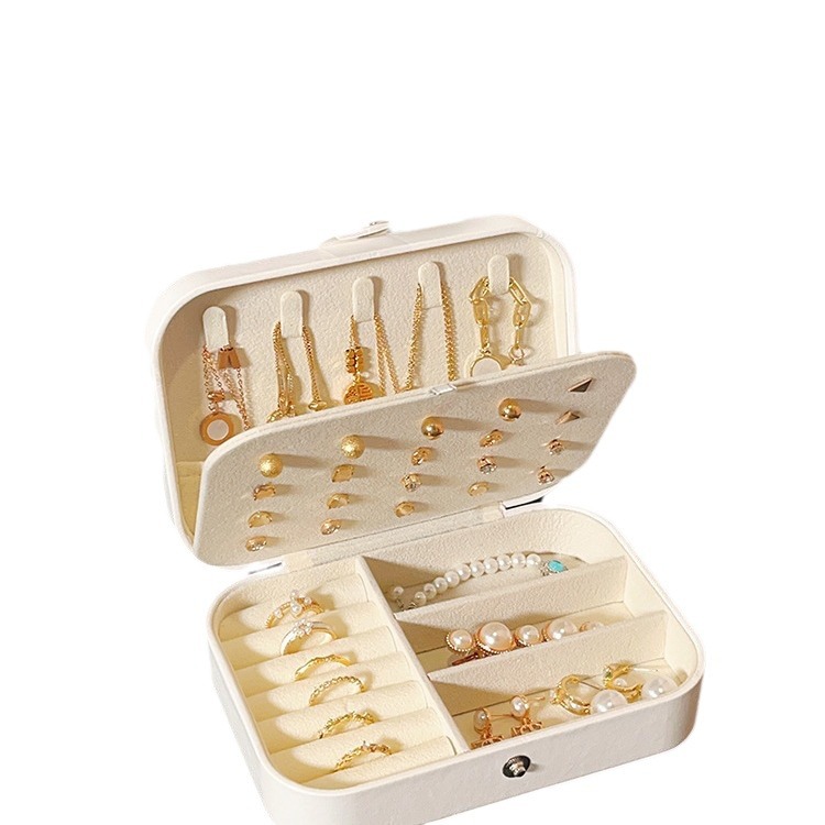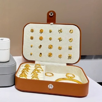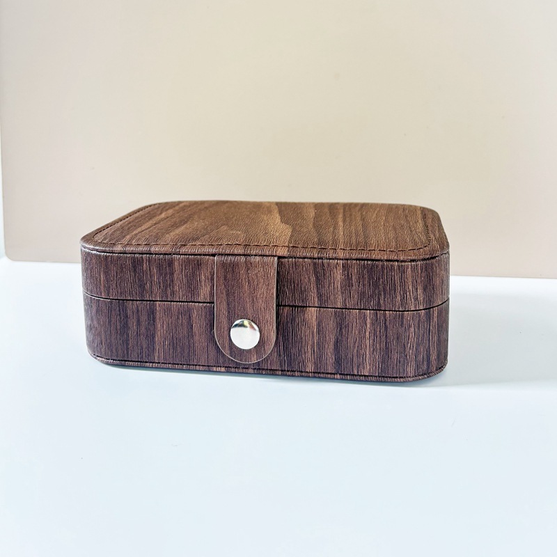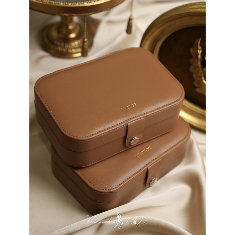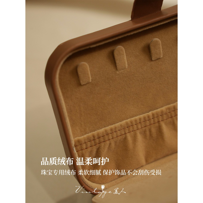 新款便携首饰盒大容量复古棕色高级感珠宝盒双层戒指项链收纳盒