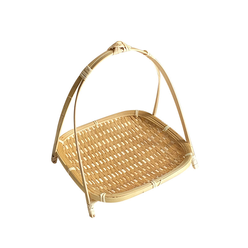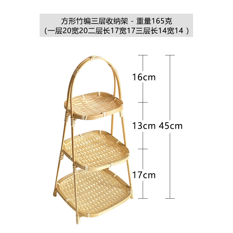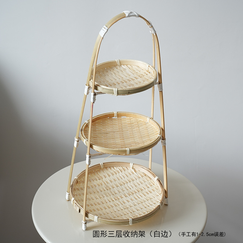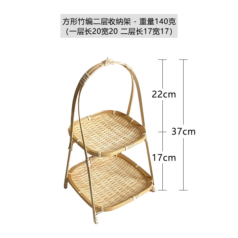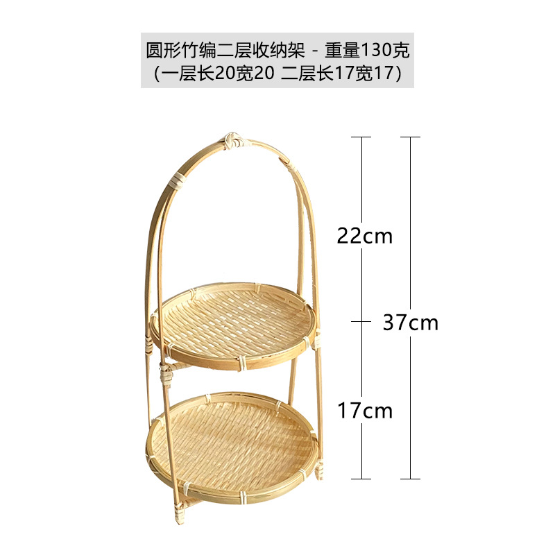 竹编小提篮圆形方形茶点水果蛋糕干果零食点心多层竹收纳篮竹制品