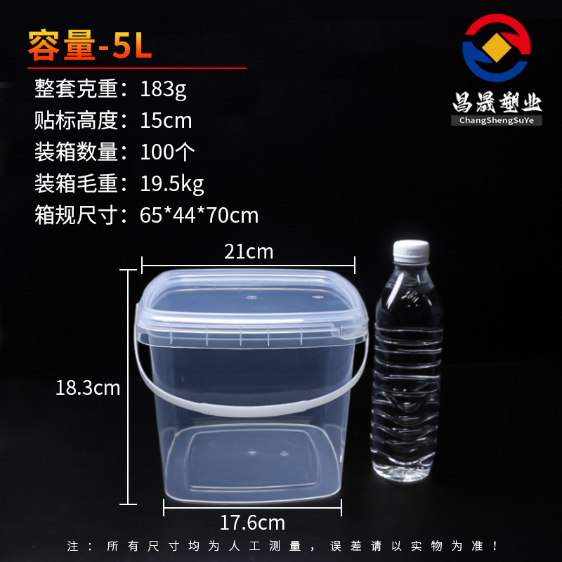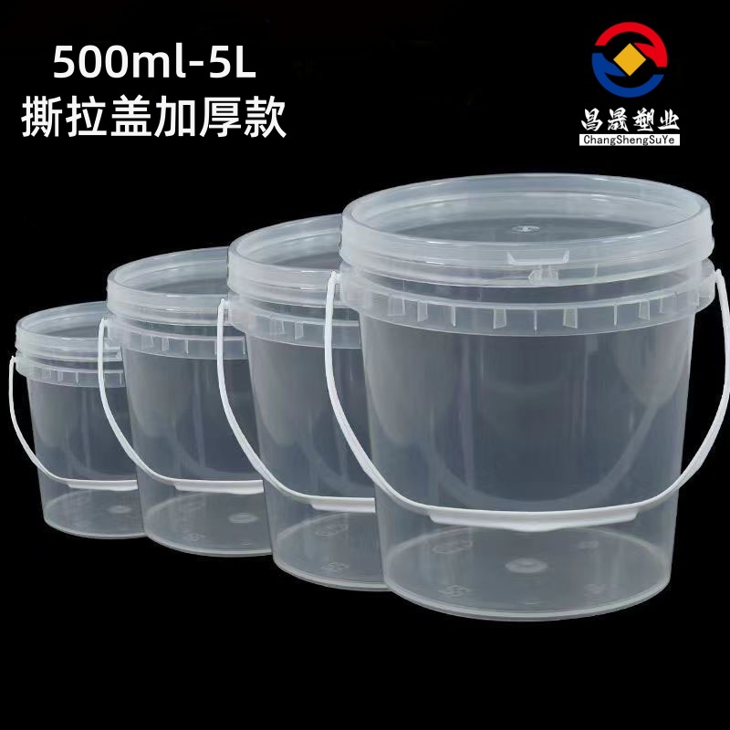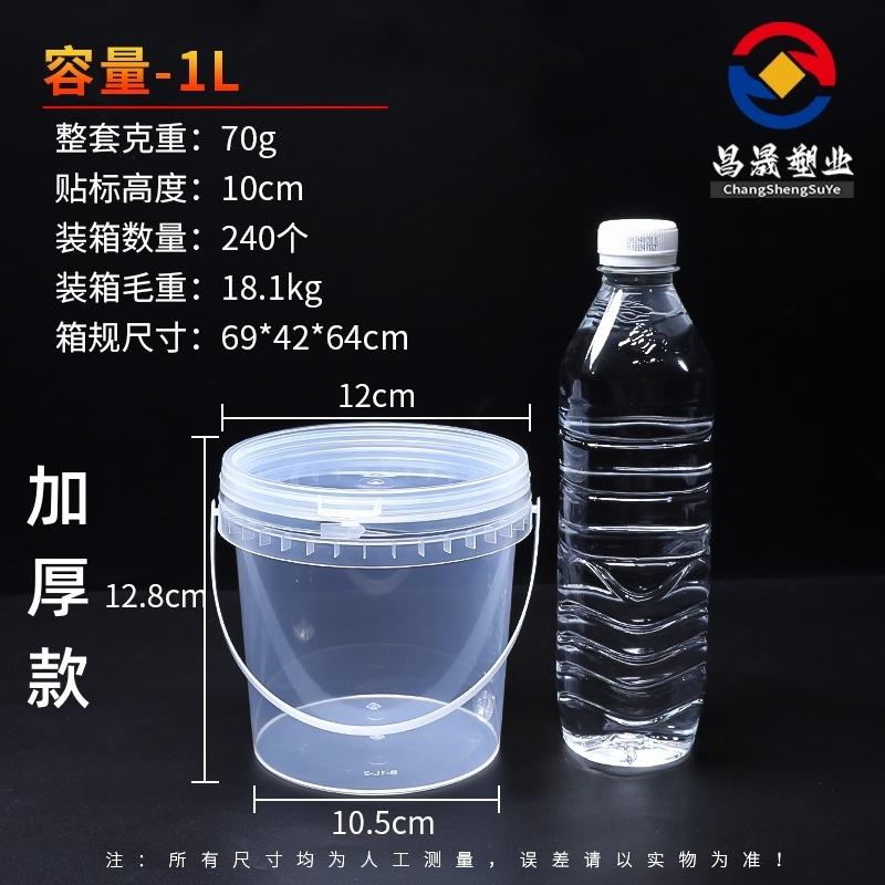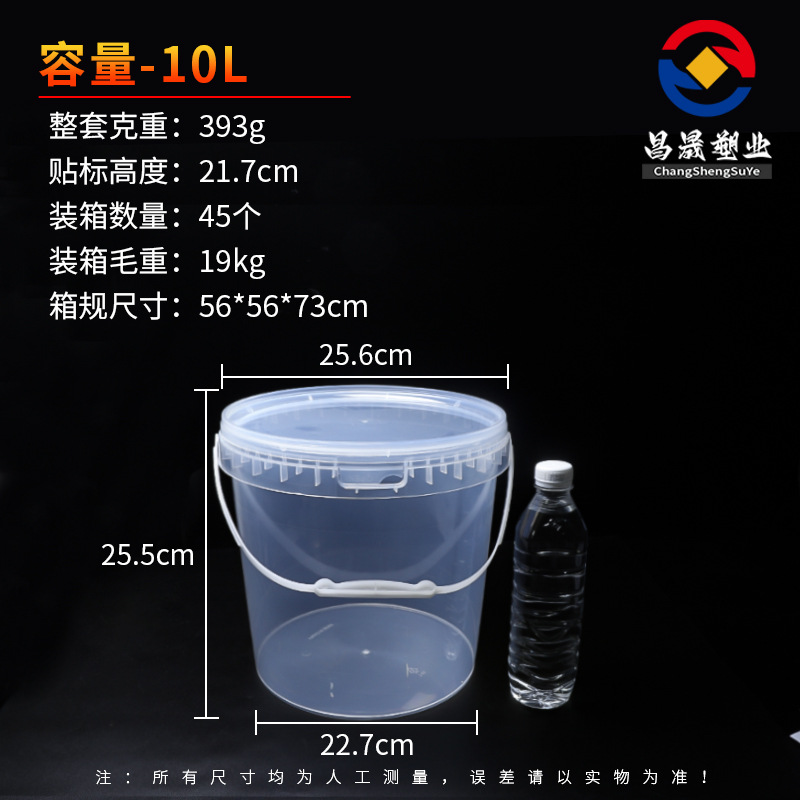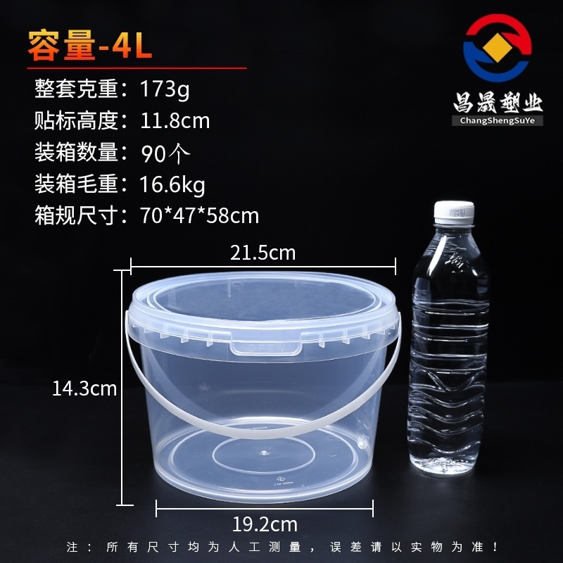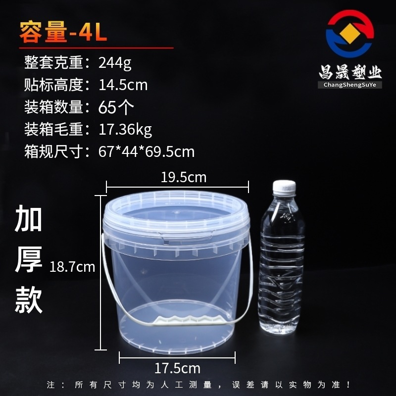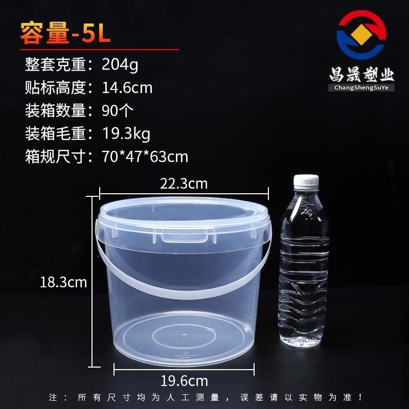 食品级塑料桶加厚加盖透明圆桶水果奶茶密封桶收纳桶方桶小水桶5l