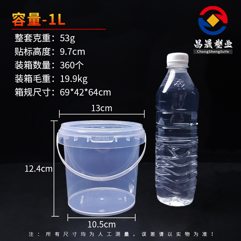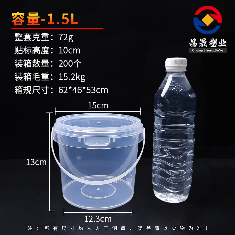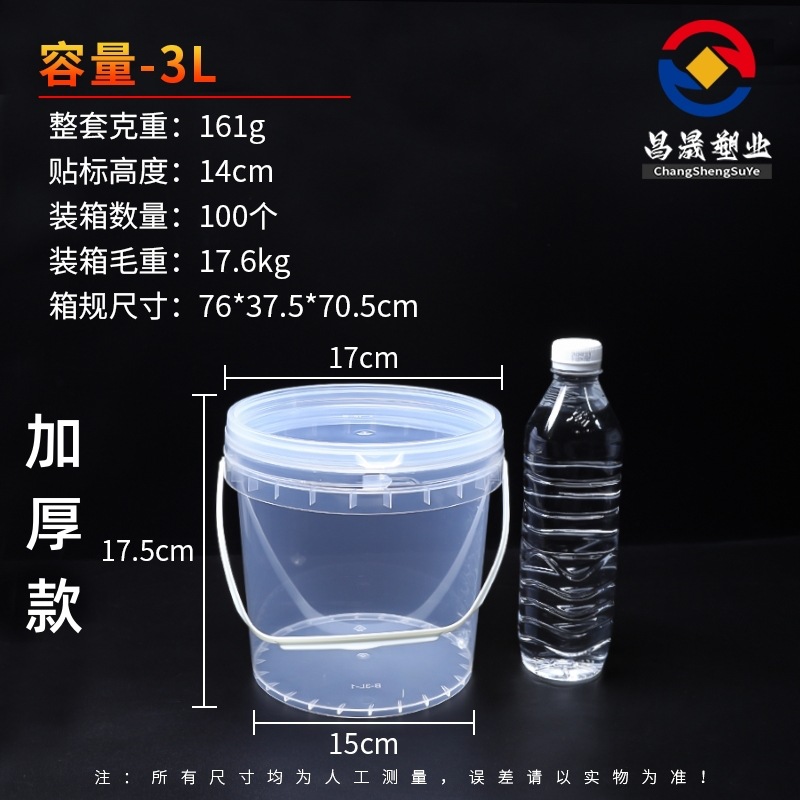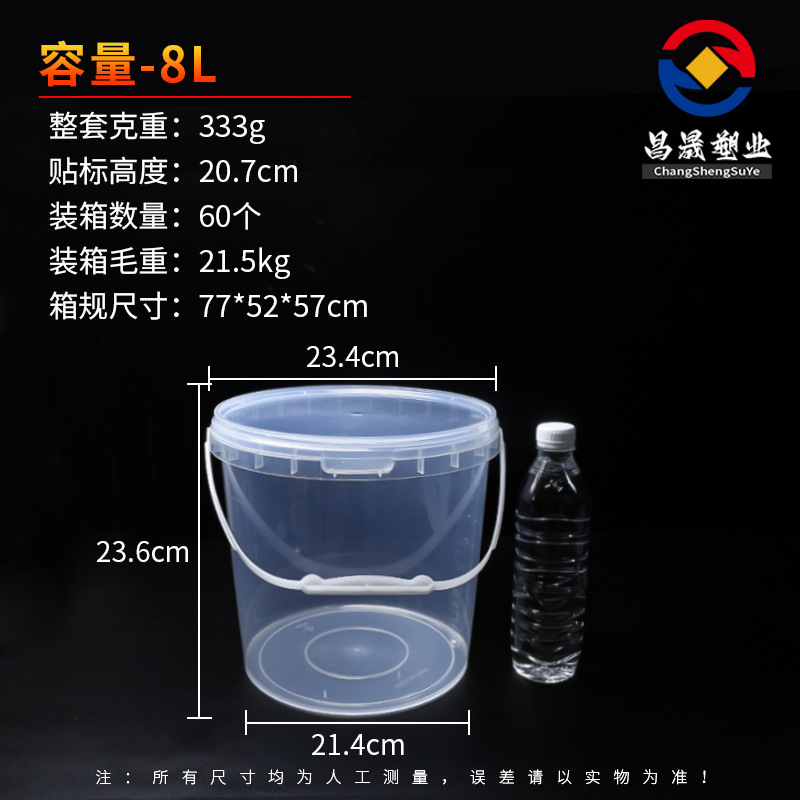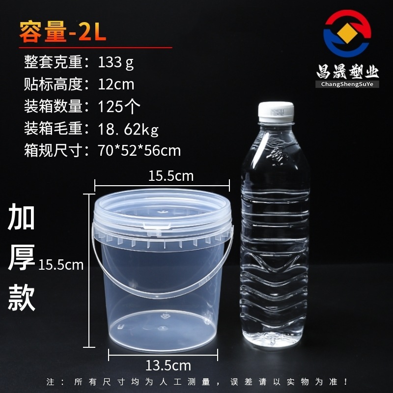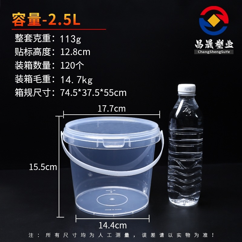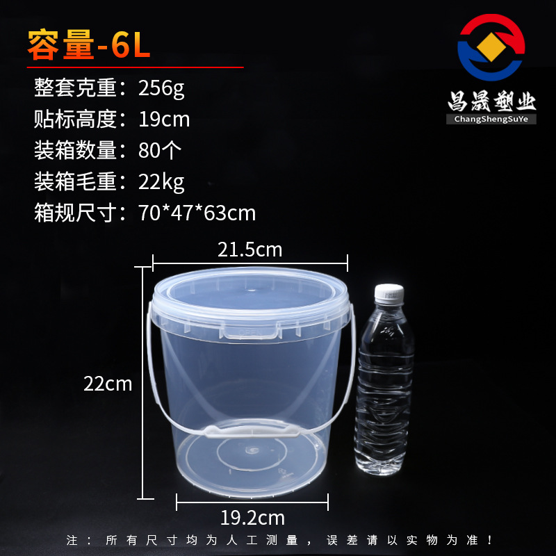 食品级塑料桶加厚加盖透明圆桶水果奶茶密封桶收纳桶方桶小水桶5l