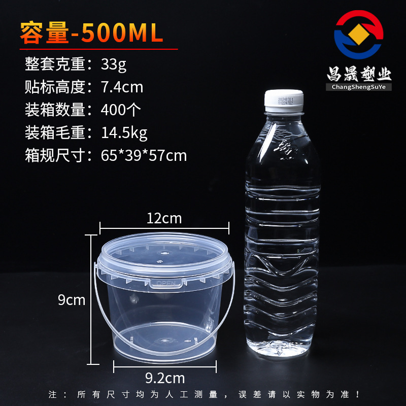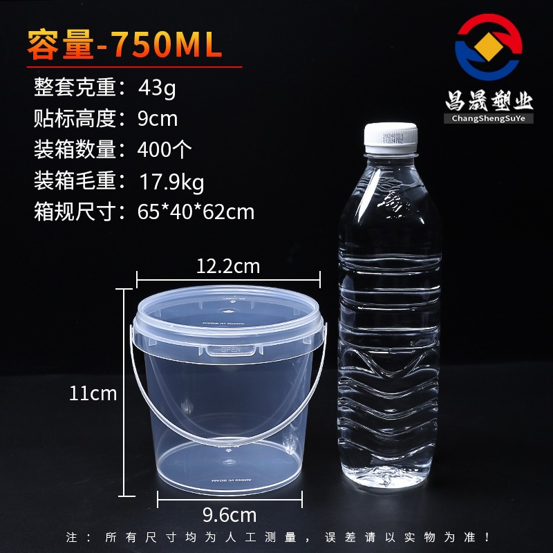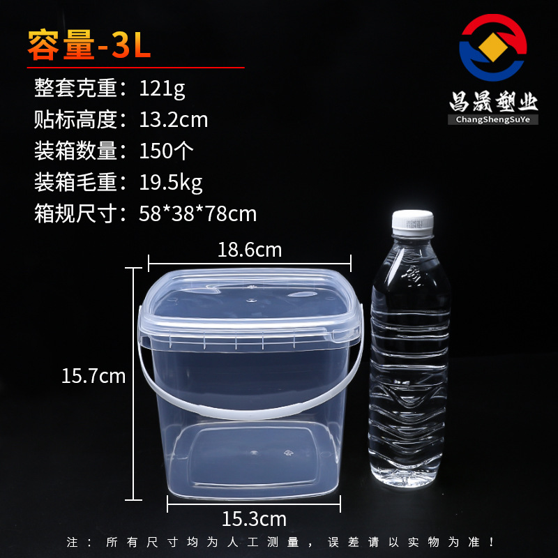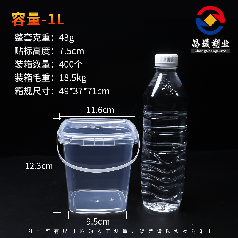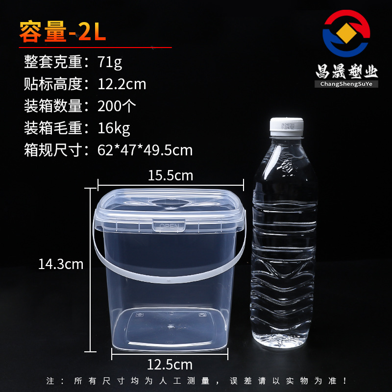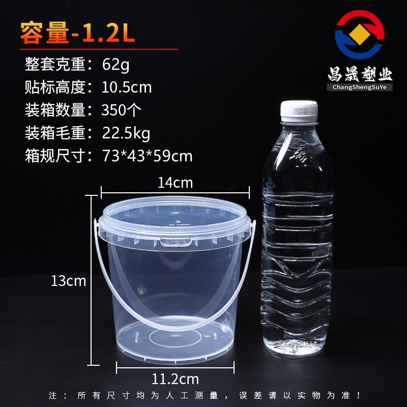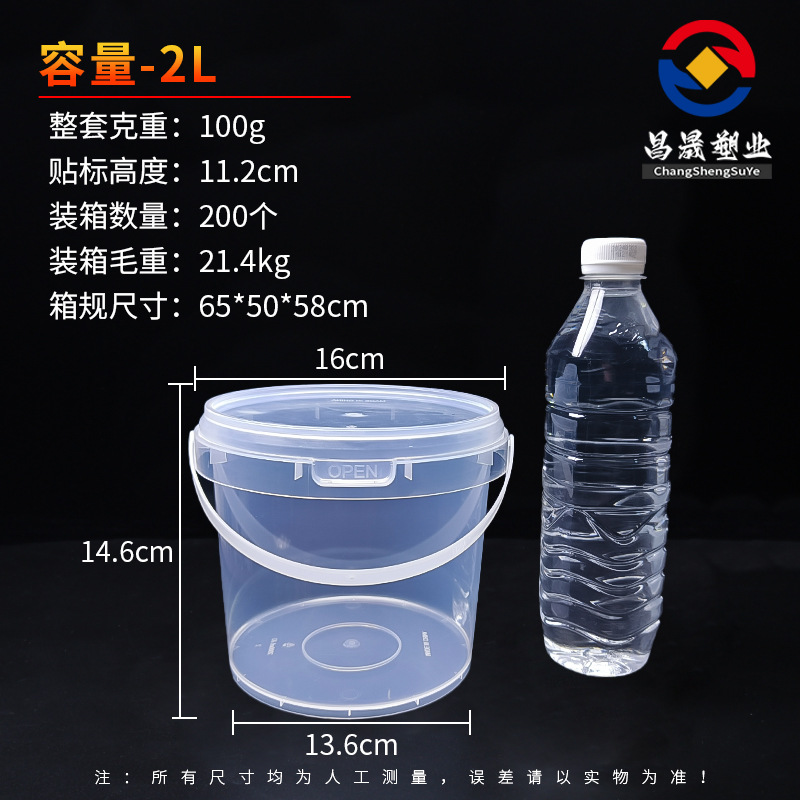 食品级塑料桶加厚加盖透明圆桶水果奶茶密封桶收纳桶方桶小水桶5l