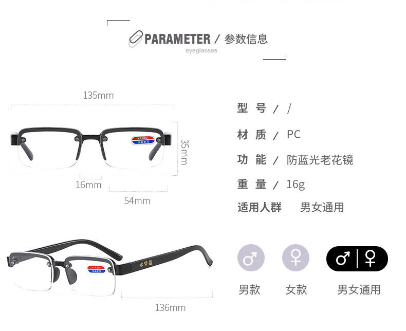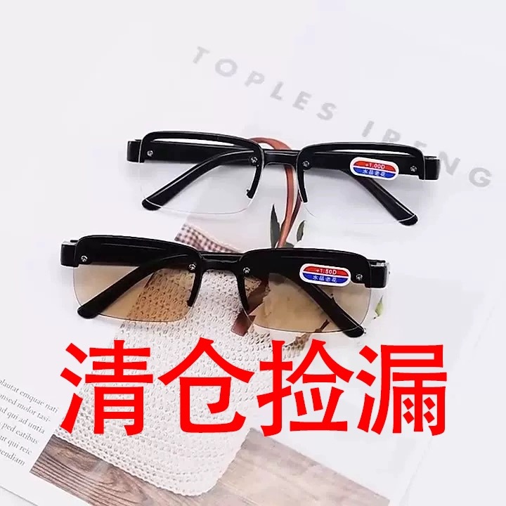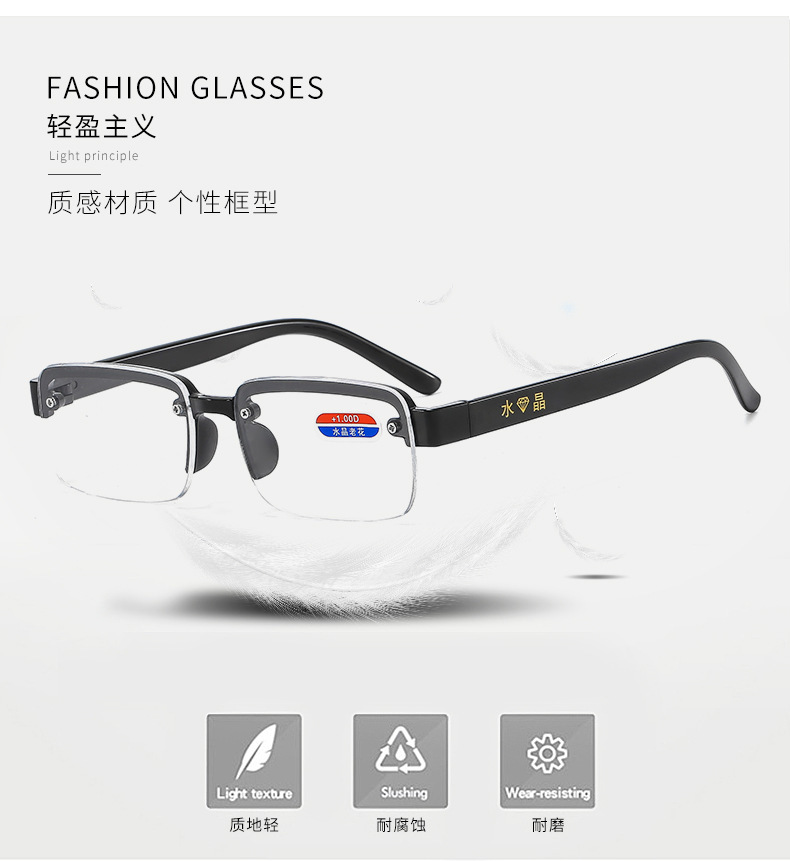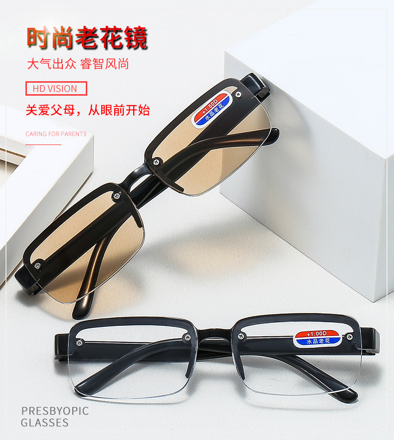男女防蓝光辐射老光镜仿水晶老花镜透明中老年人高清眼镜
