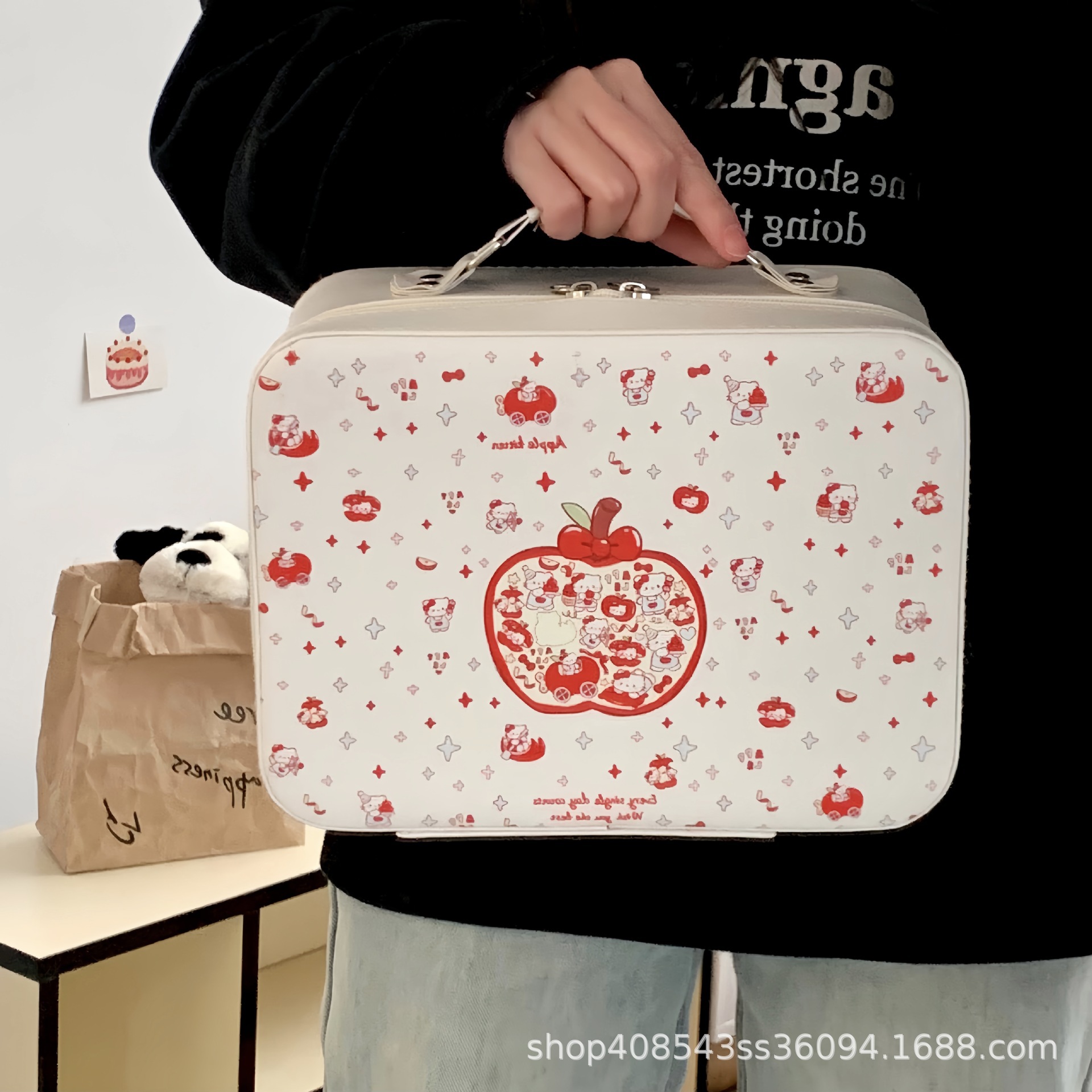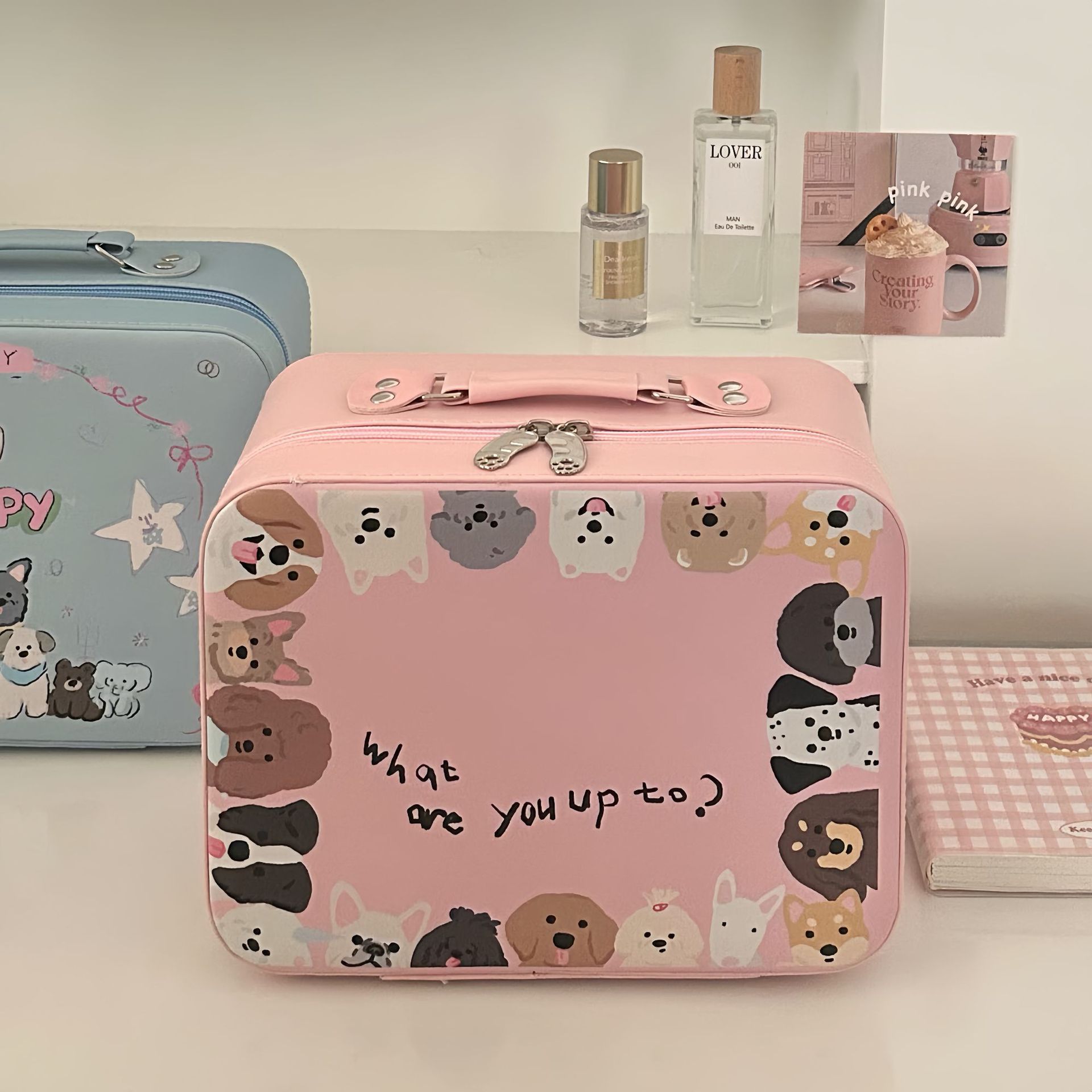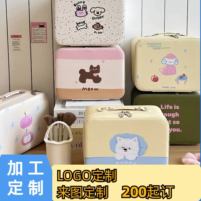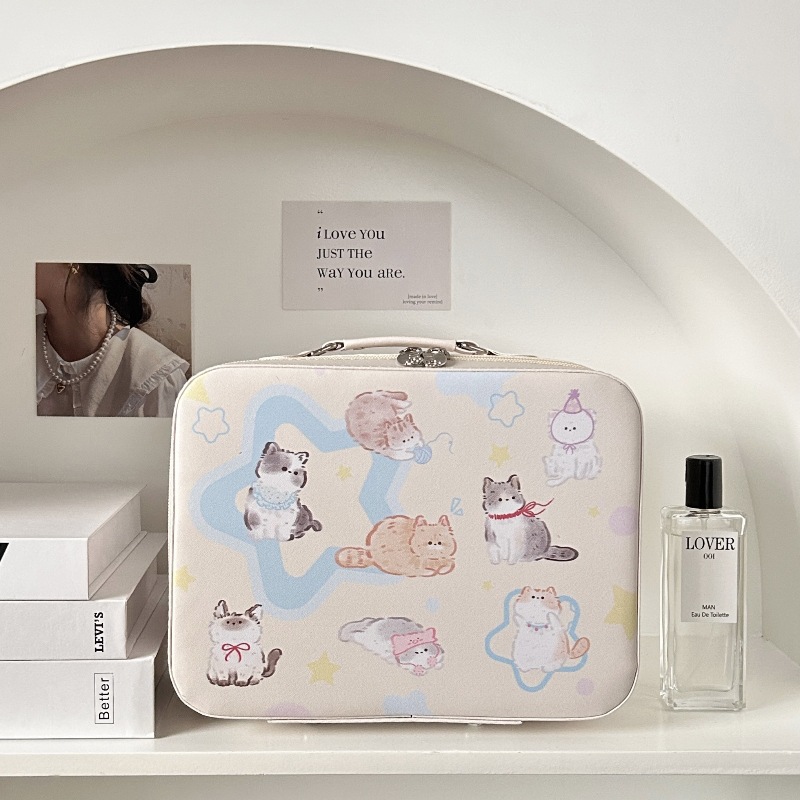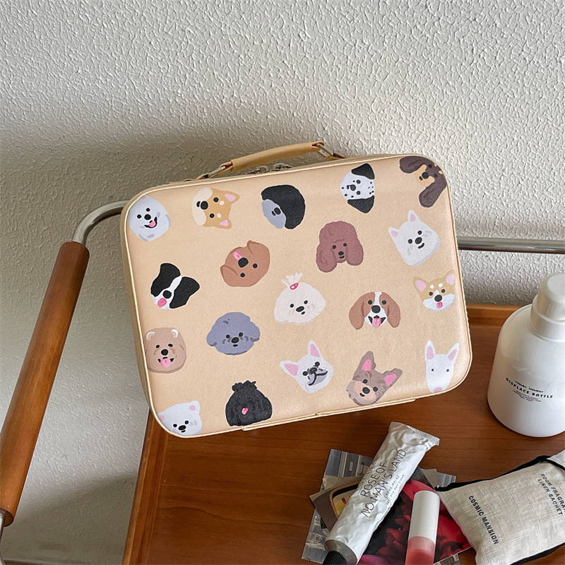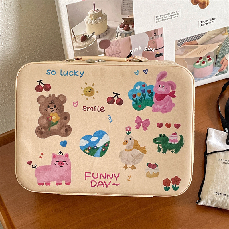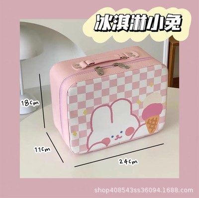 原创!可爱印花化妆箱高颜值大容量护肤品收纳手提箱带镜子化妆包
