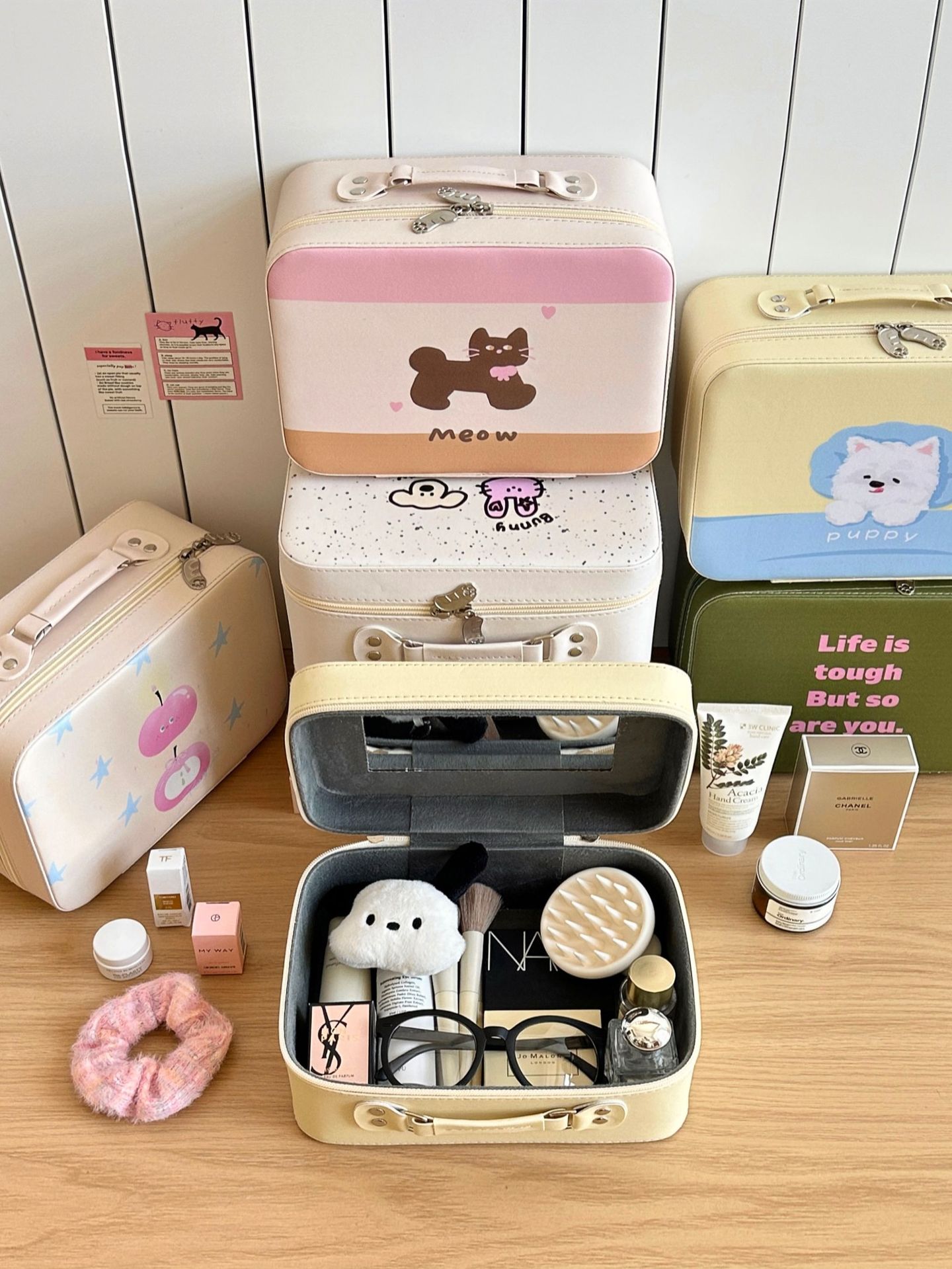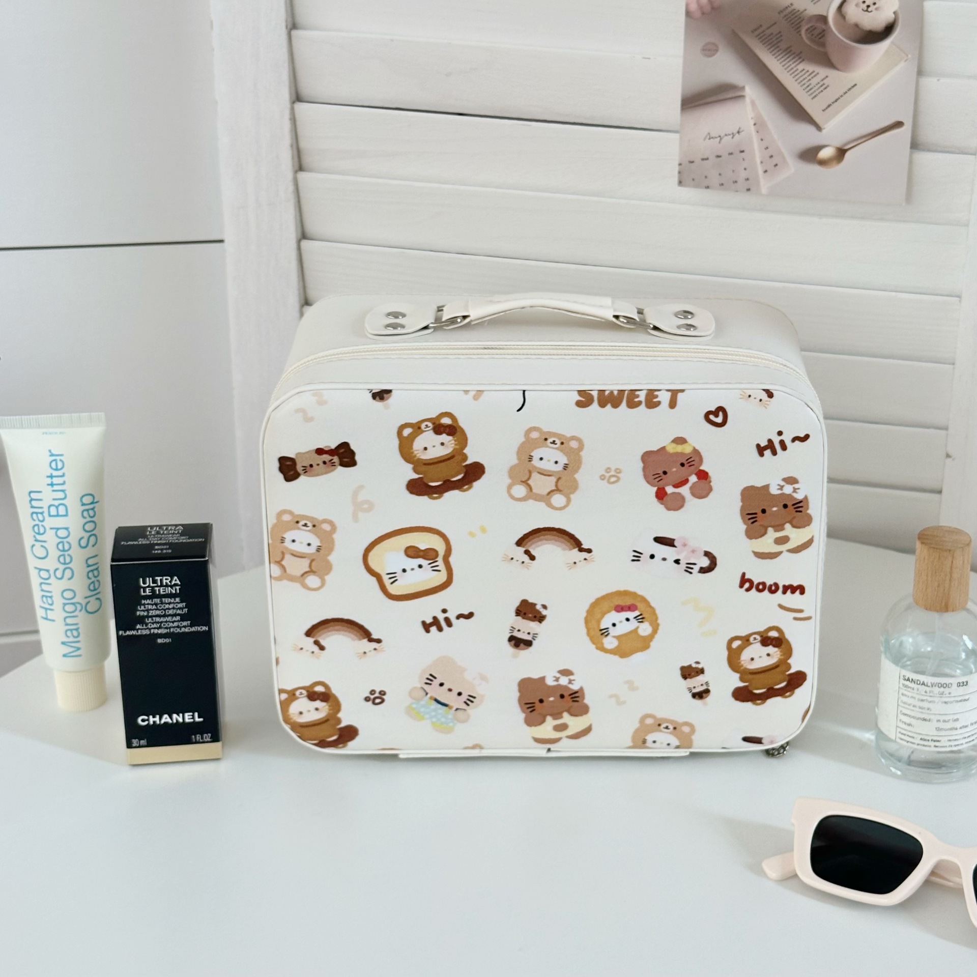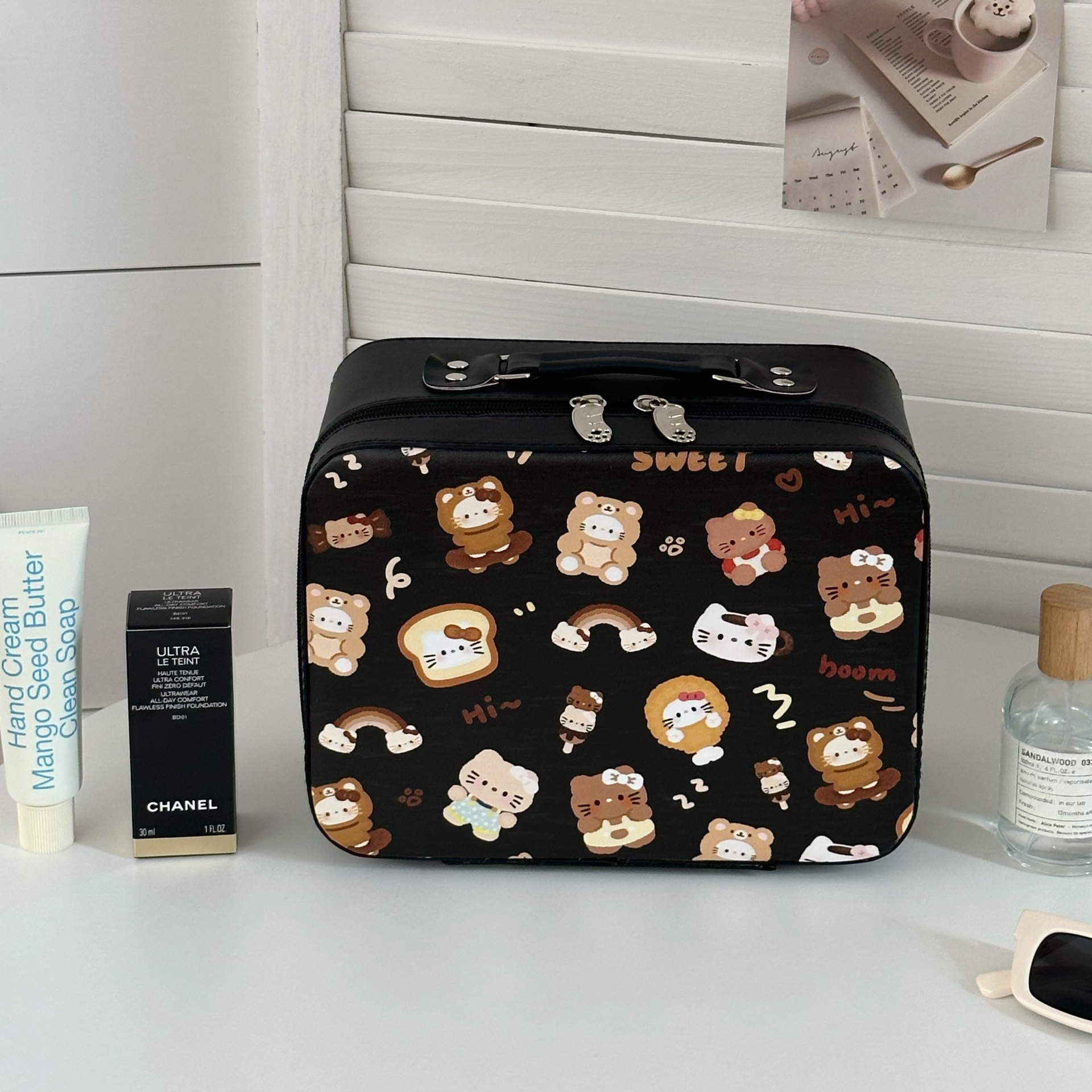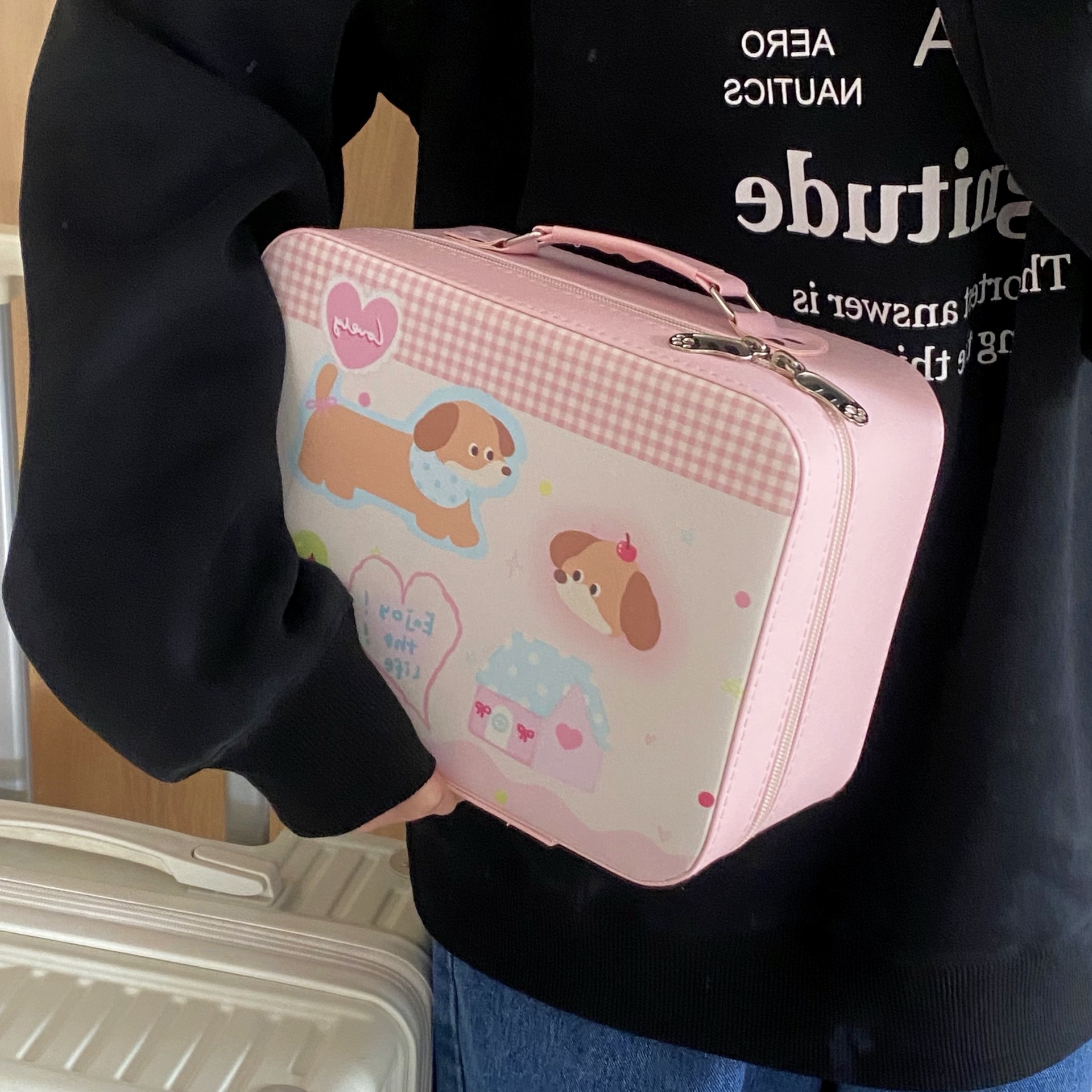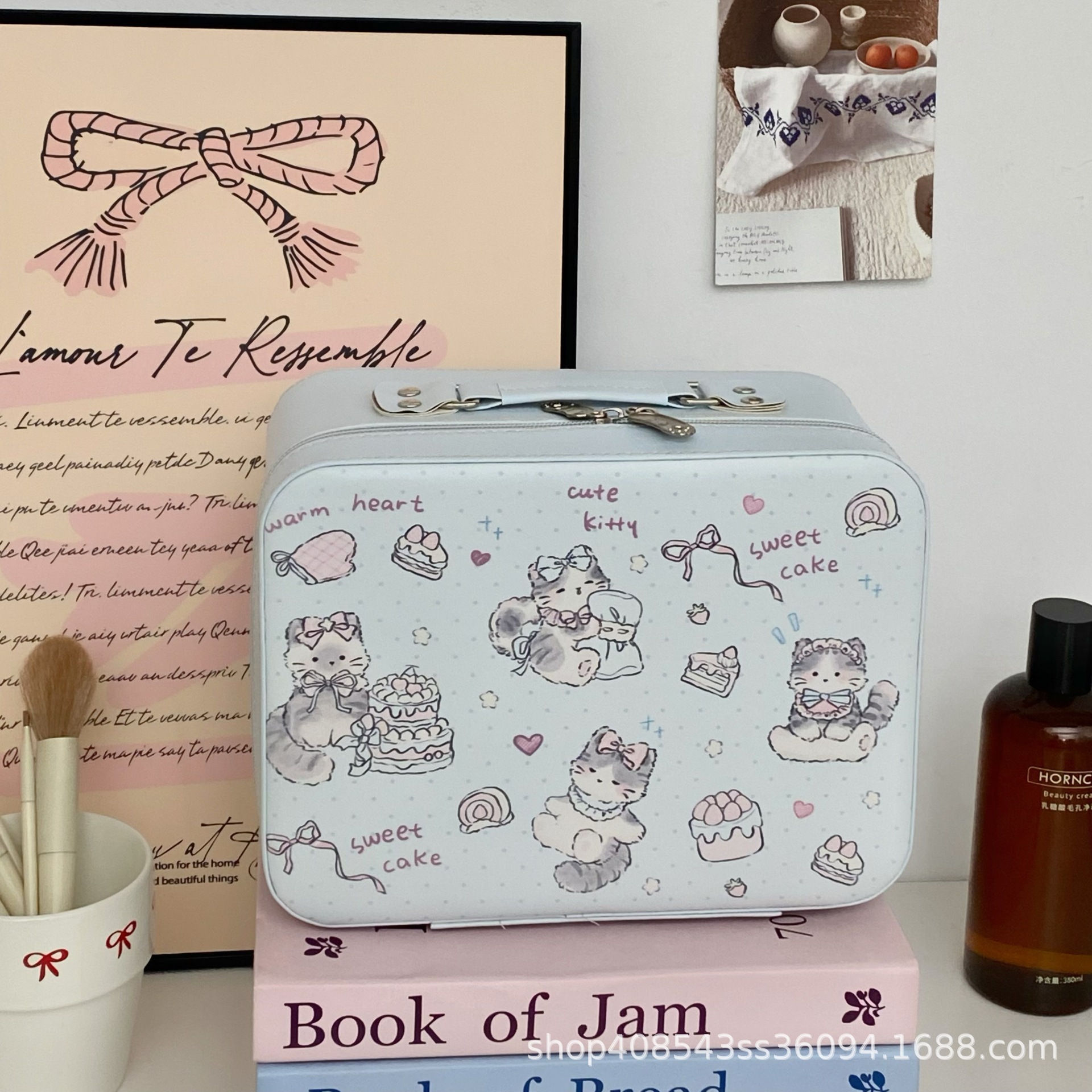 原创!可爱印花化妆箱高颜值大容量护肤品收纳手提箱带镜子化妆包