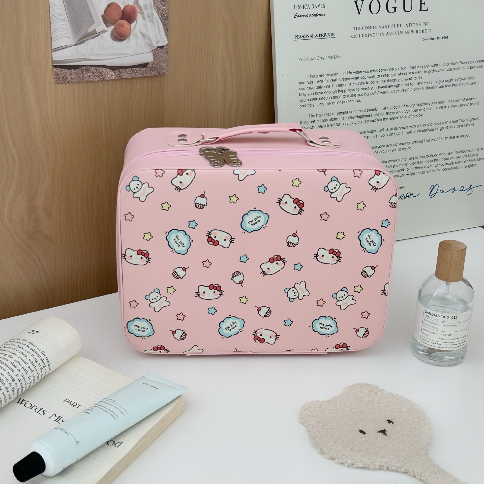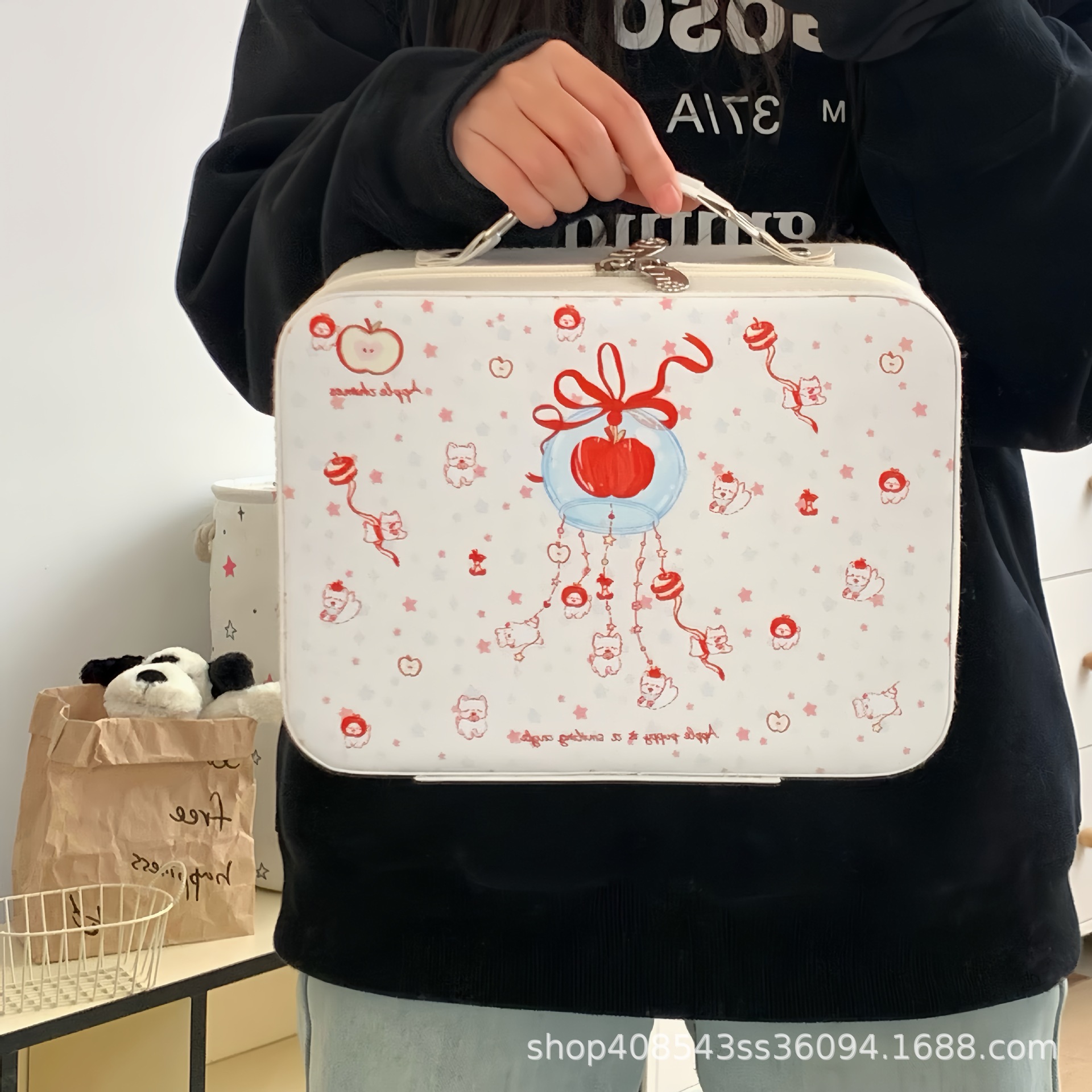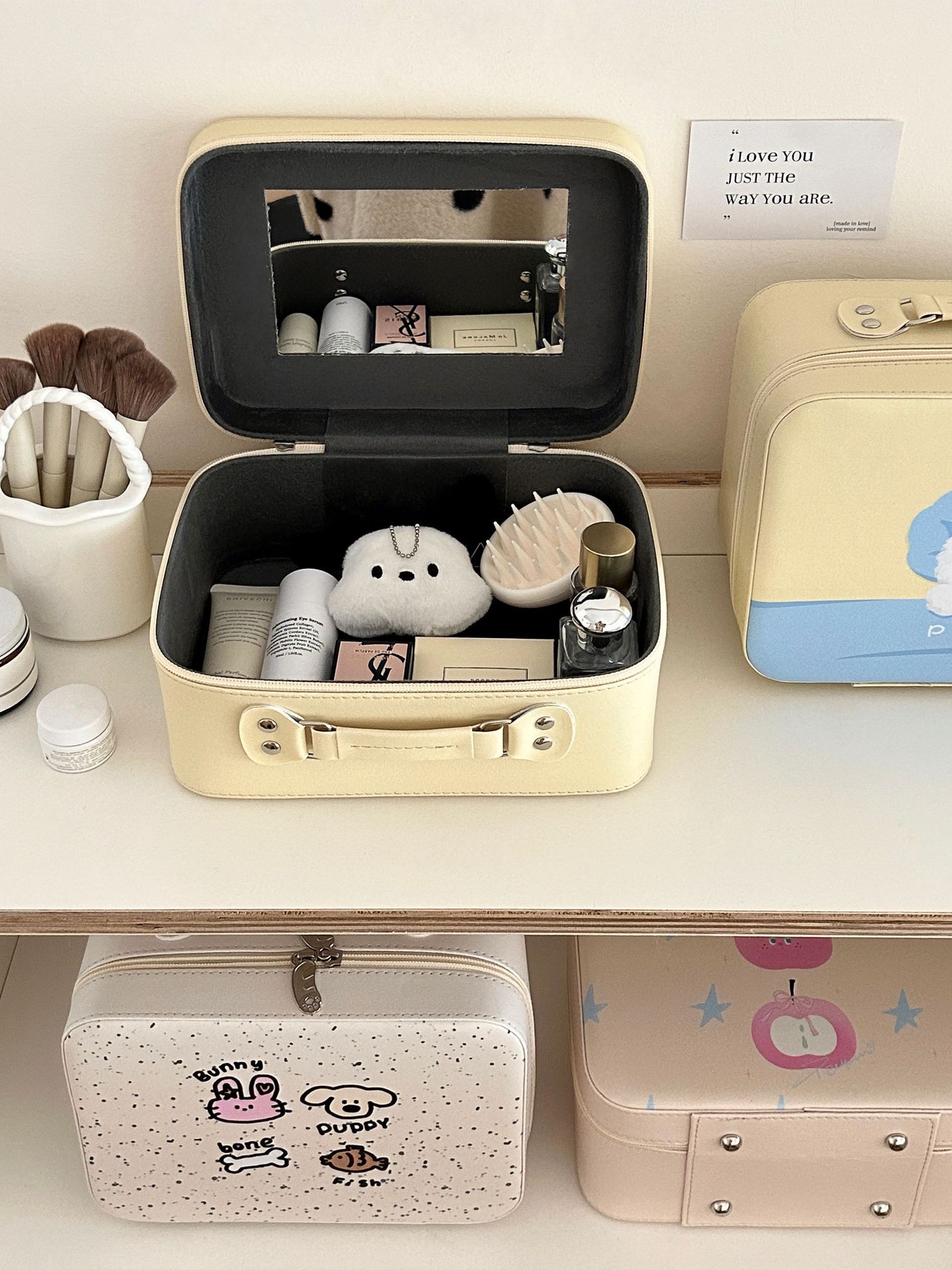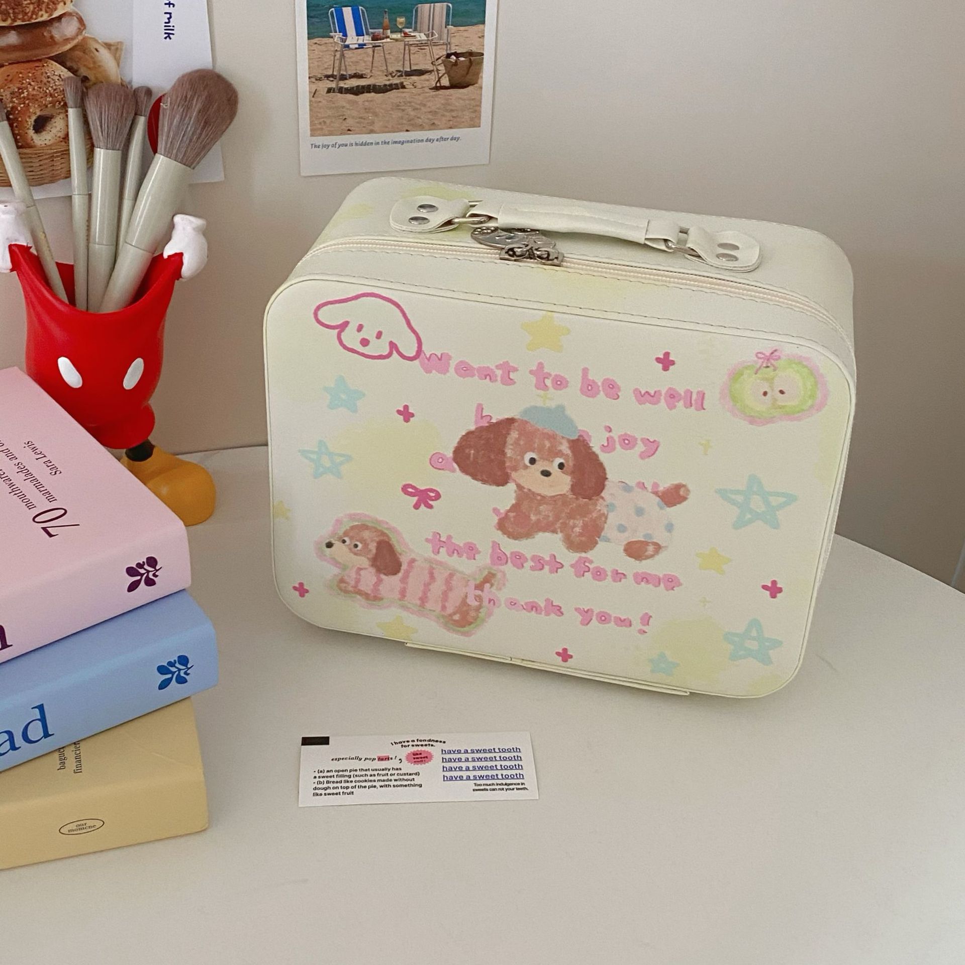 原创!可爱印花化妆箱高颜值大容量护肤品收纳手提箱带镜子化妆包