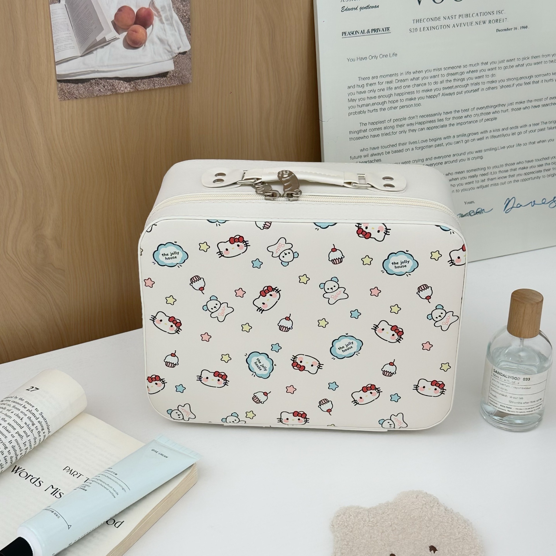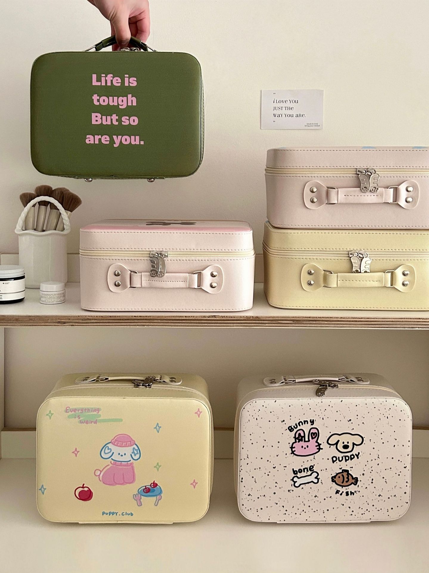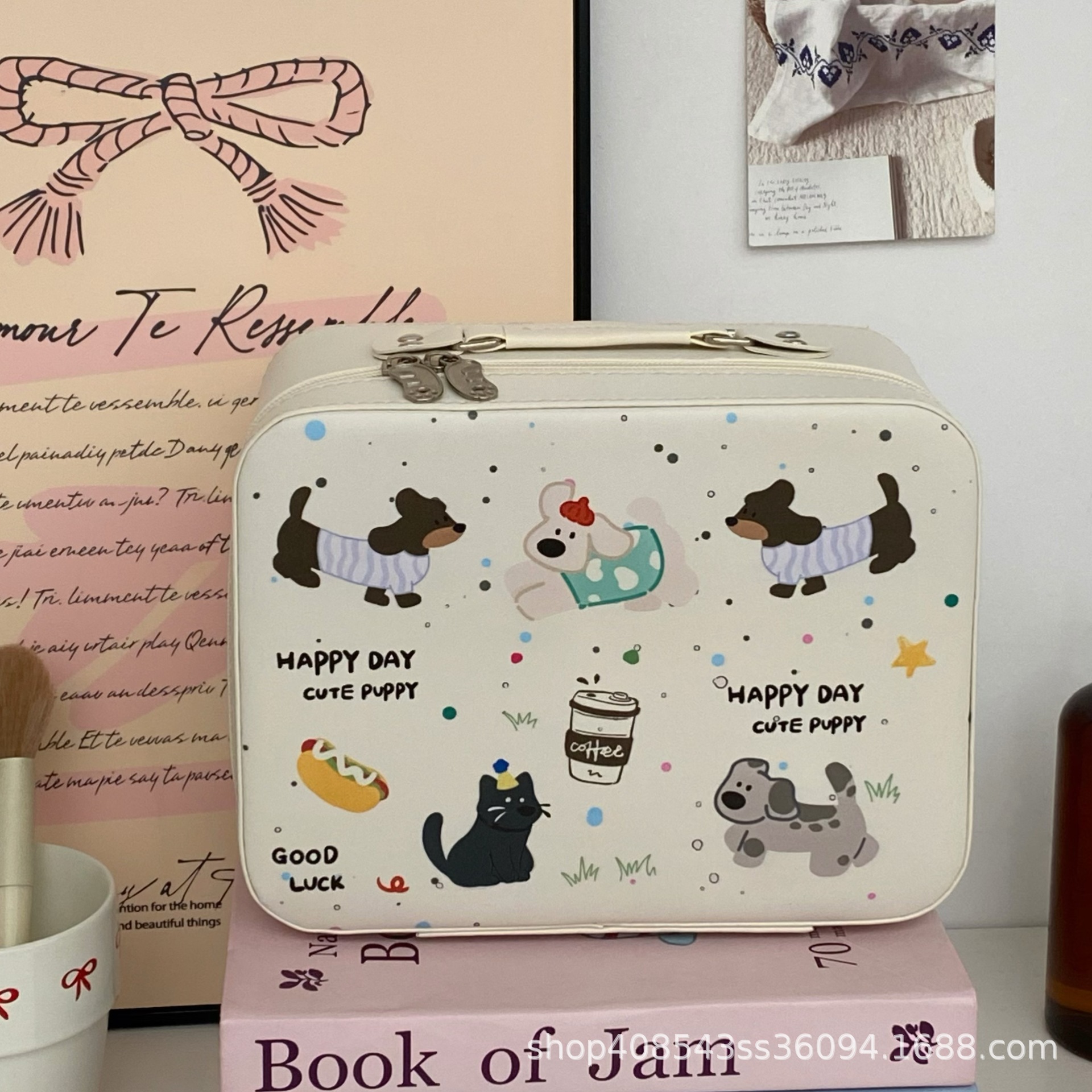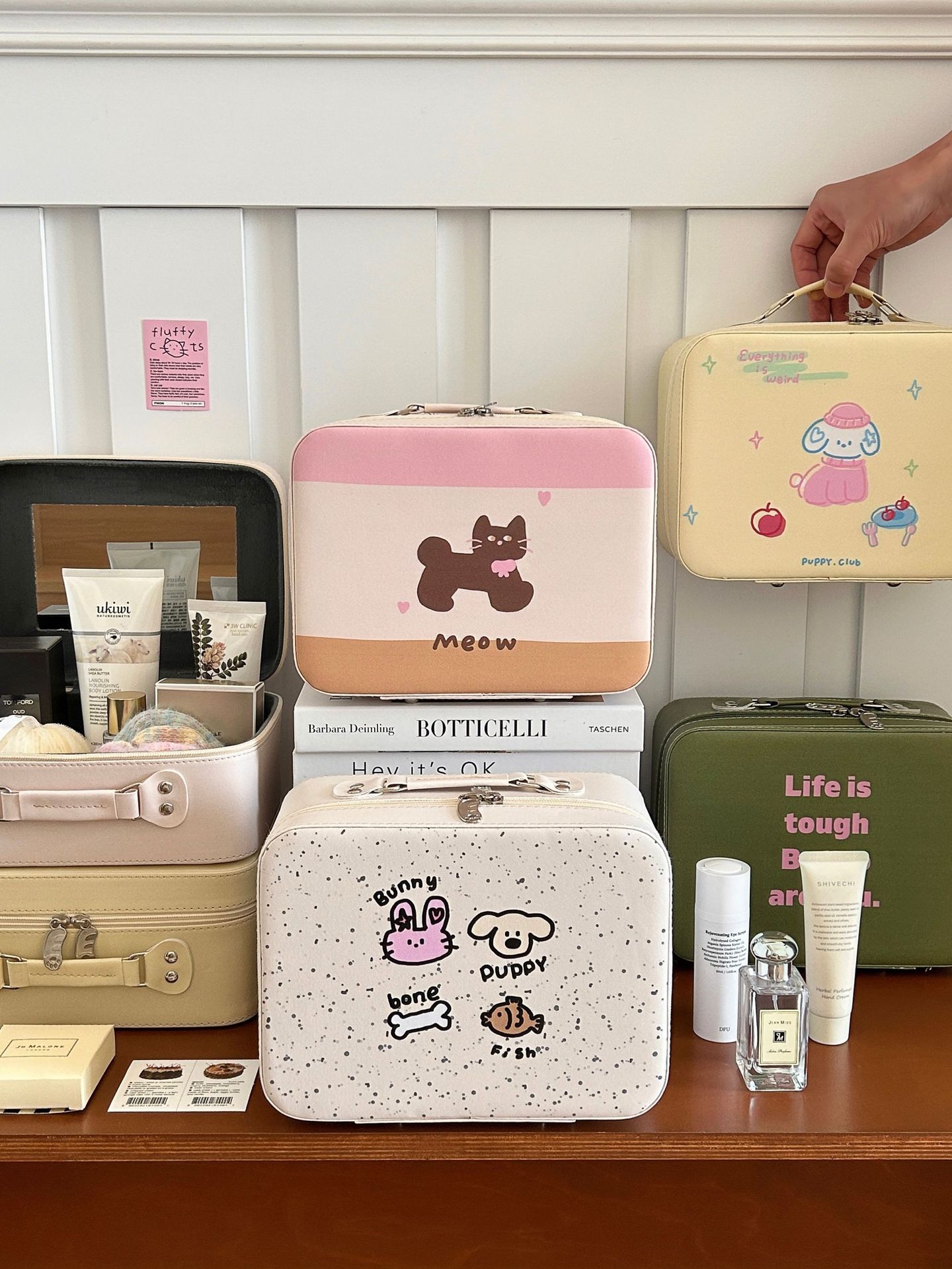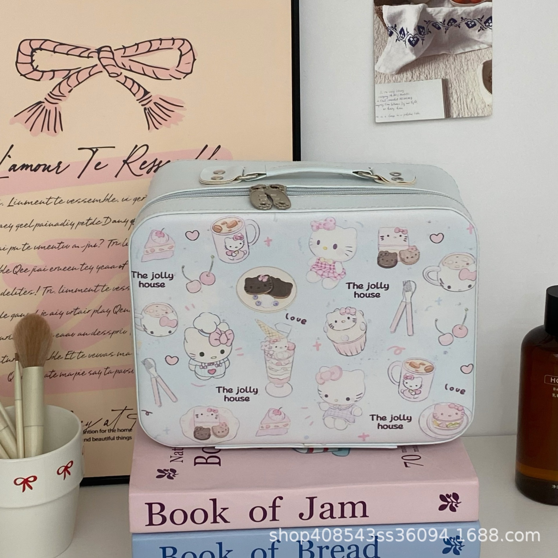 原创!可爱印花化妆箱高颜值大容量护肤品收纳手提箱带镜子化妆包