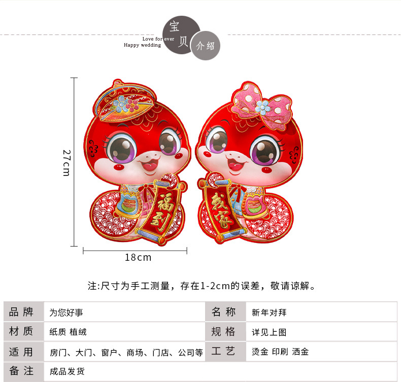 | 蛇年卡通对拜贴纸【更多选择进店搜索】 | USD $1.2 | 8500 piece available |