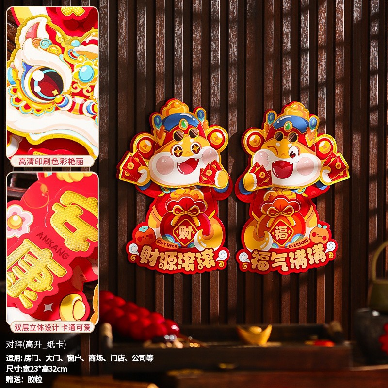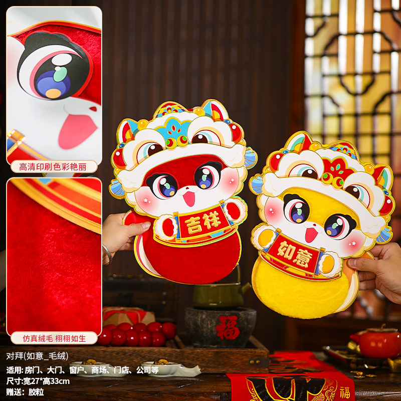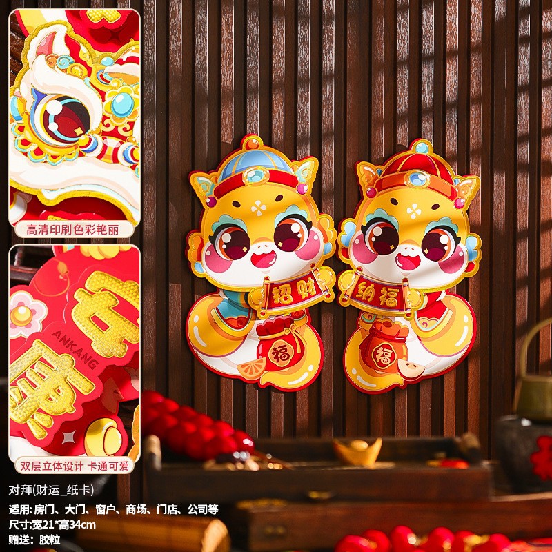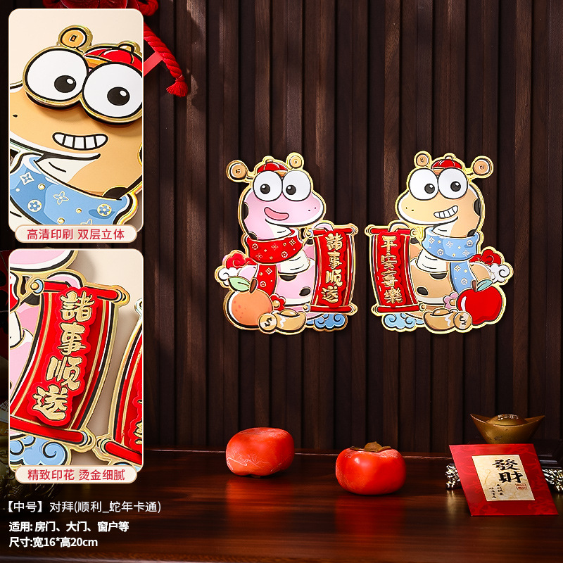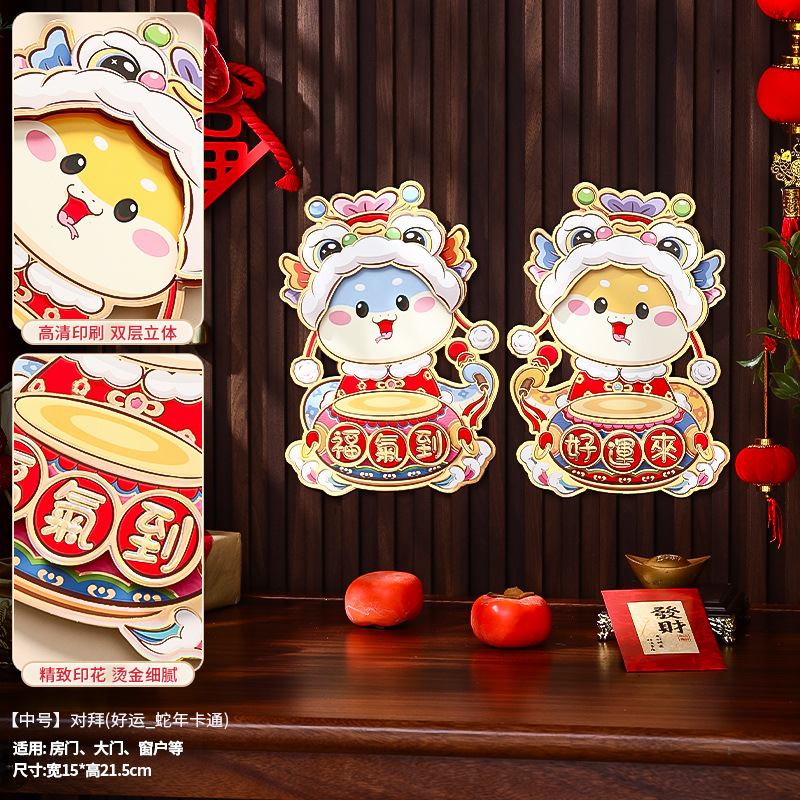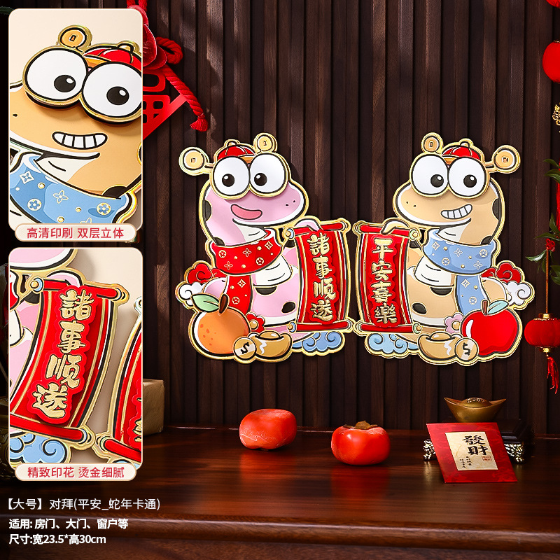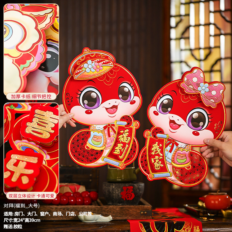蛇年门贴2025新款卡通生肖对拜贴过年新年装饰福字贴春节年画贴纸