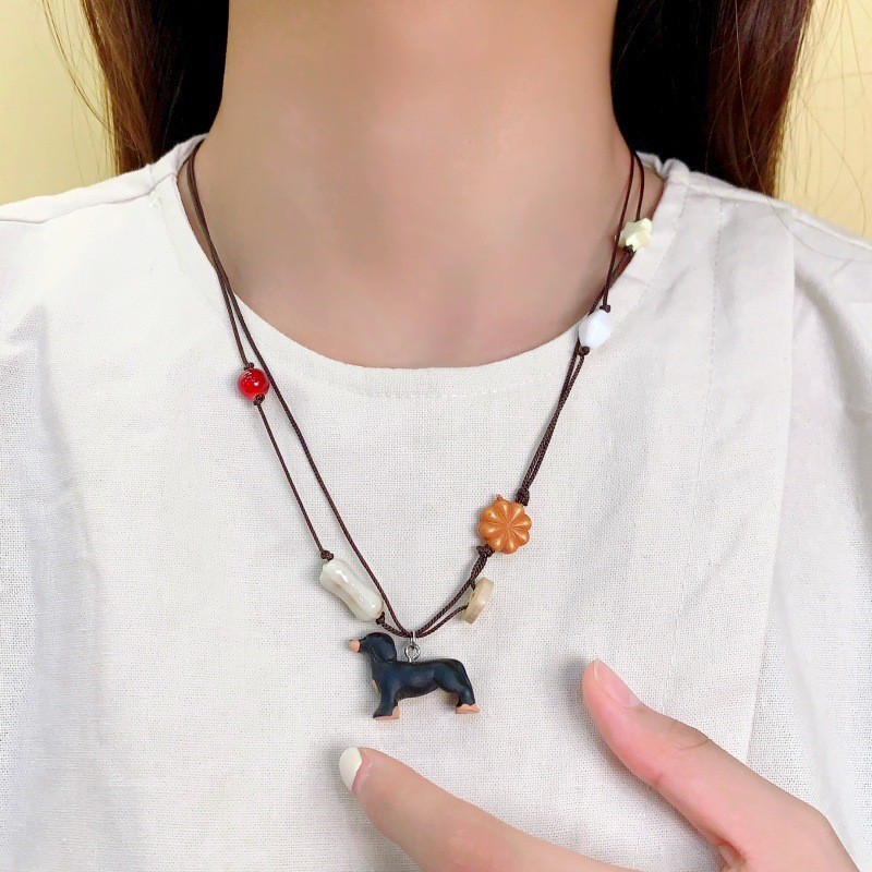 敲可爱!红色m豆气球狗吊坠项链女2024新款秋冬高级感毛衣链配饰