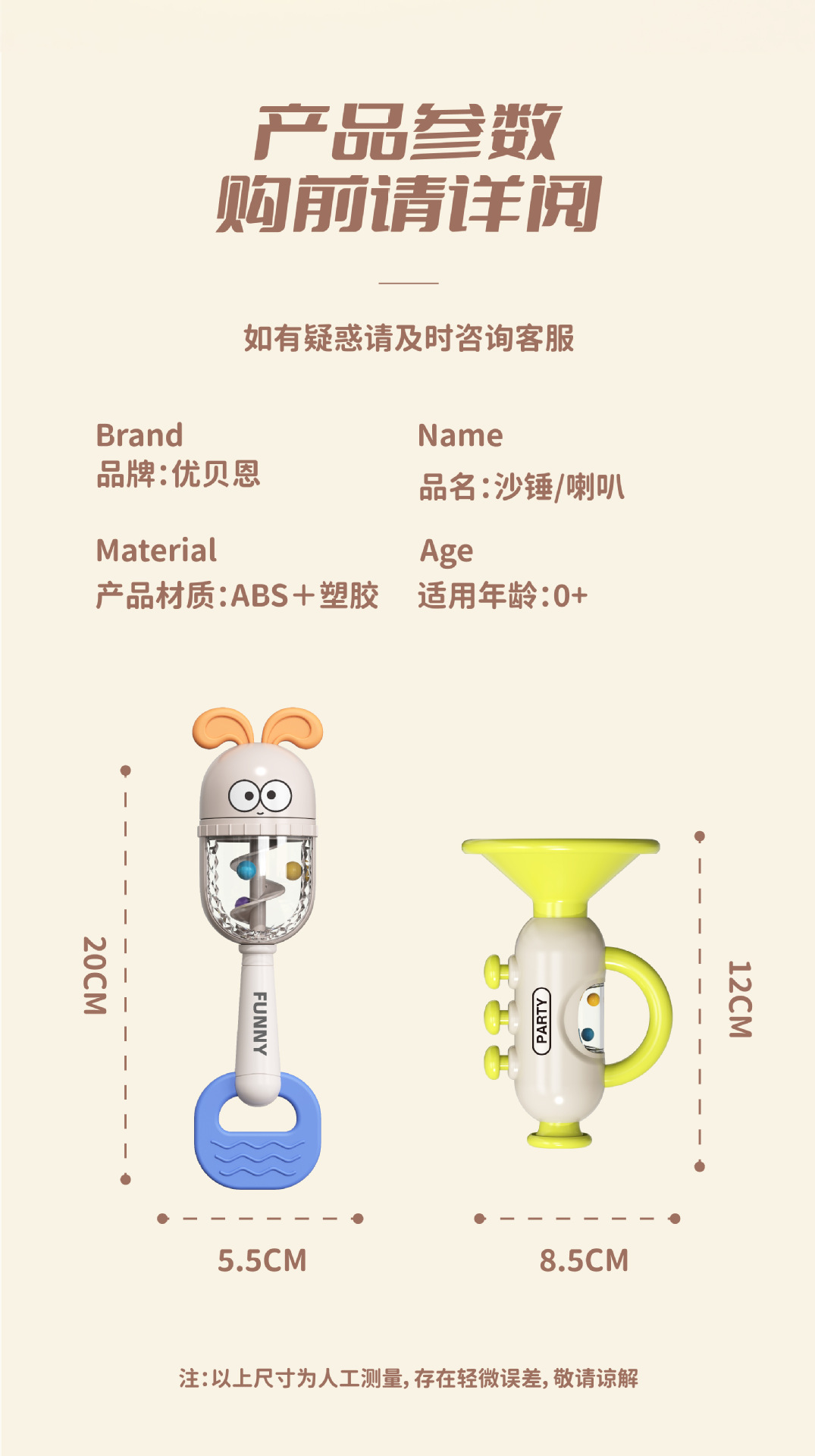 3、在运输过程造成货损:收货时请务必当着物流或快递人员的面拆箱检查,纸箱是有弹性的,塑料玩具是没有弹性的,所以有可能会外箱不破损,内物破损,请务必验货后再签收。产品5%损坏属于正常范围内,我们将提供再次订货补发配件修补的服务。