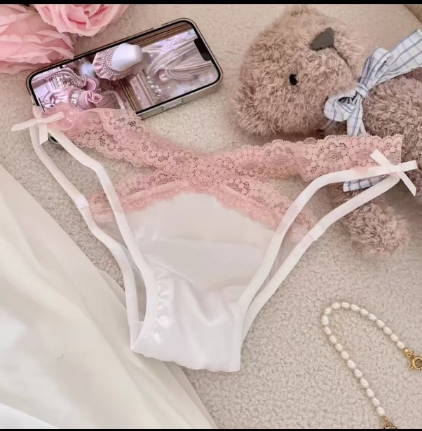 高级感绸面透明网纱拼接交叉镂空蕾丝内裤女士性感纯欲半包法式