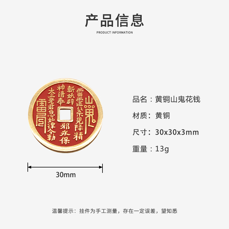 纯铜山鬼花钱朱砂八卦铜钱吊坠民族风挂件钥匙扣汽车挂饰道家