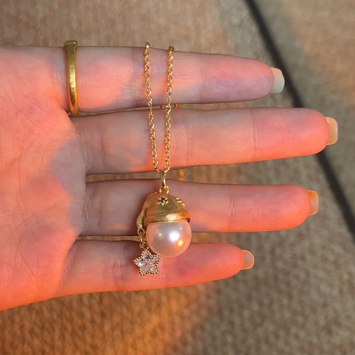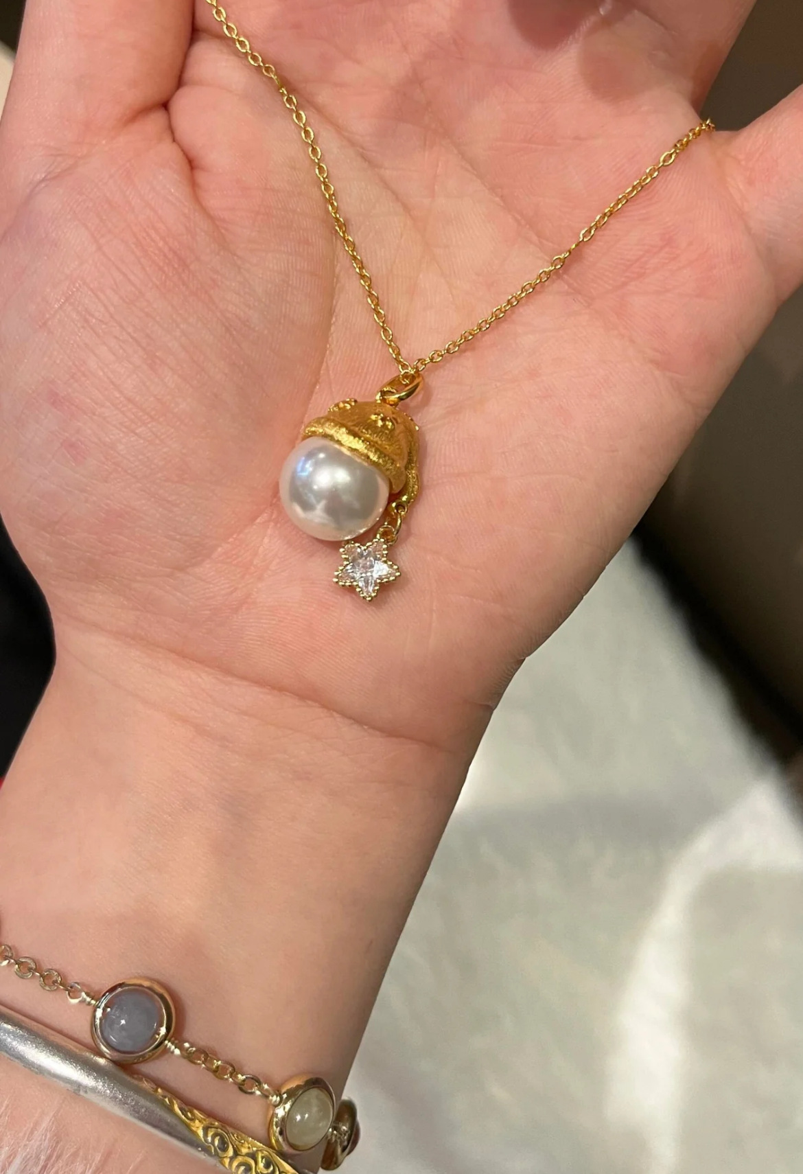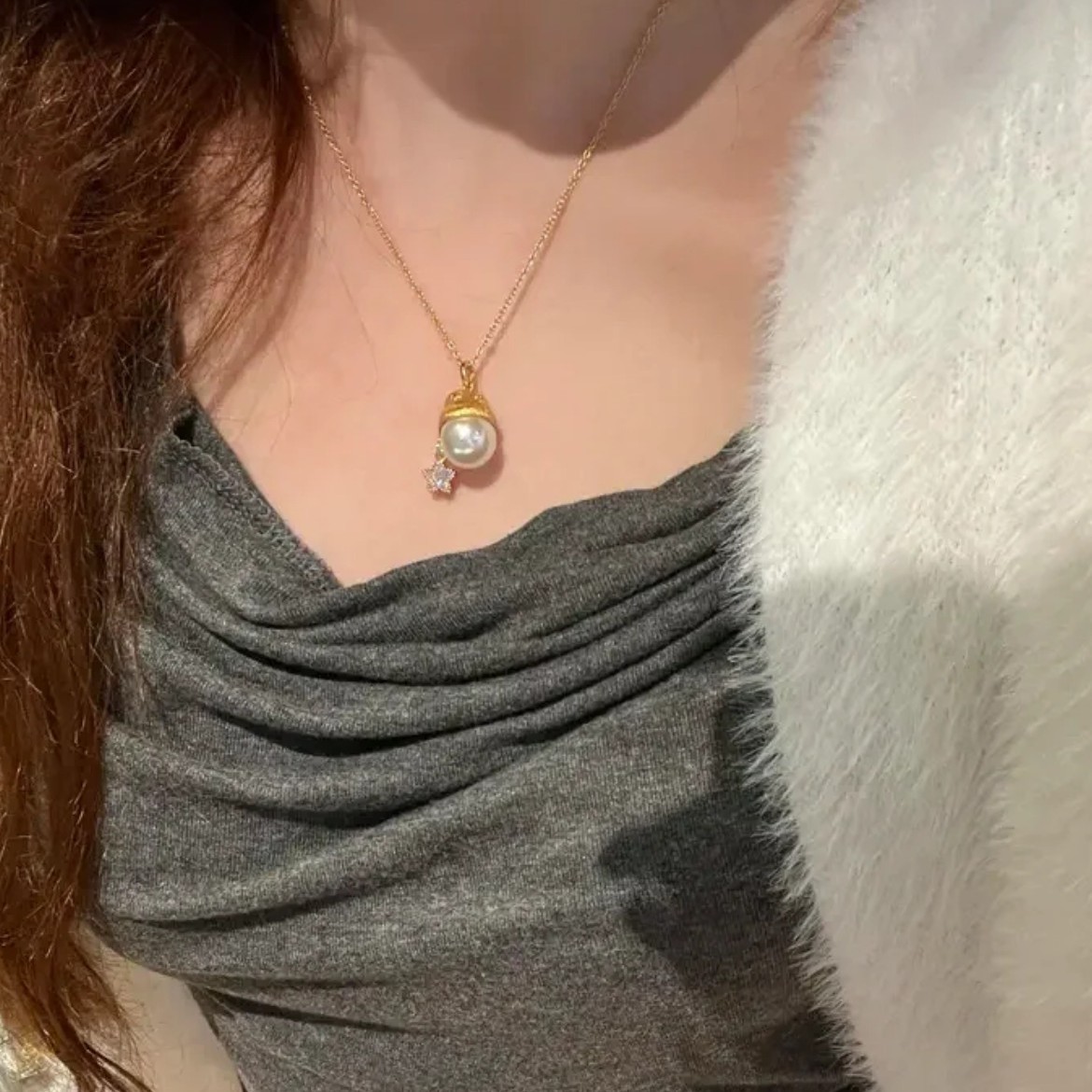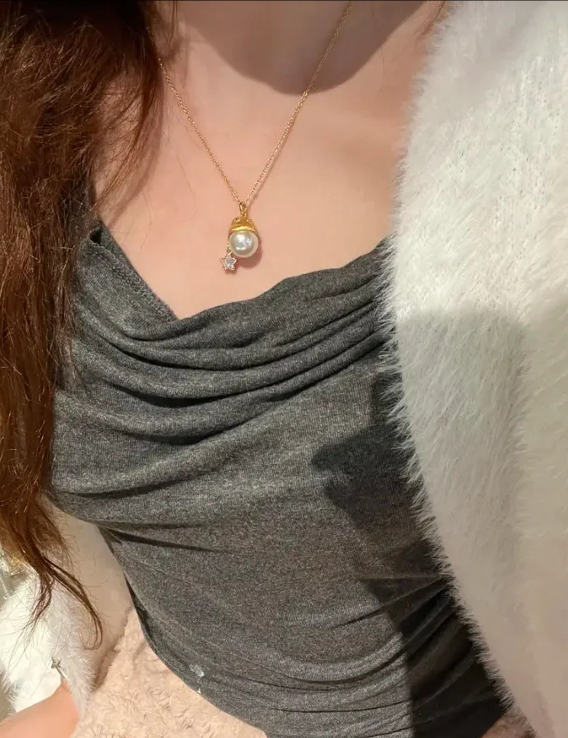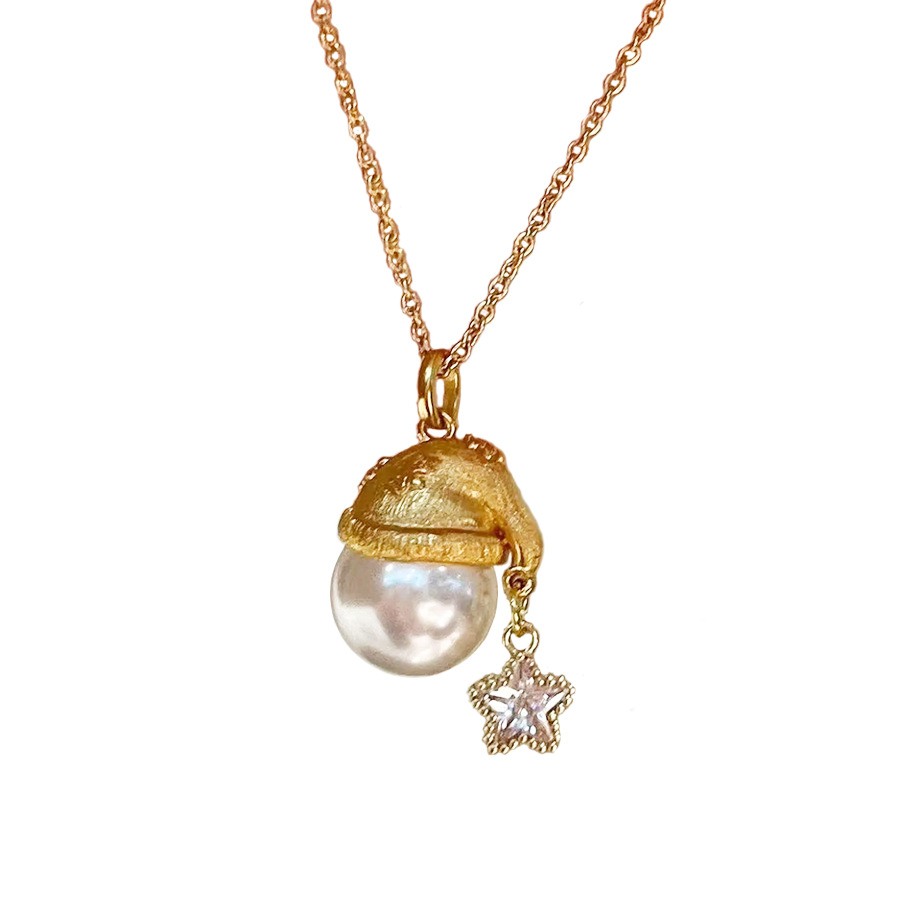 圣诞帽星星珍珠吊坠项链2024秋冬圣诞复古高级精致钛钢不掉色批发