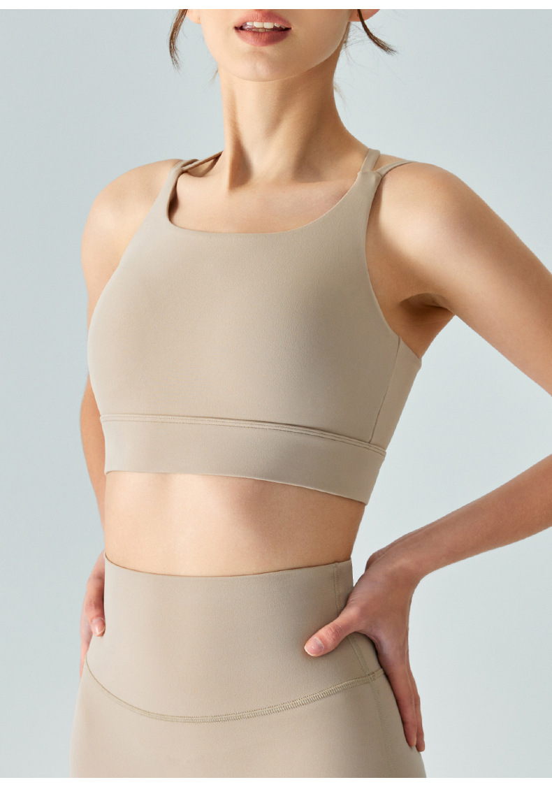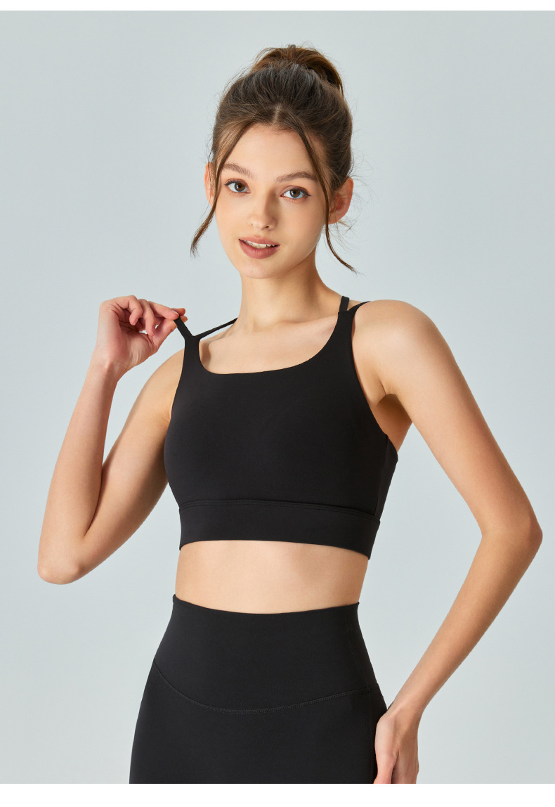 细肩带瑜伽背心固定杯中强度运动内衣吊带美背一体式胸垫瑜伽文胸
